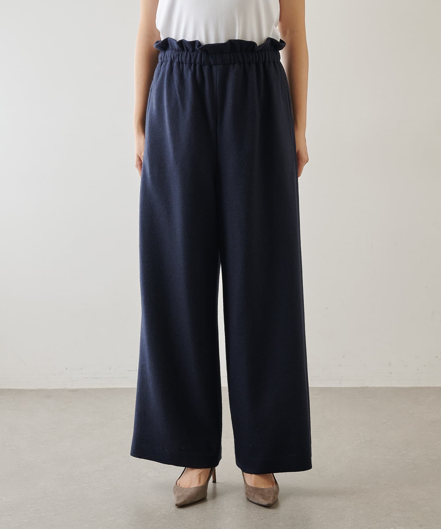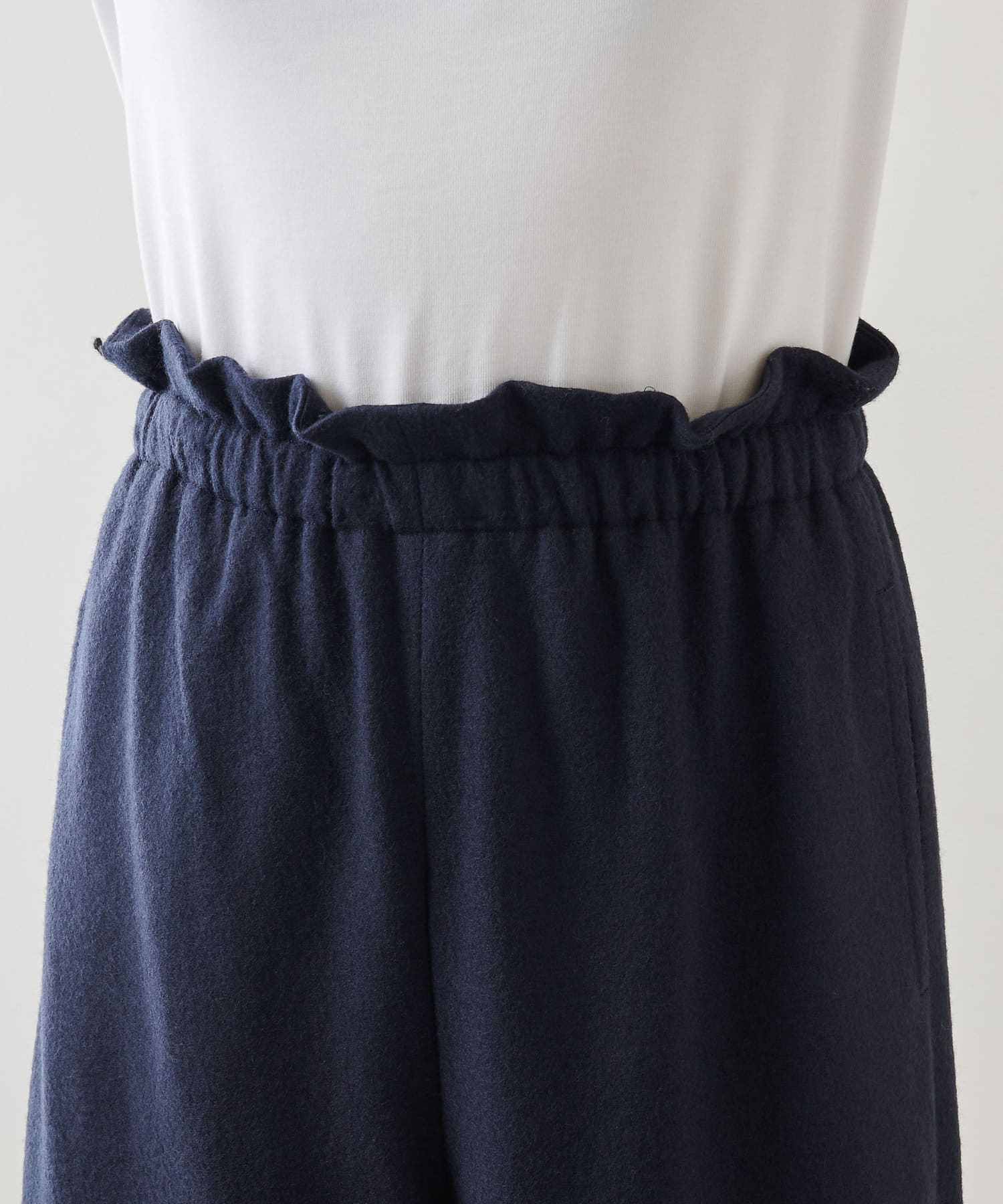 ■ウォーム感のある風合いが秋冬のムードを高めてくれるセミワイドパンツ。
