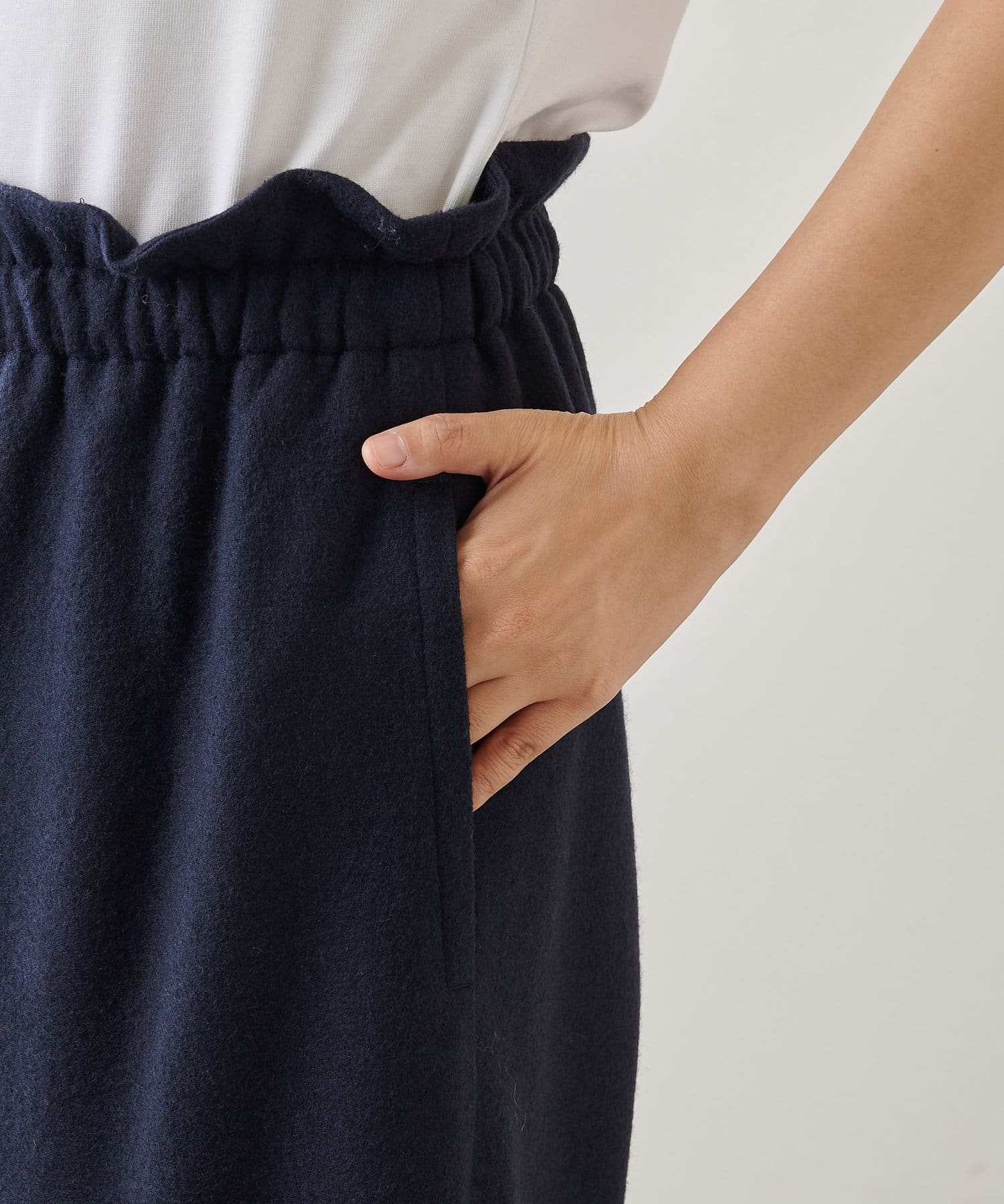 ウール素材ですがチクチク感もなく着心地が良かったです。ウエストゴムなので楽な穿き心地が嬉しく、ハイウエストの位置で合わせても苦しくありませんでした。