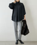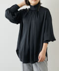 ■フロントと袖口に施したギャザーが立体的なボリュームシルエットを演出。