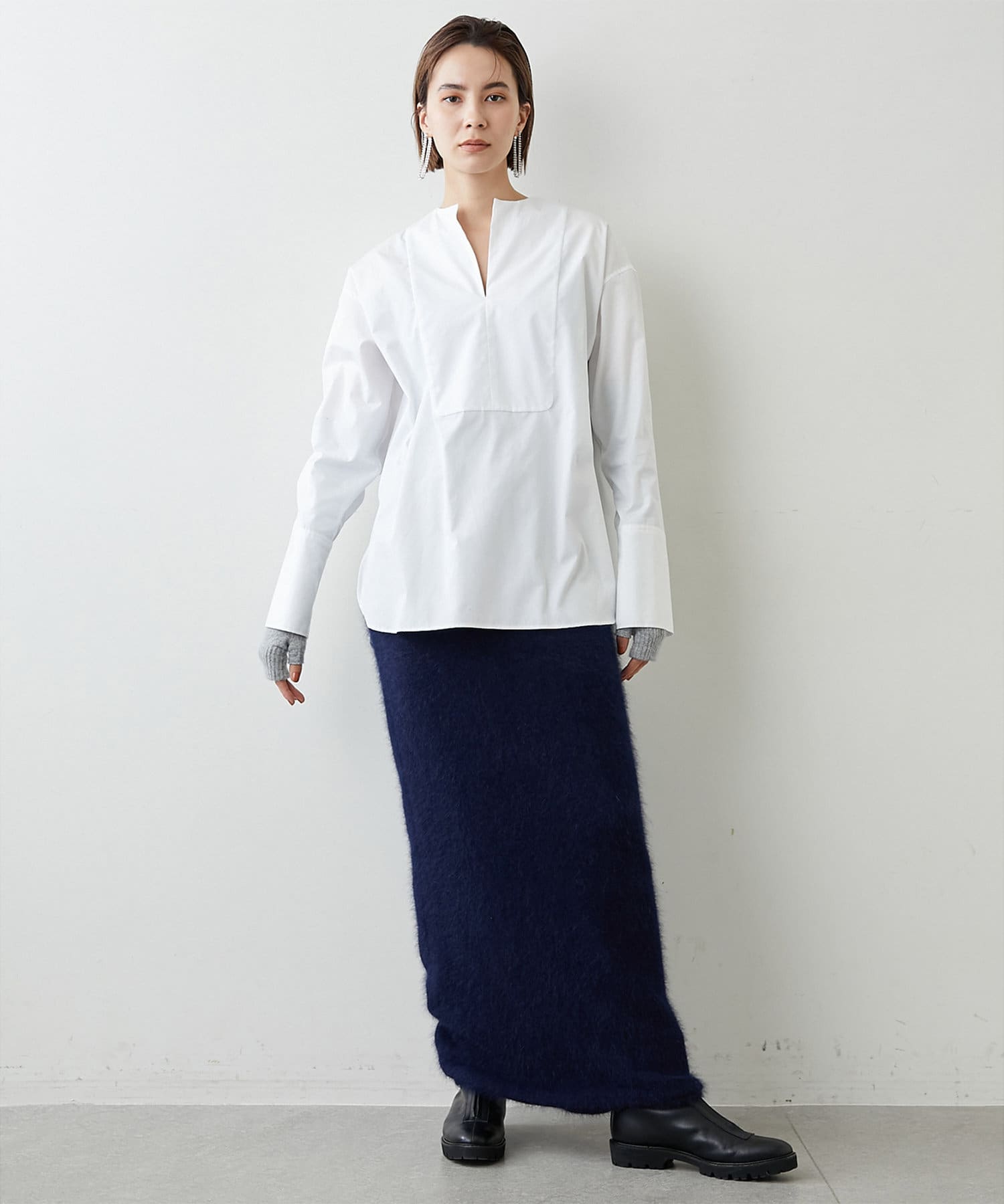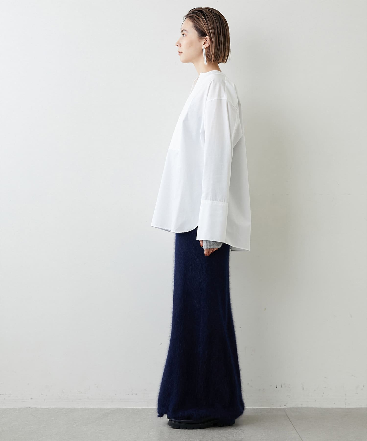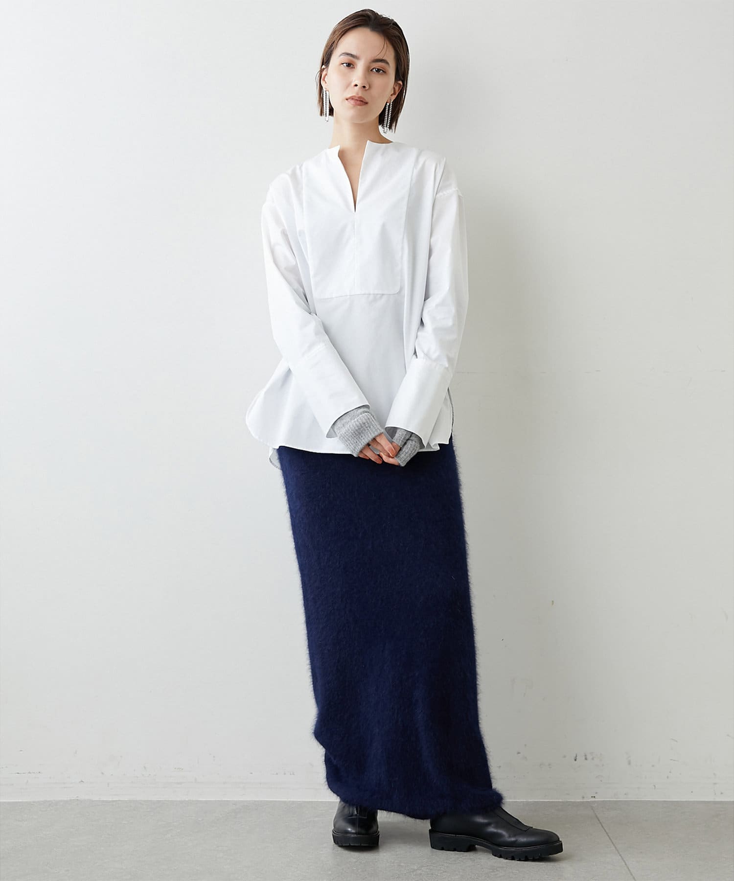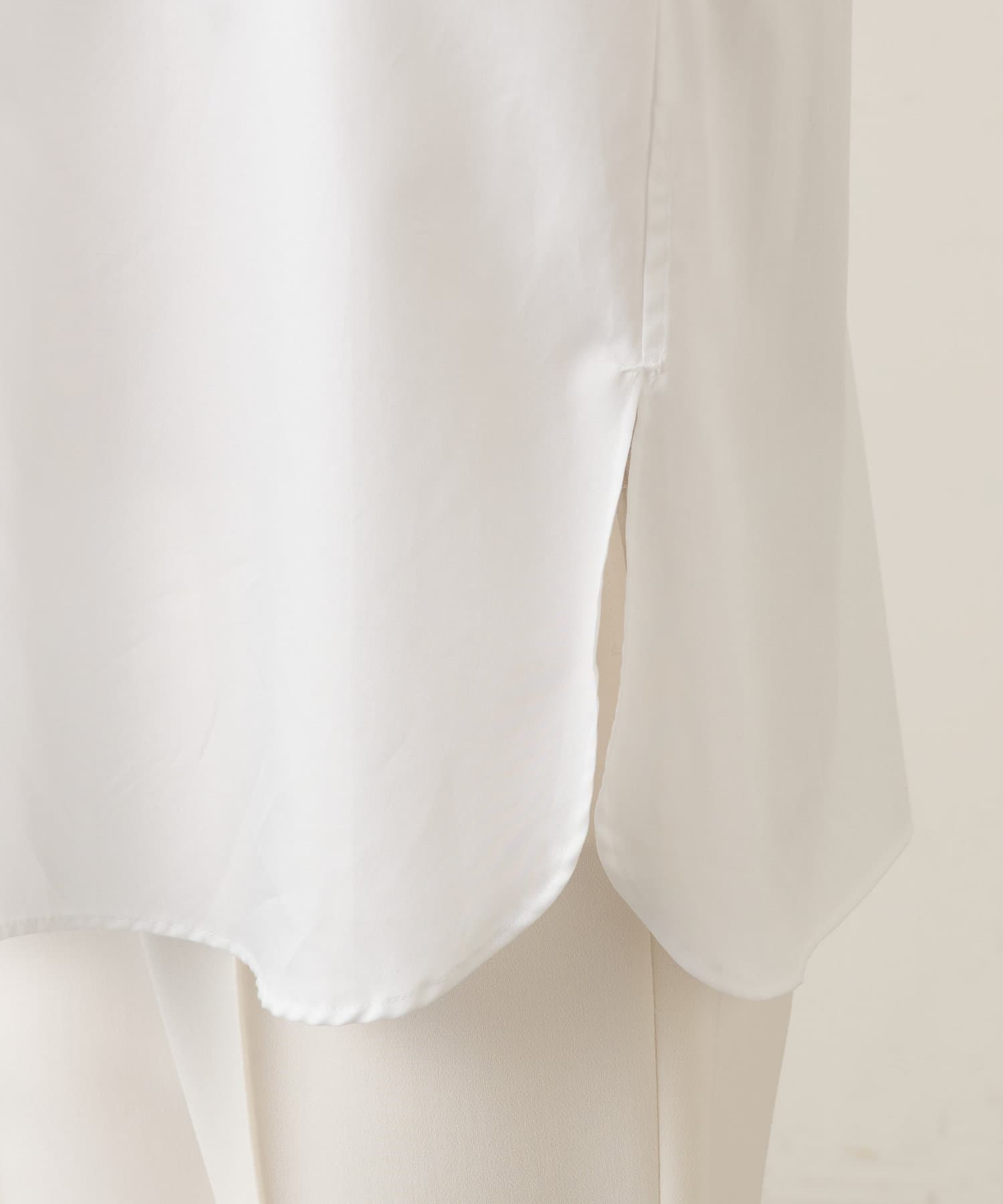 ■ラウンドヘムや両サイドのスリットが軽やかな抜け感をプラスし、ボトムインせずさらりと着こなしても様になるデザイン。