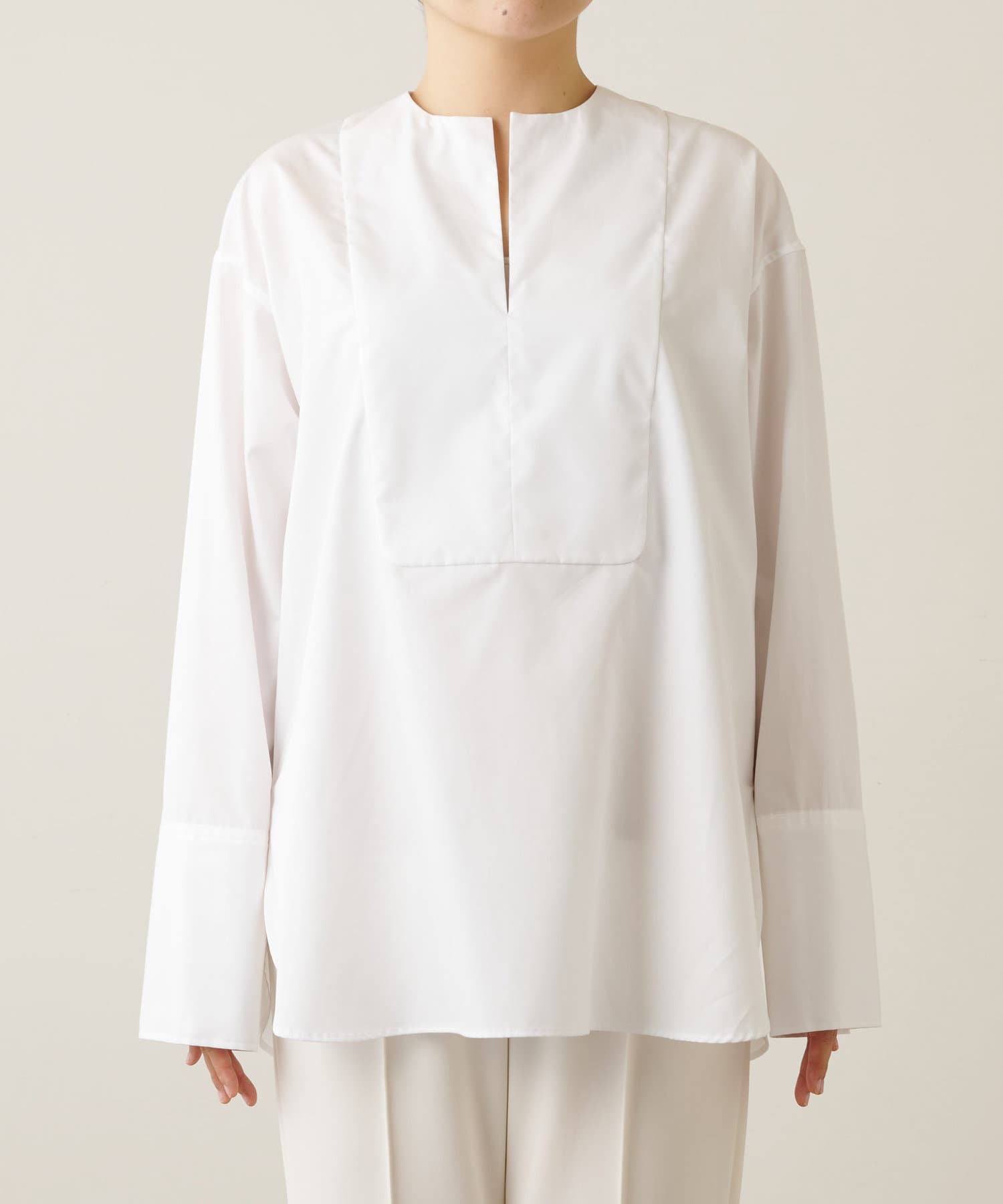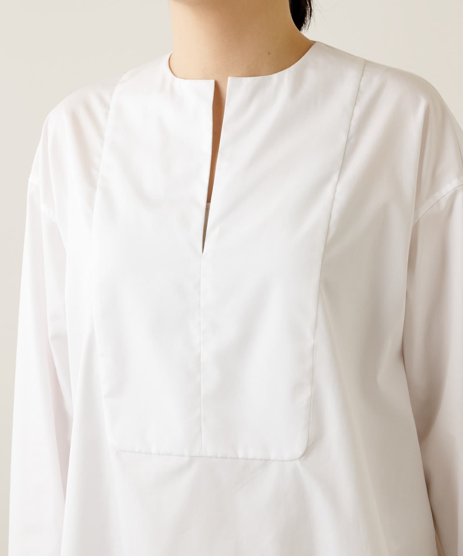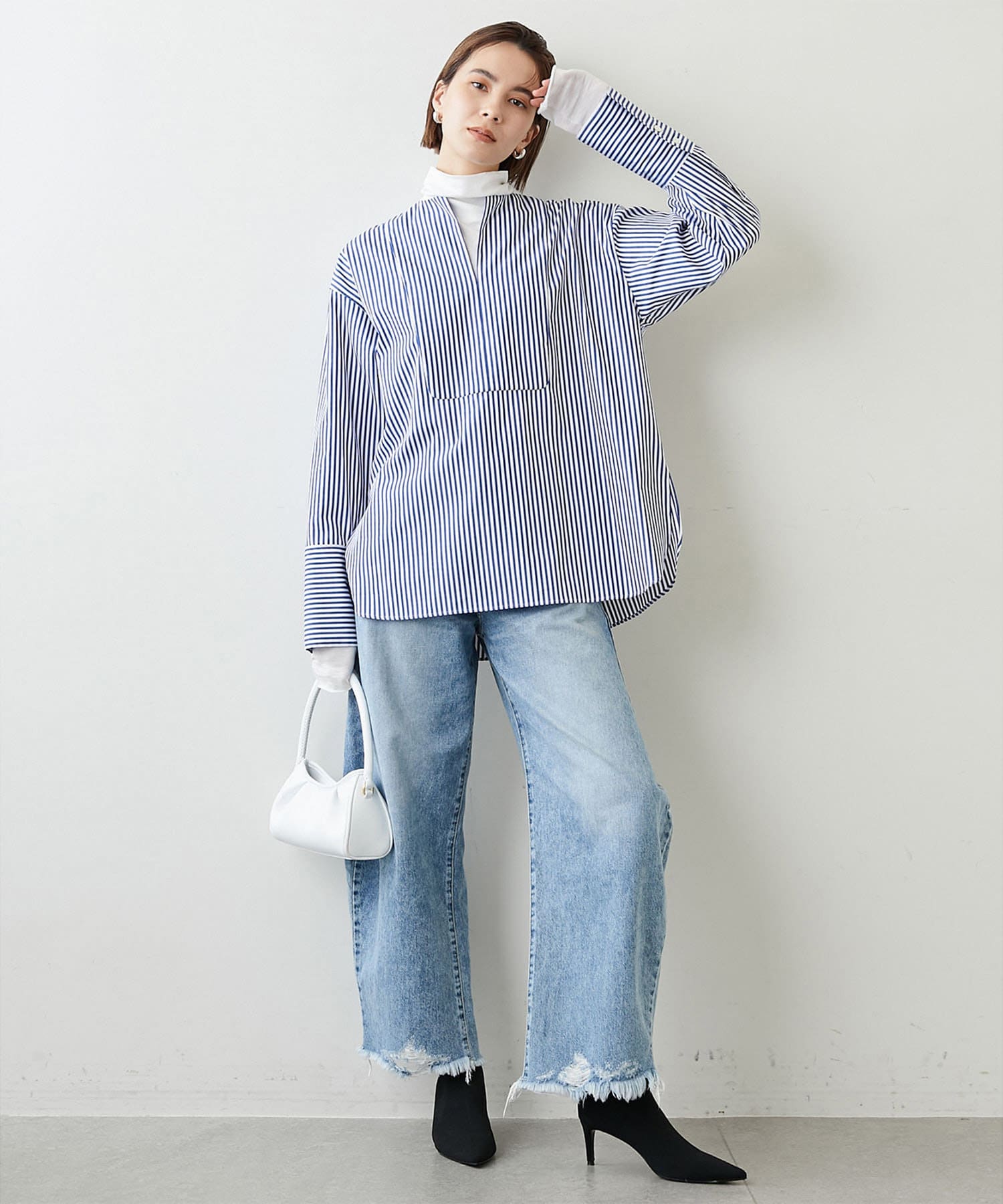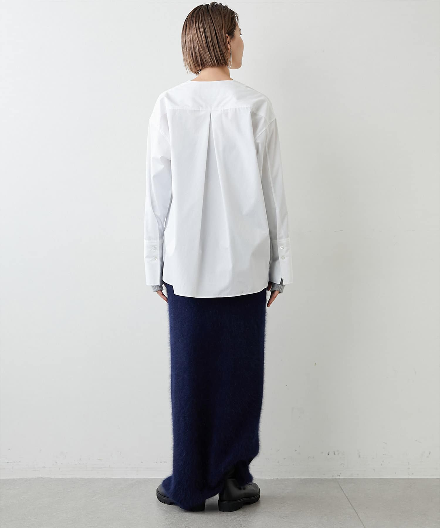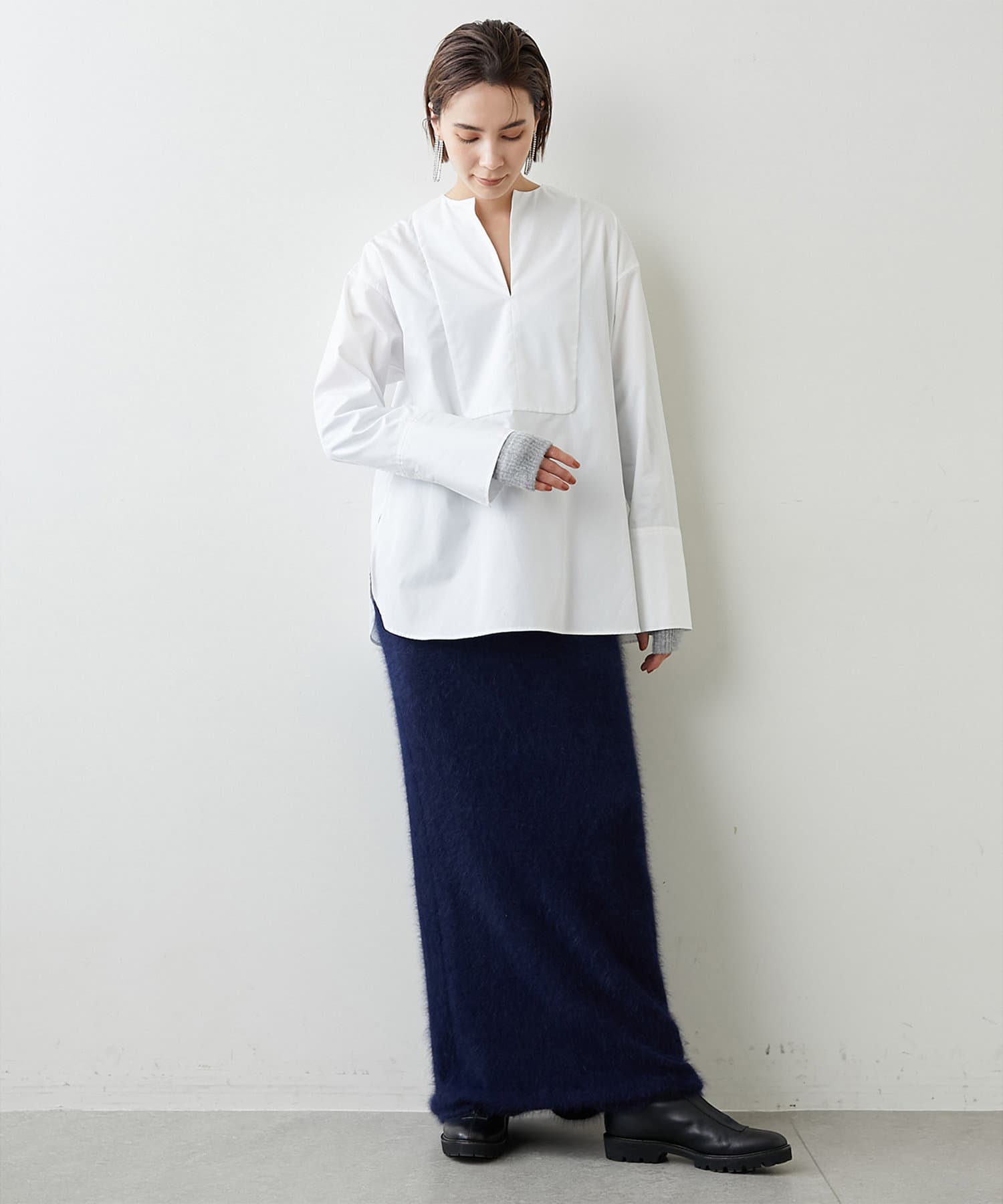 ■ラウンドヘムや両サイドのスリットが軽やかな抜け感をプラスし、ボトムインせずさらりと着こなしても様になるデザイン。