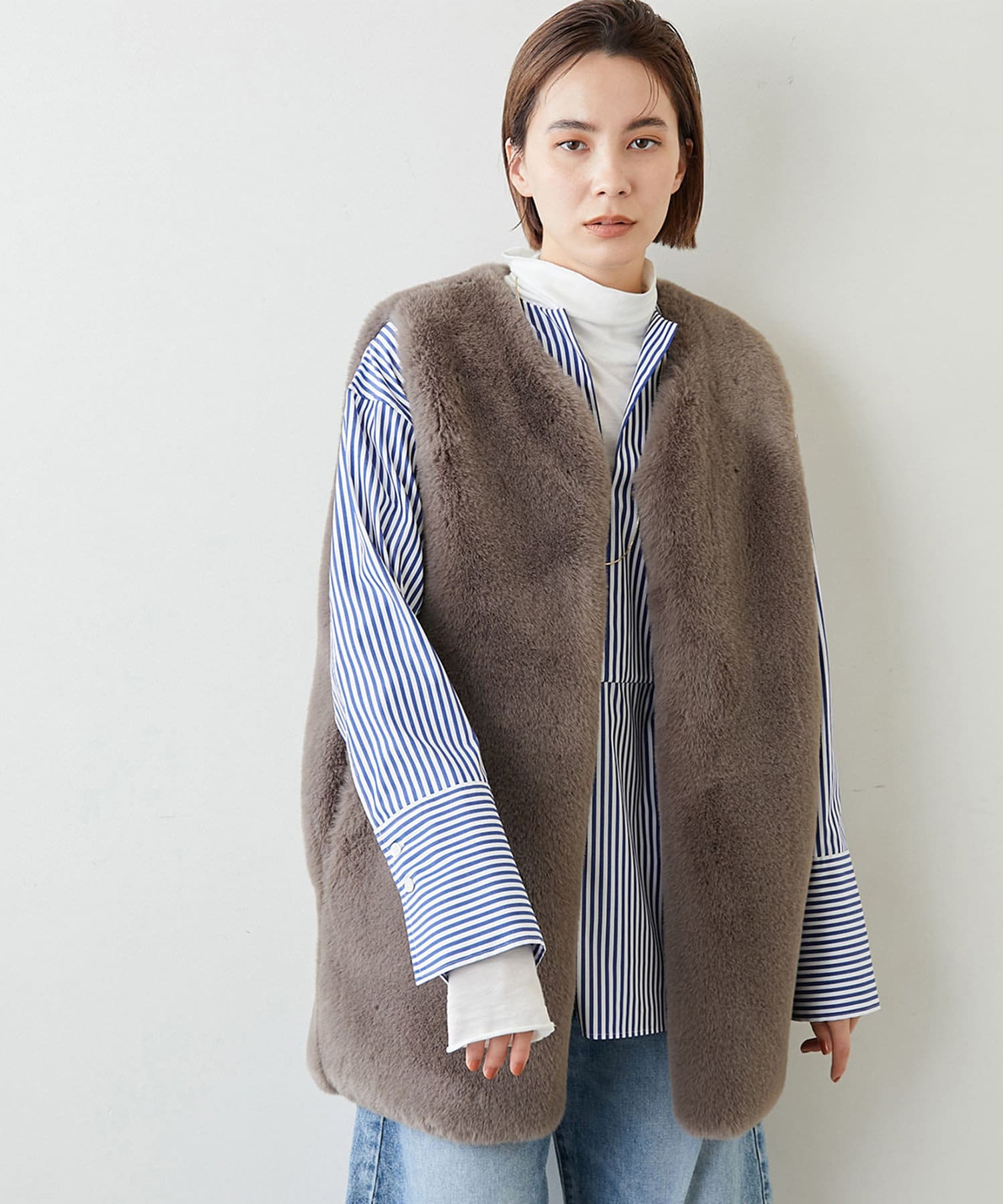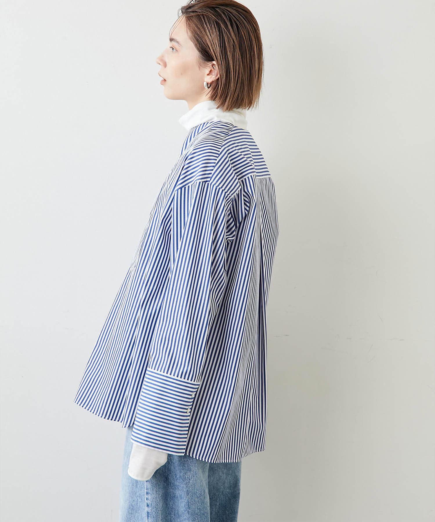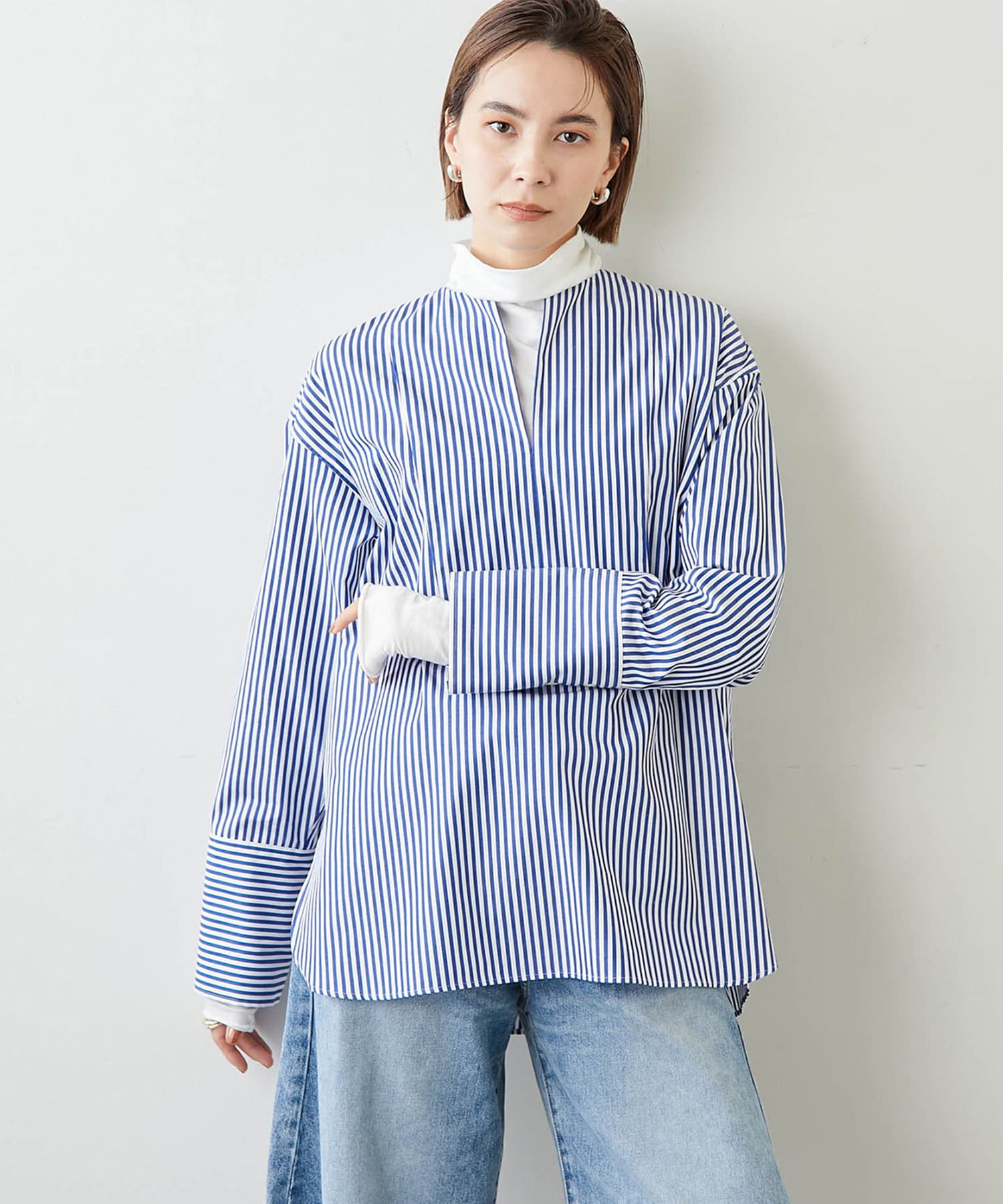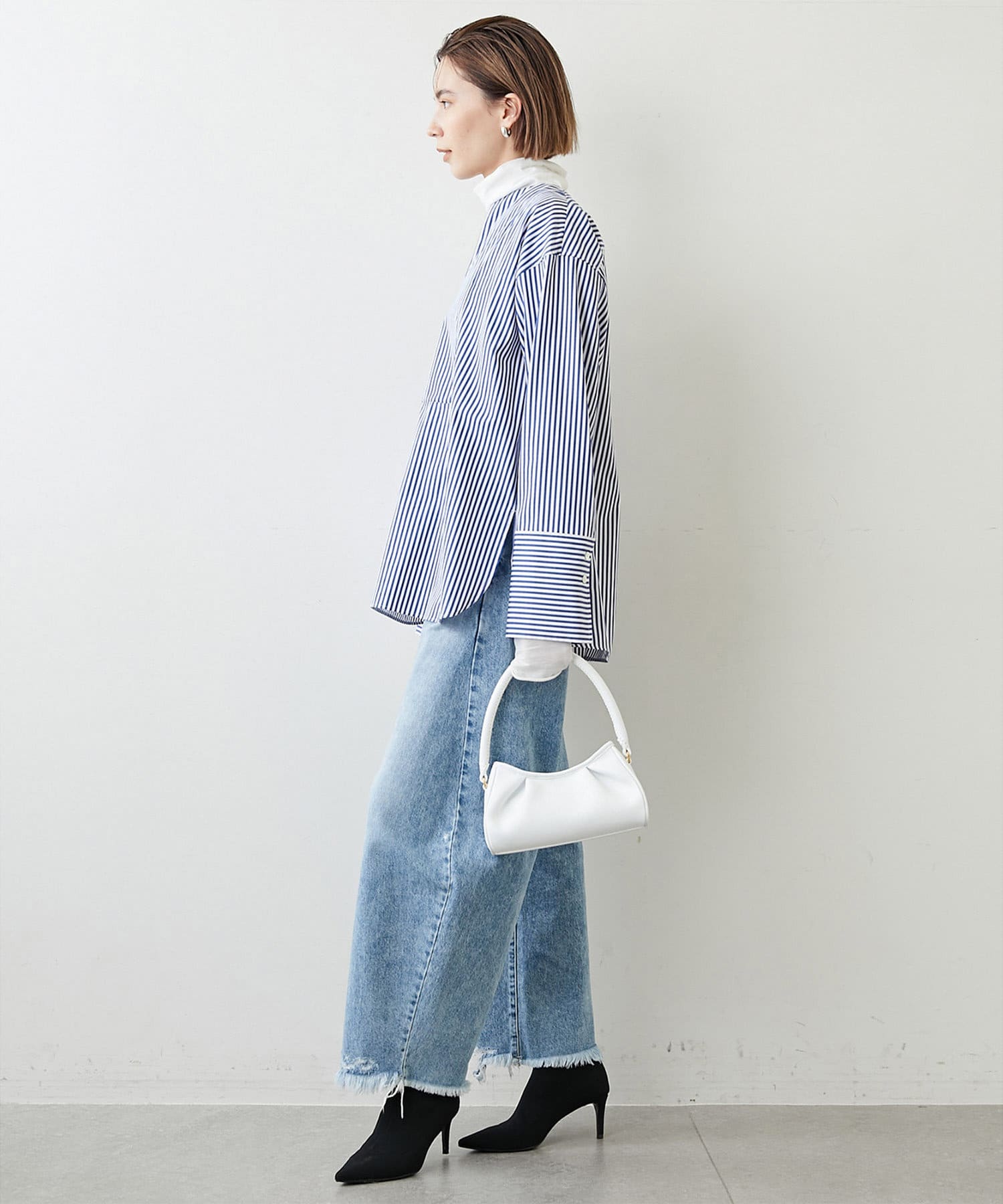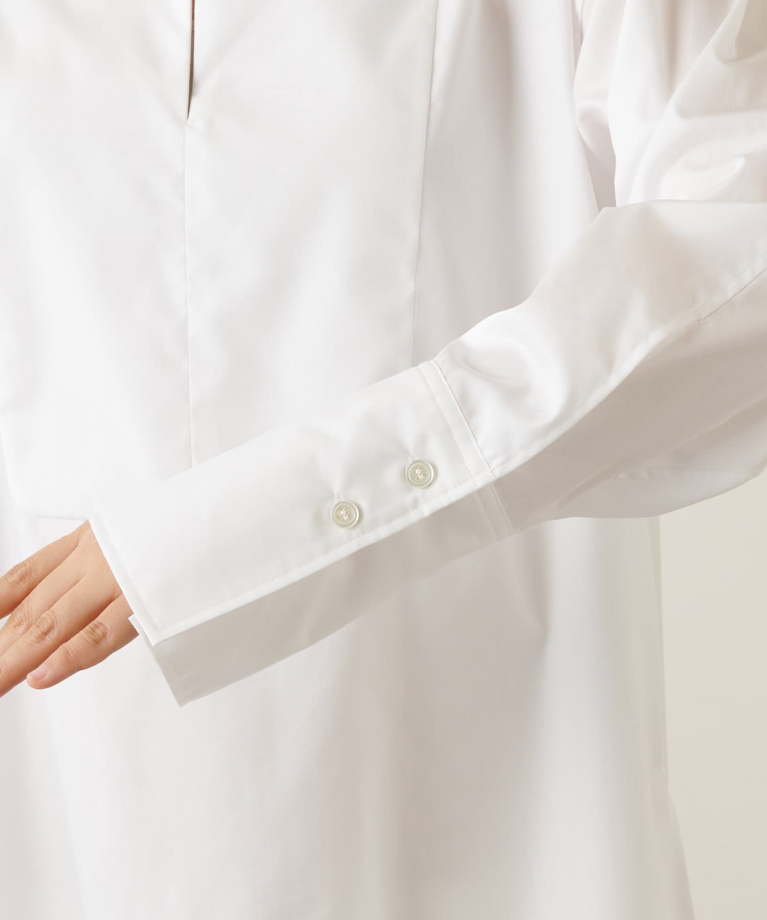 ■長めのカフスがモードな雰囲気で、ジャケットやニットにレイヤードさせて袖口からカフスを覗かせるのも◎。