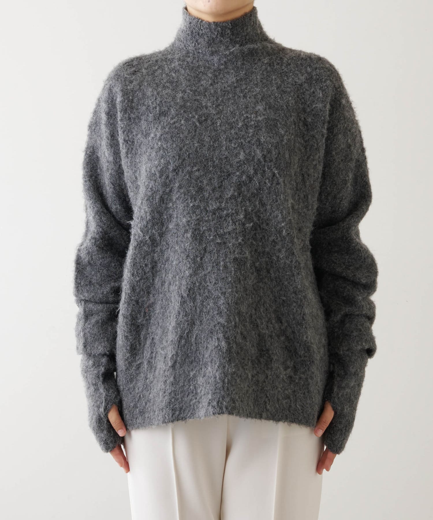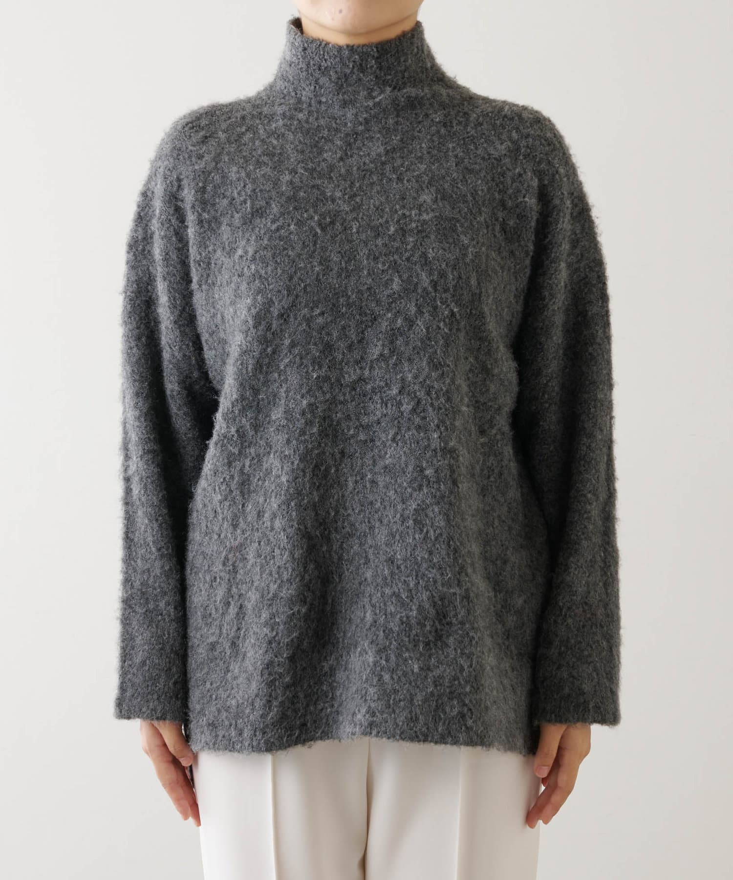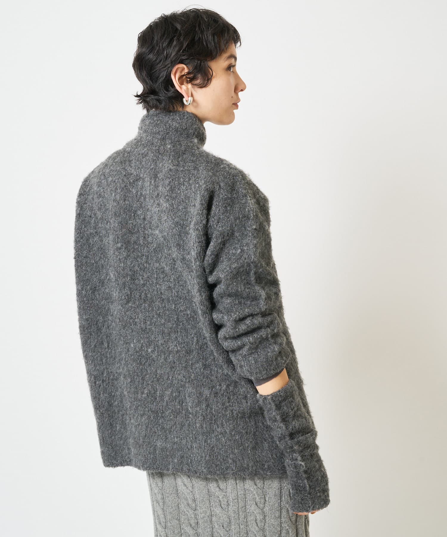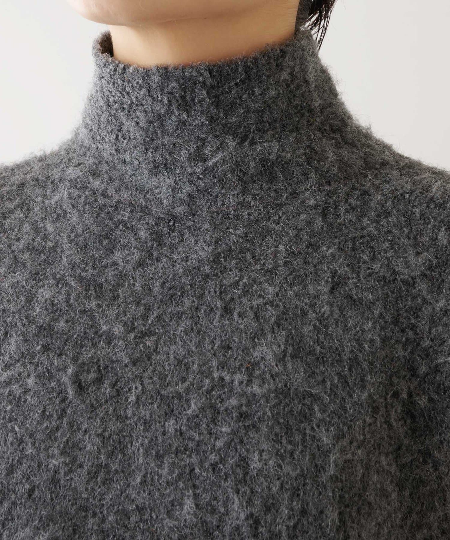 ■糸自体のくるくるとした毛足感のある表情が着映えする一枚。