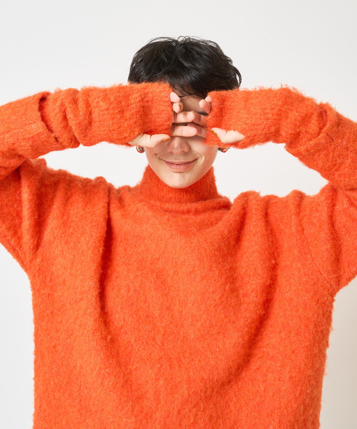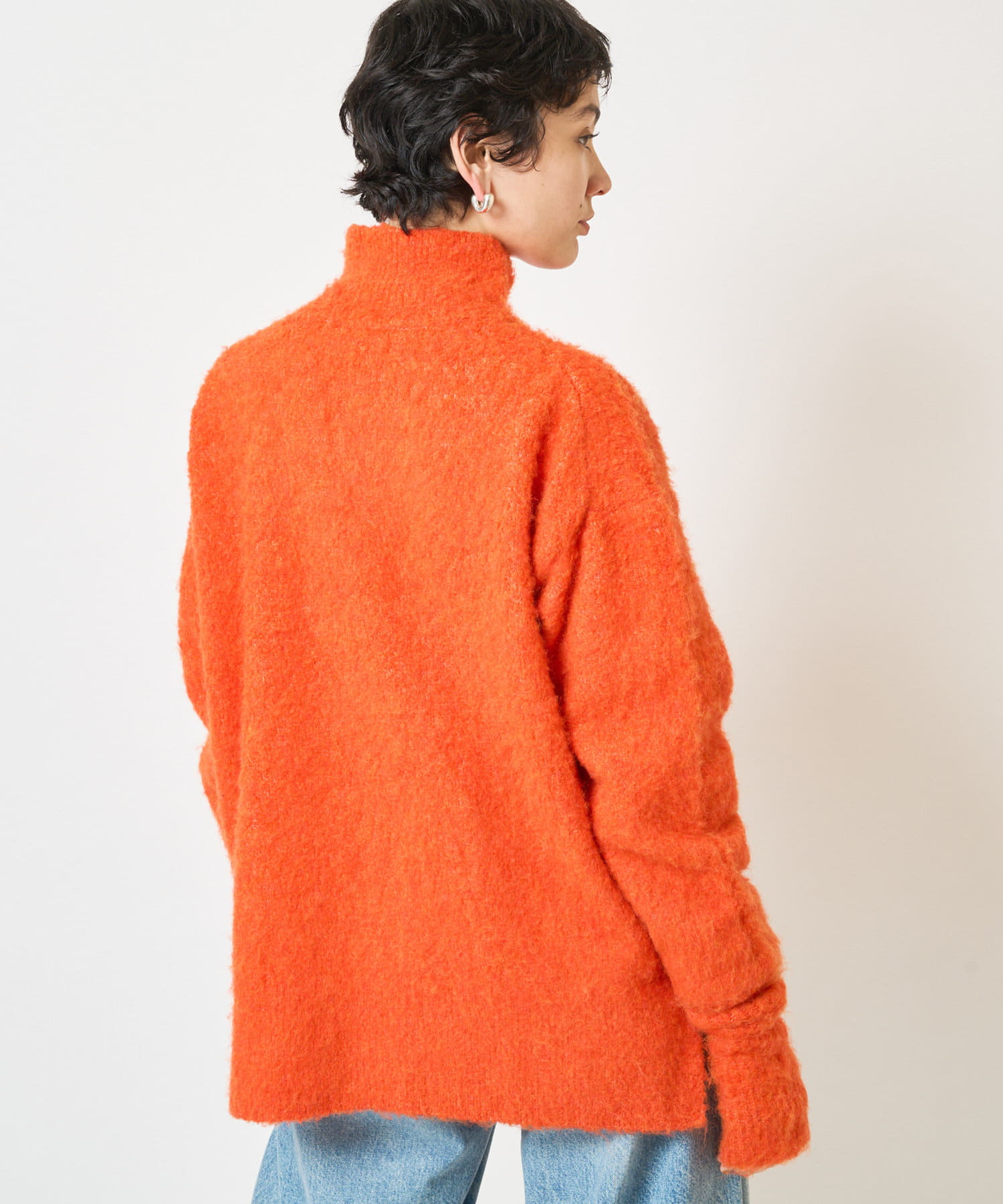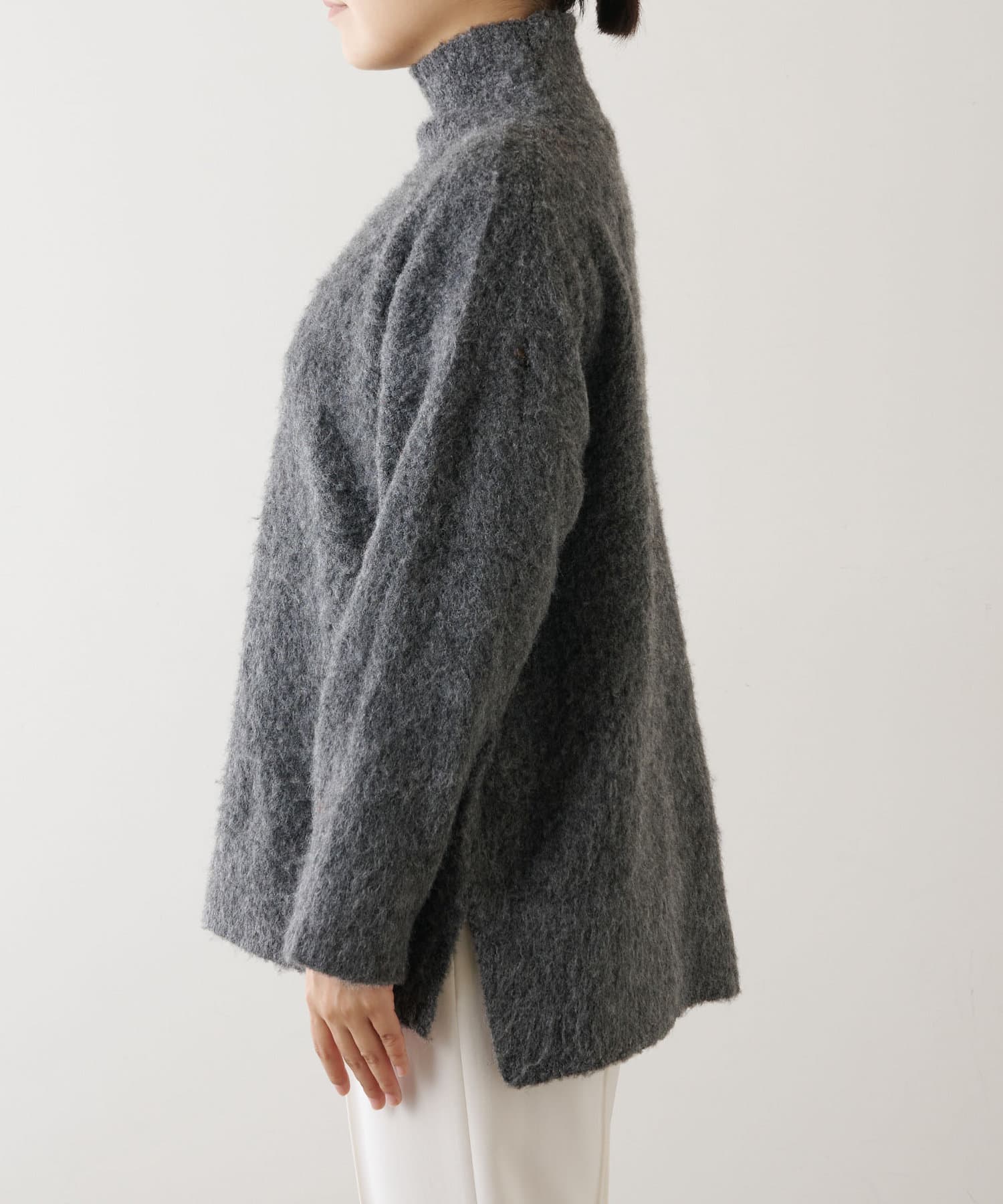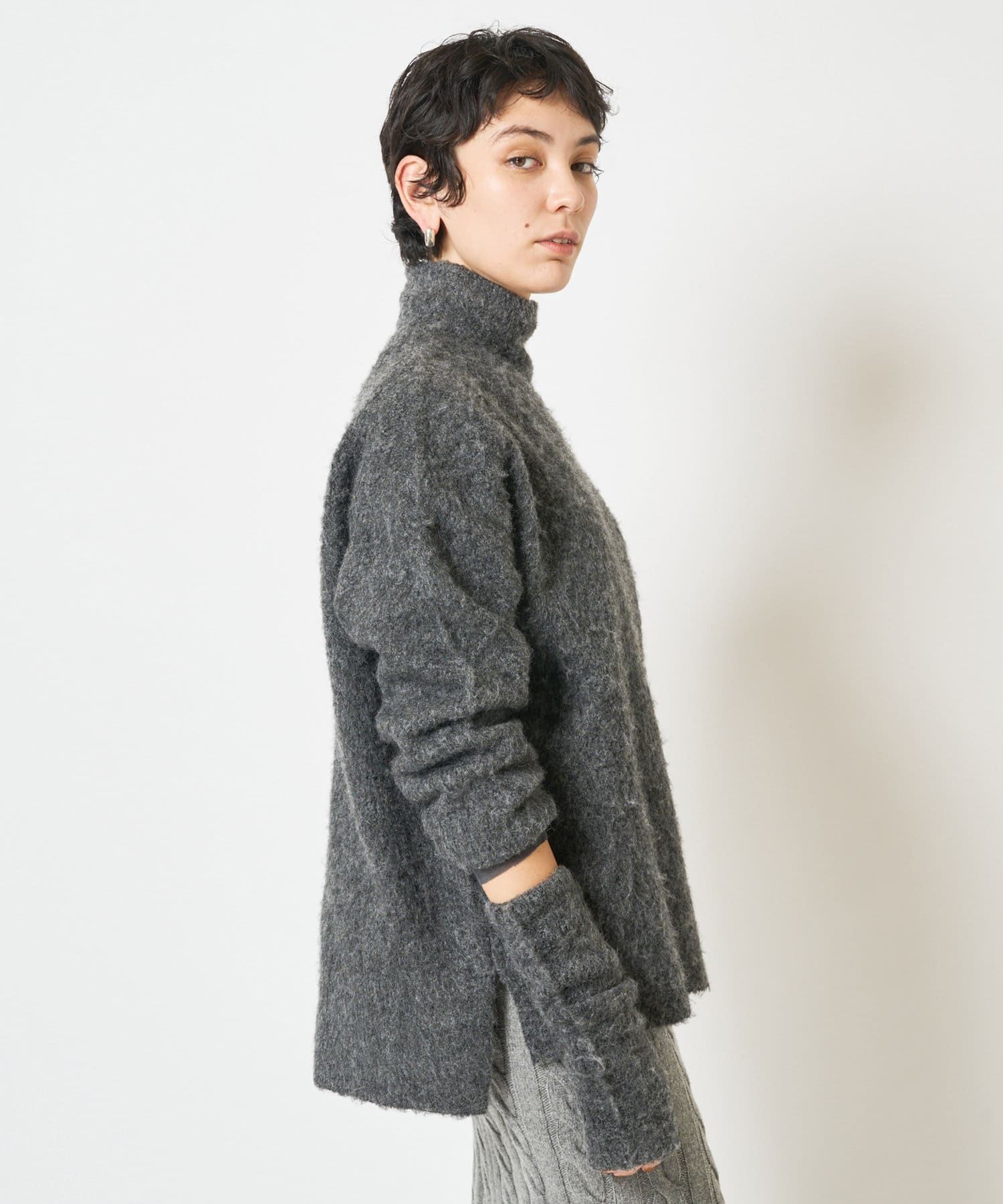 ■糸自体のくるくるとした毛足感のある表情が着映えする一枚。