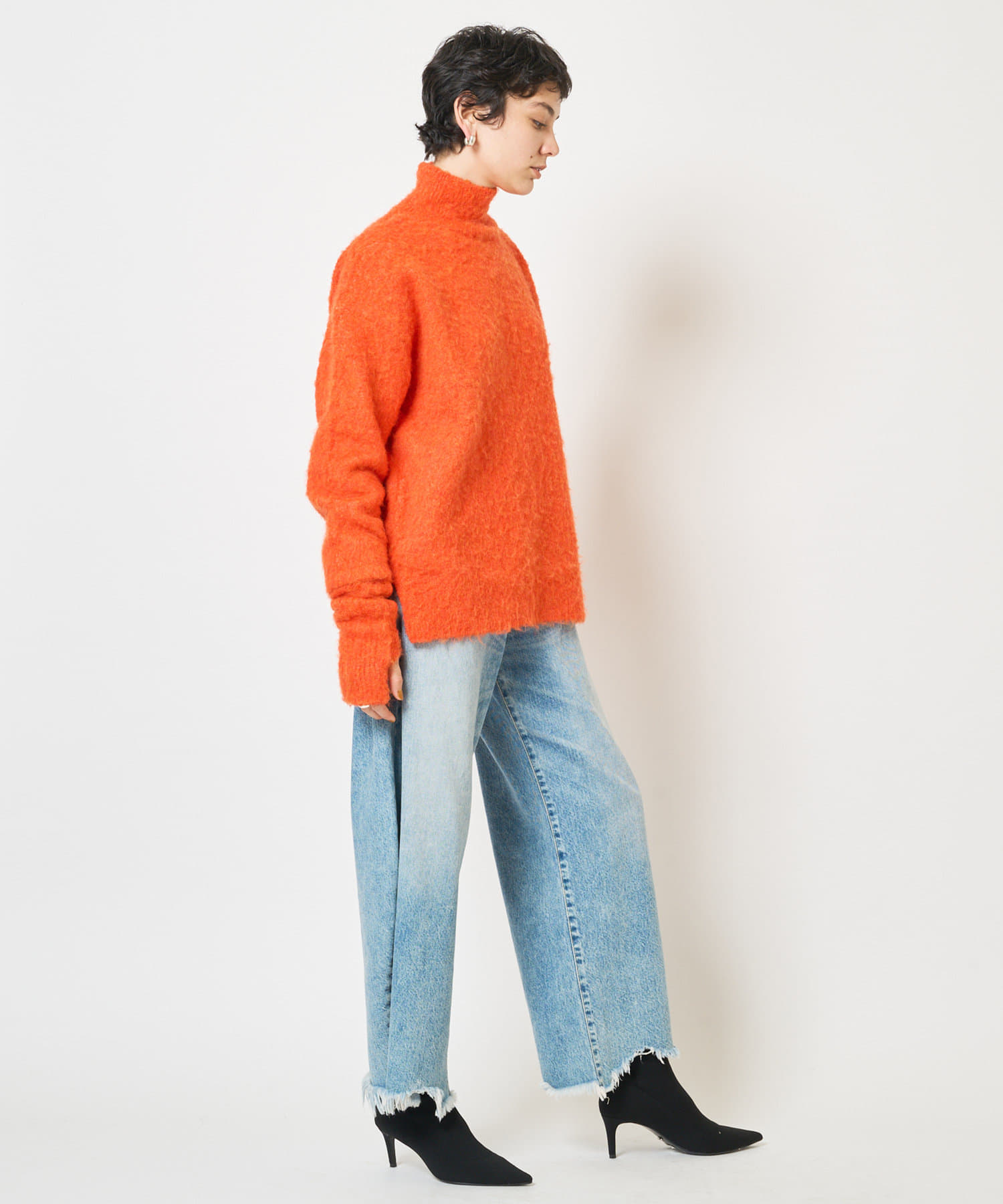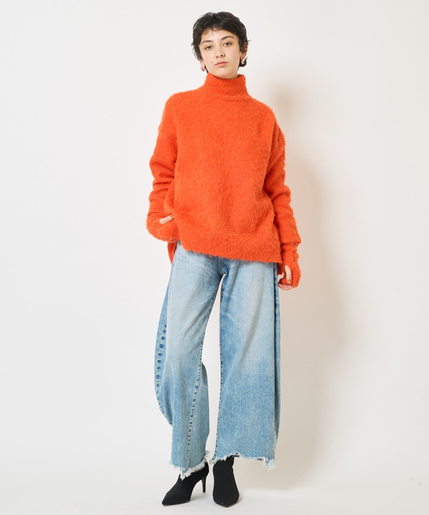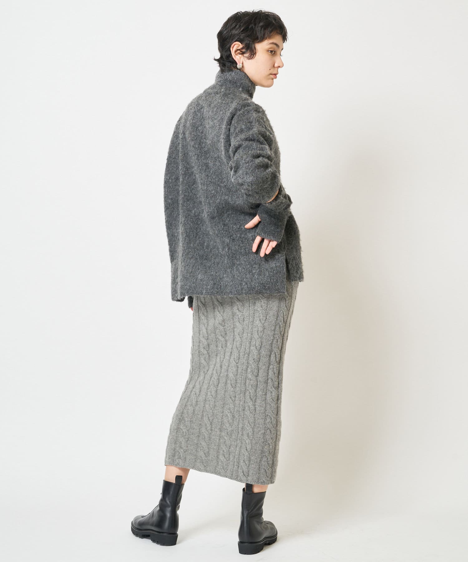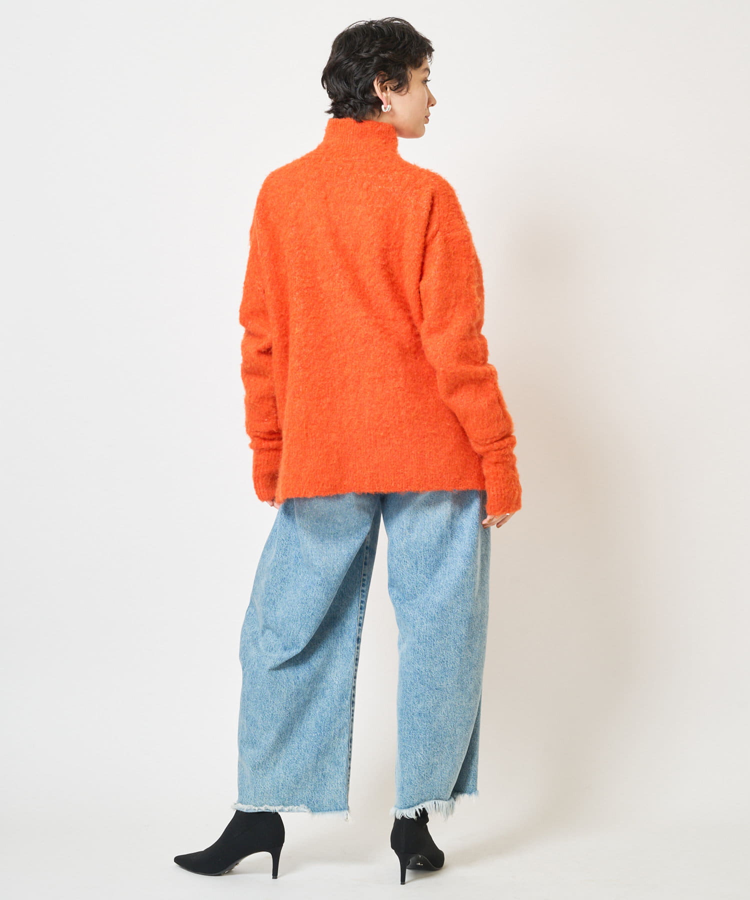 ■糸自体のくるくるとした毛足感のある表情が着映えする一枚。