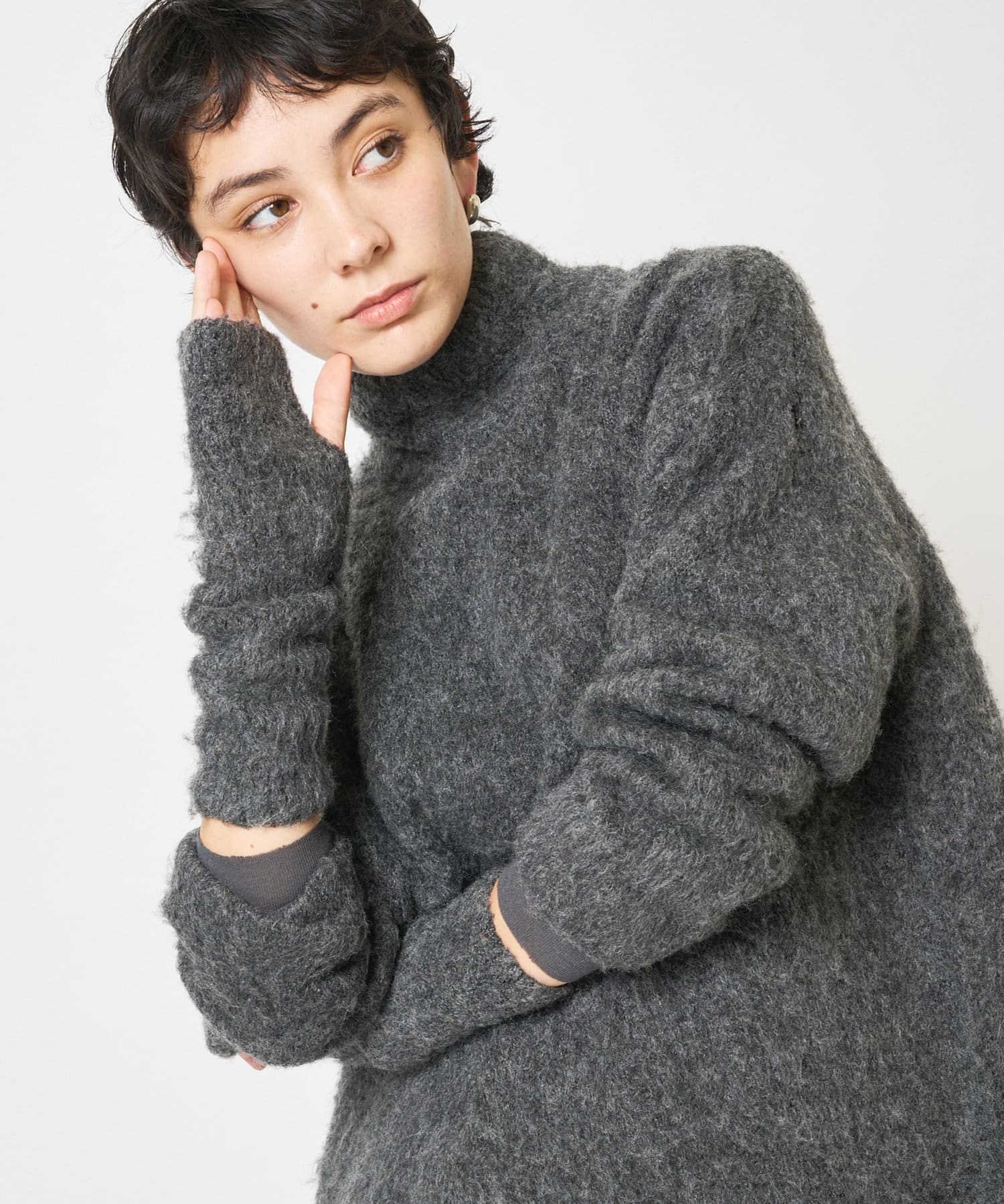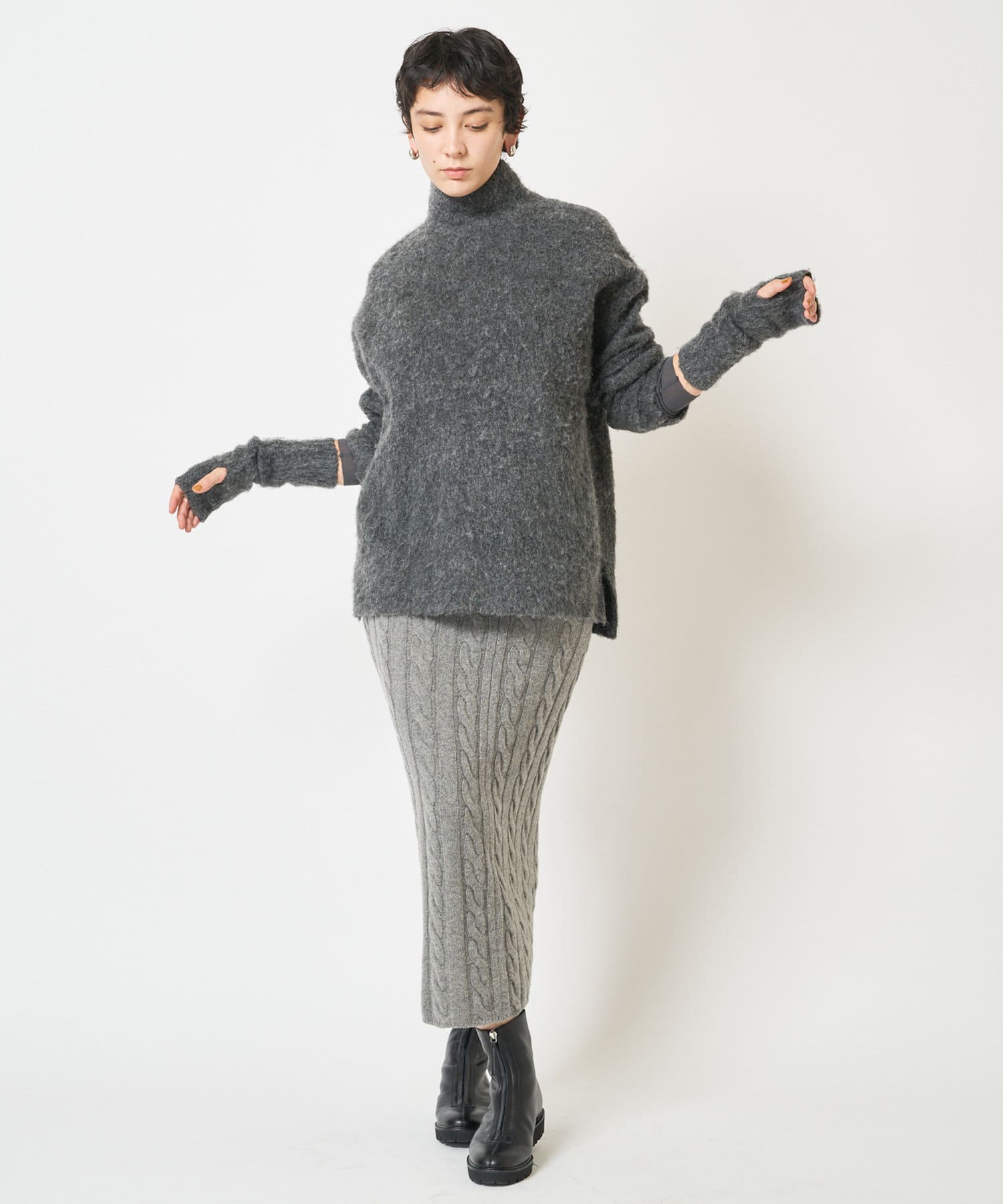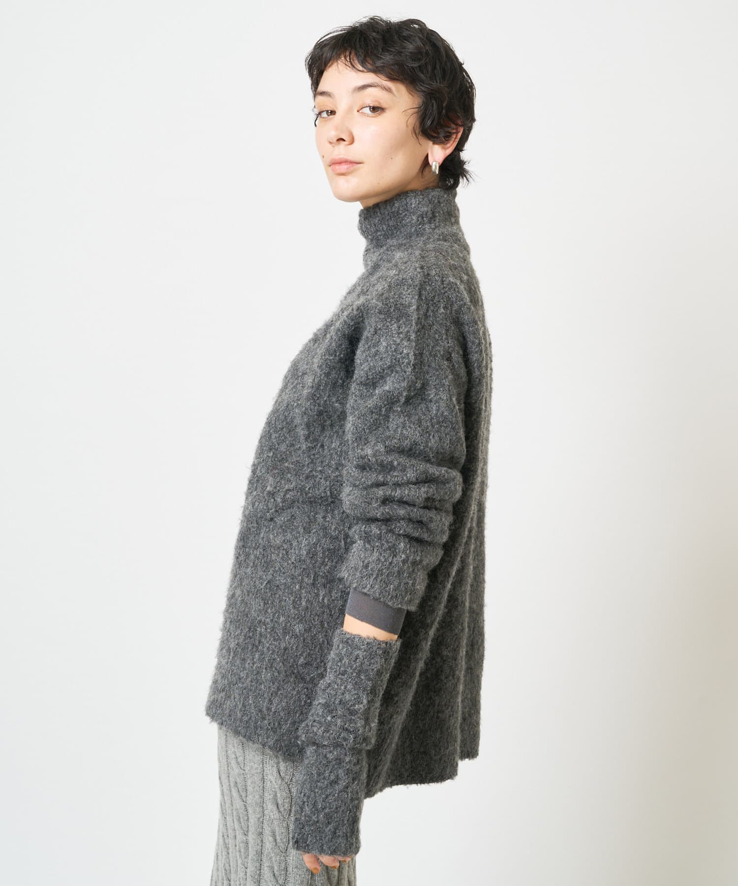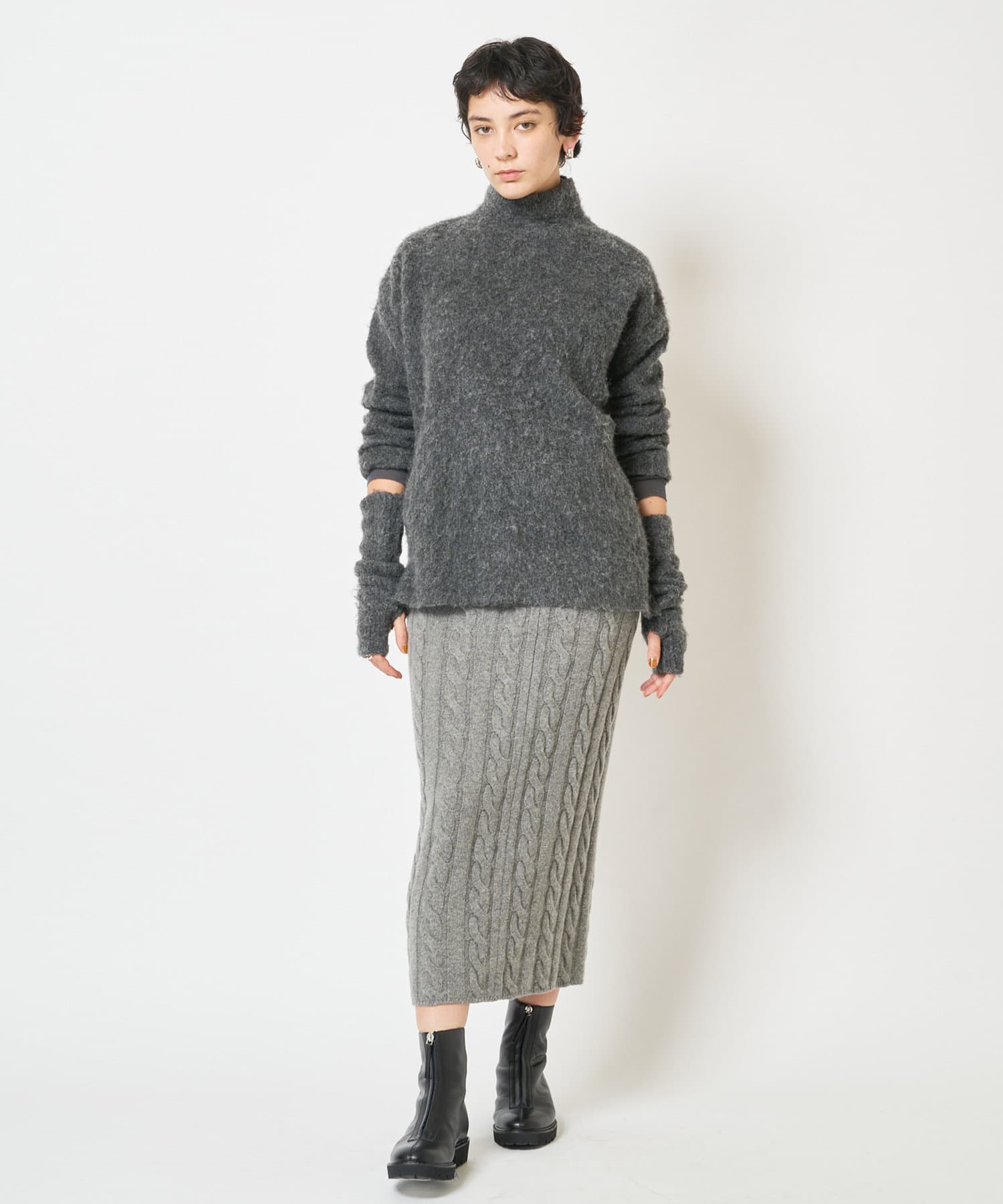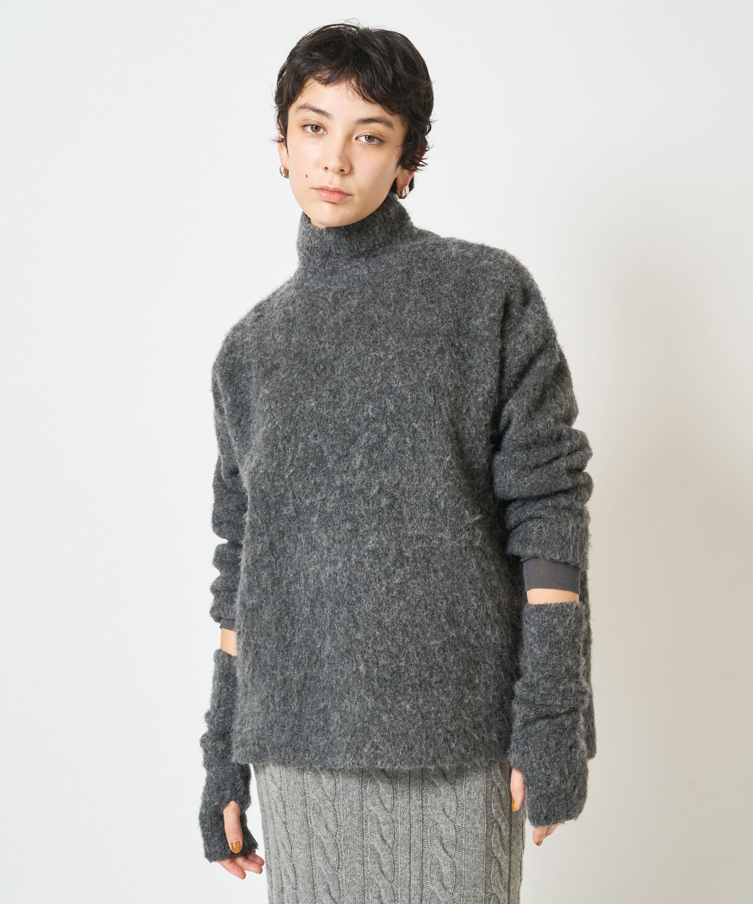 ■アームウォーマーがセットになったハイネックニットプルオーバー。