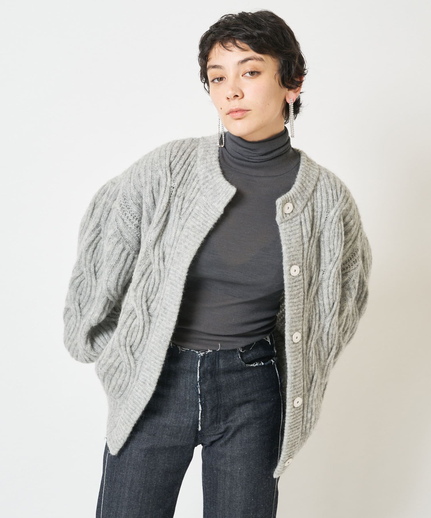 【THE PAUSE】モヘヤケーブルカーディガン
