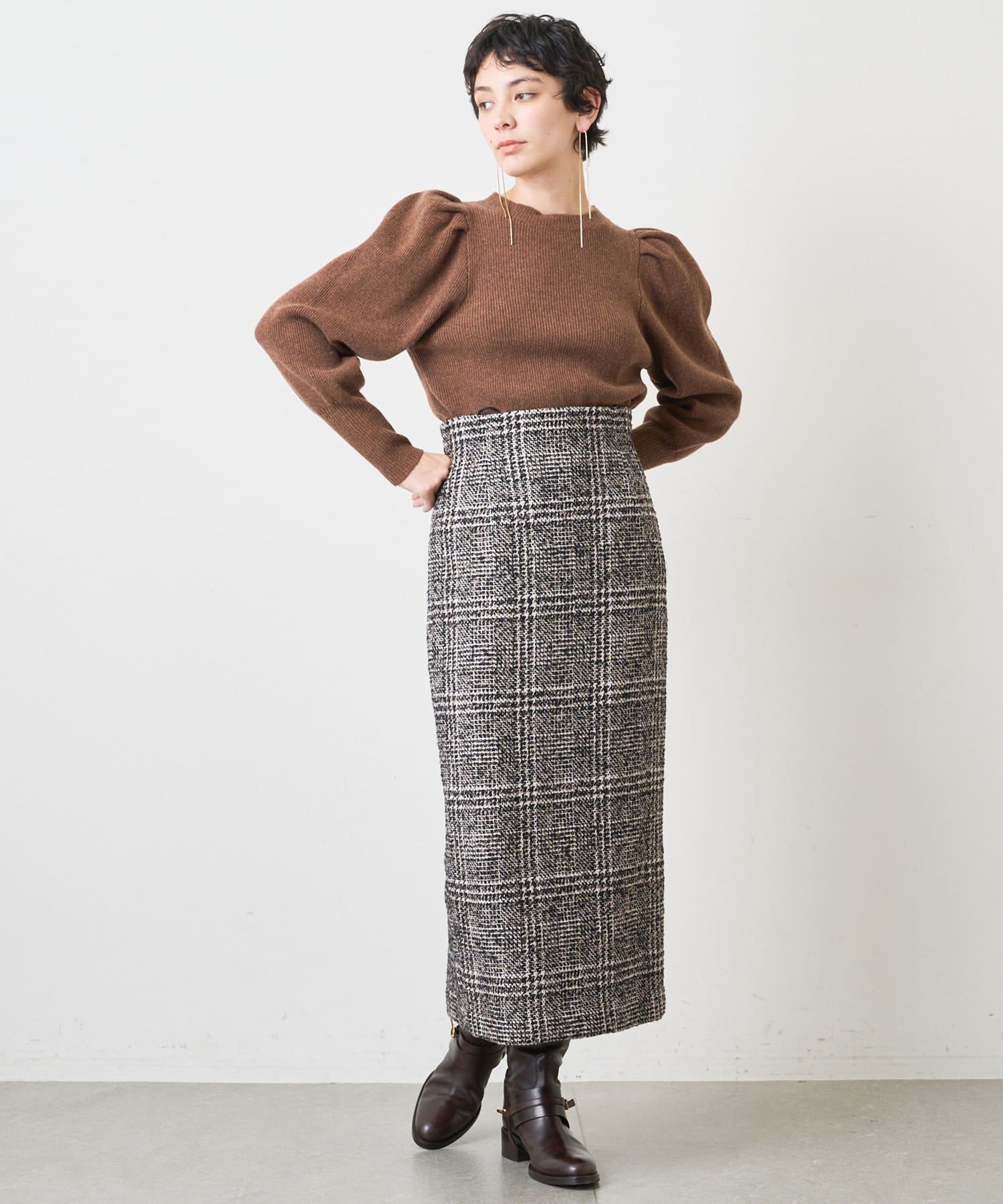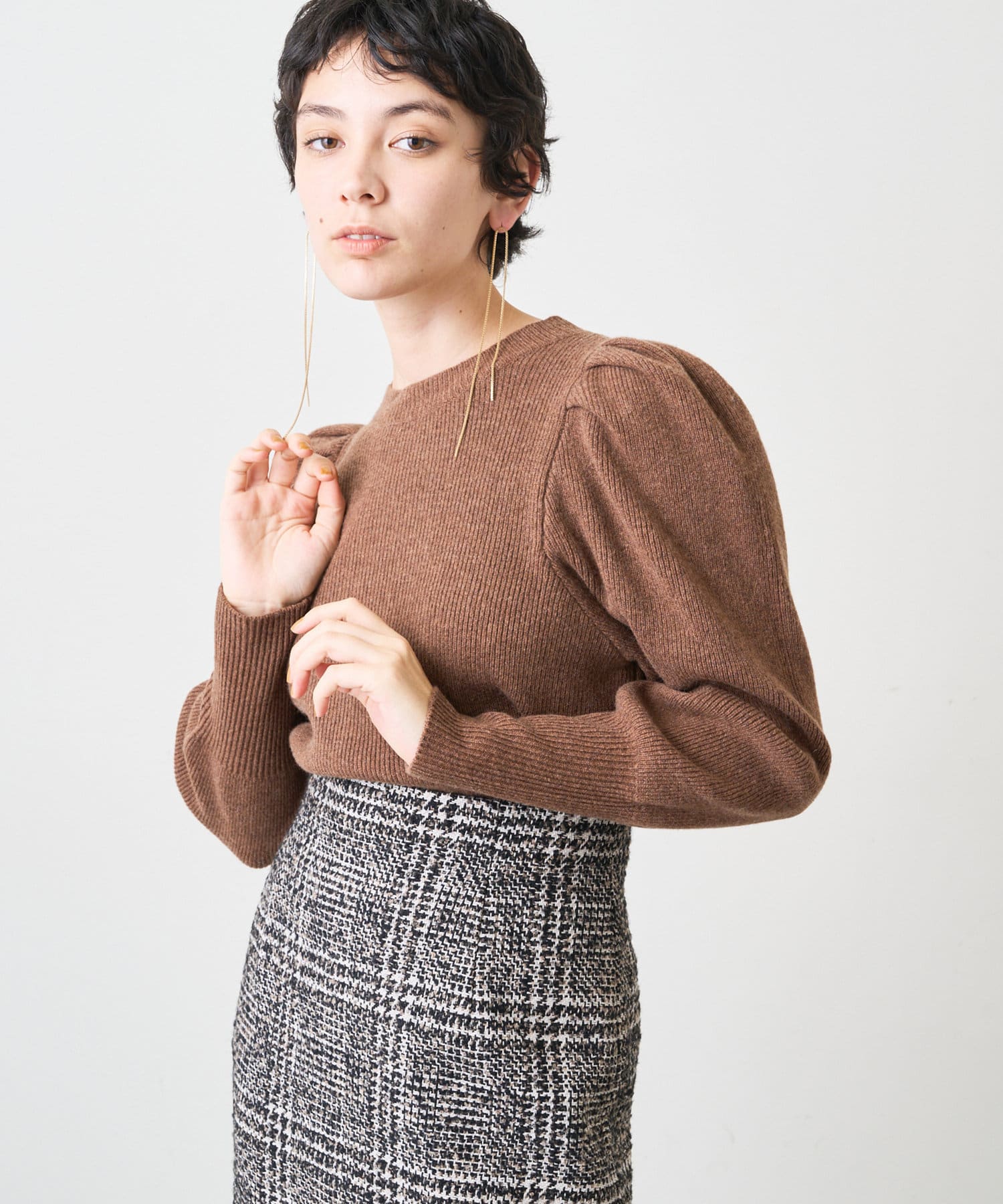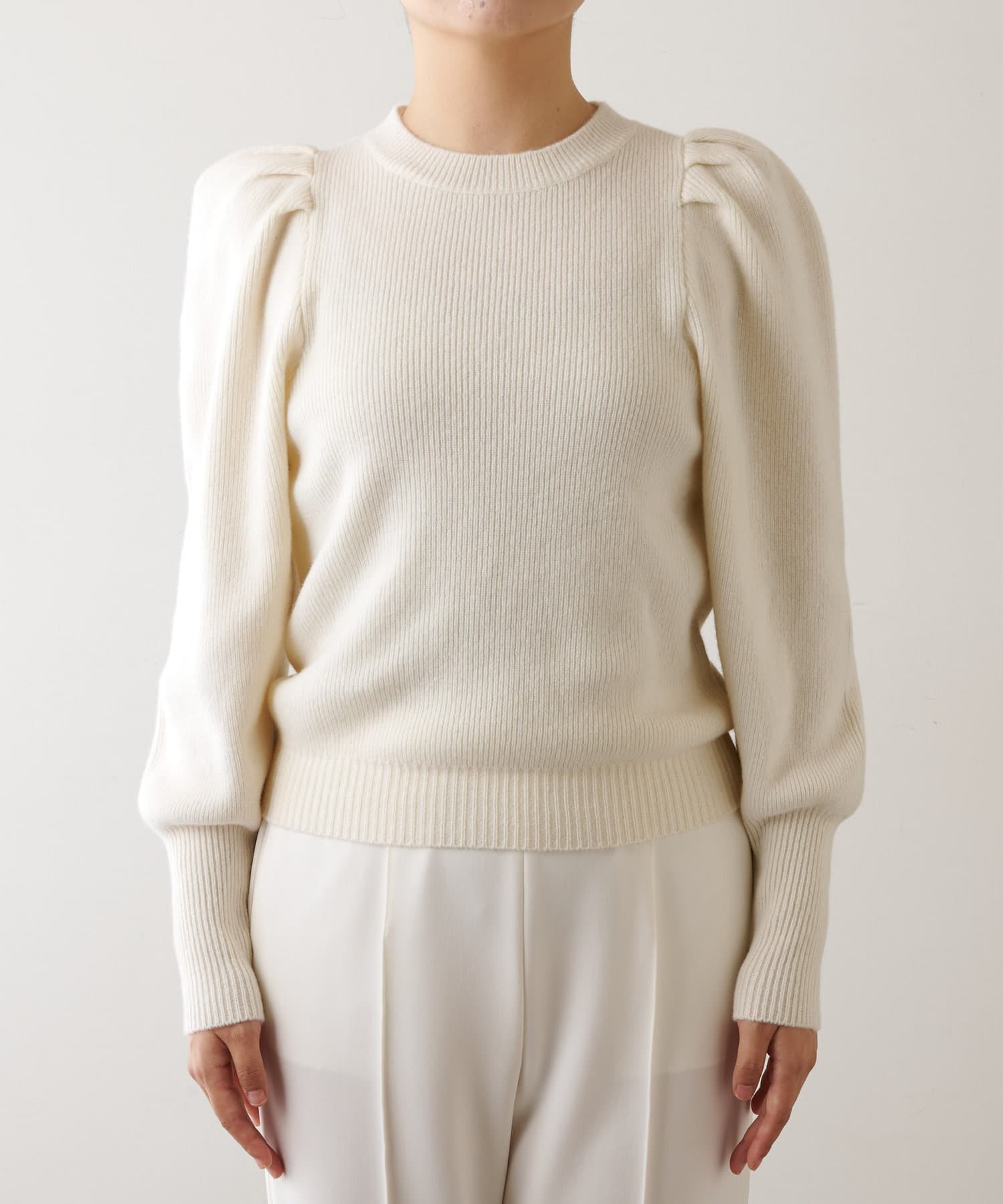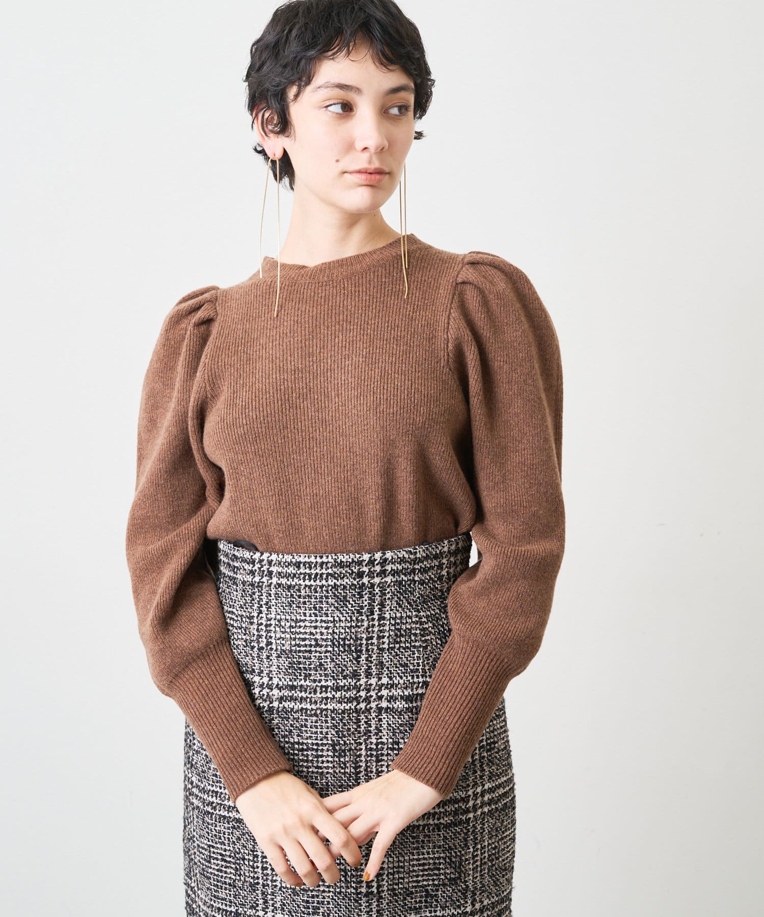 印象的なシルエットで着映える、レディなパフスリーブニット