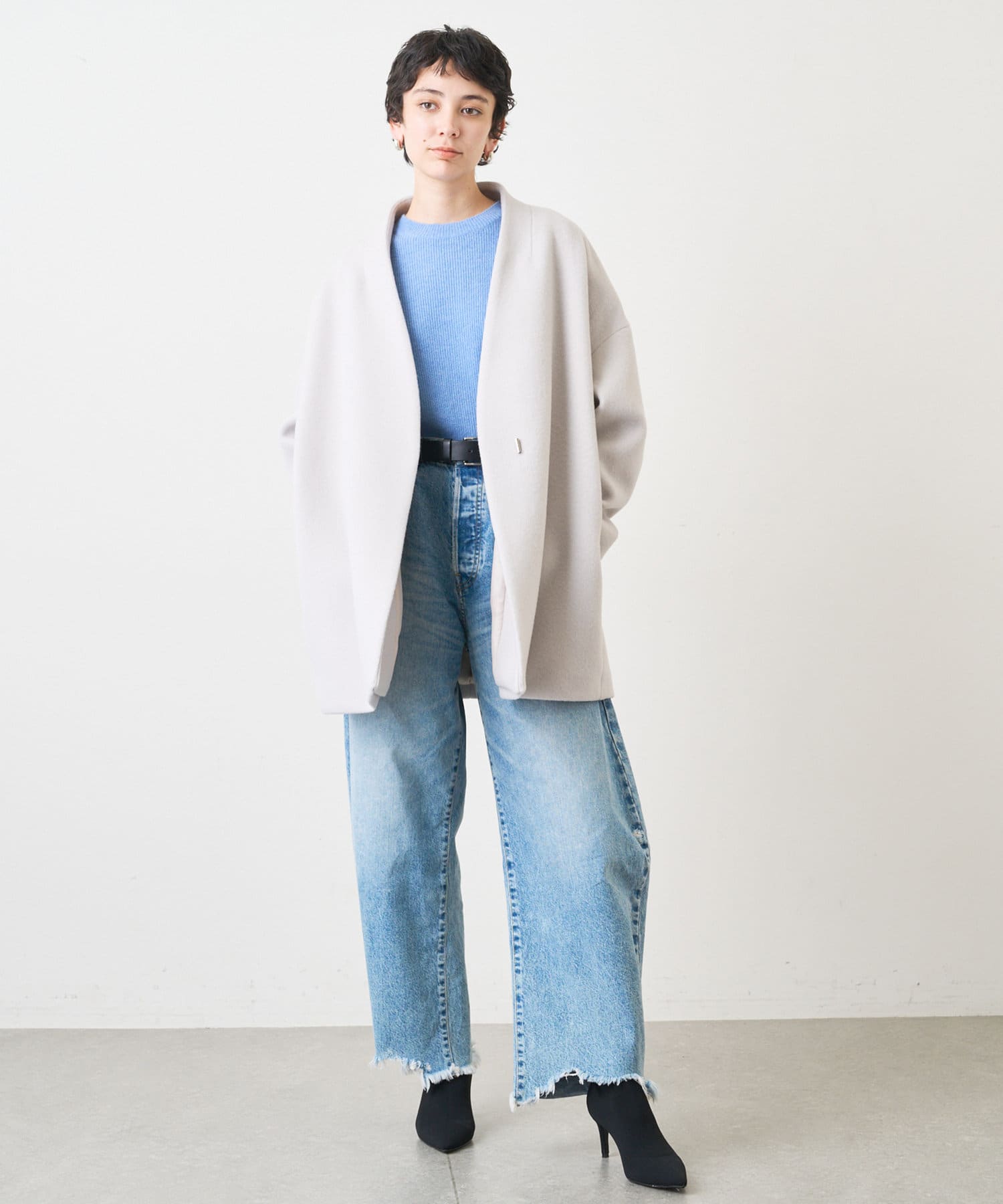 ■コンパクトなシルエットながら伸縮性のある素材で着用しやすく、一枚で様になる大人のデザインニット。