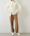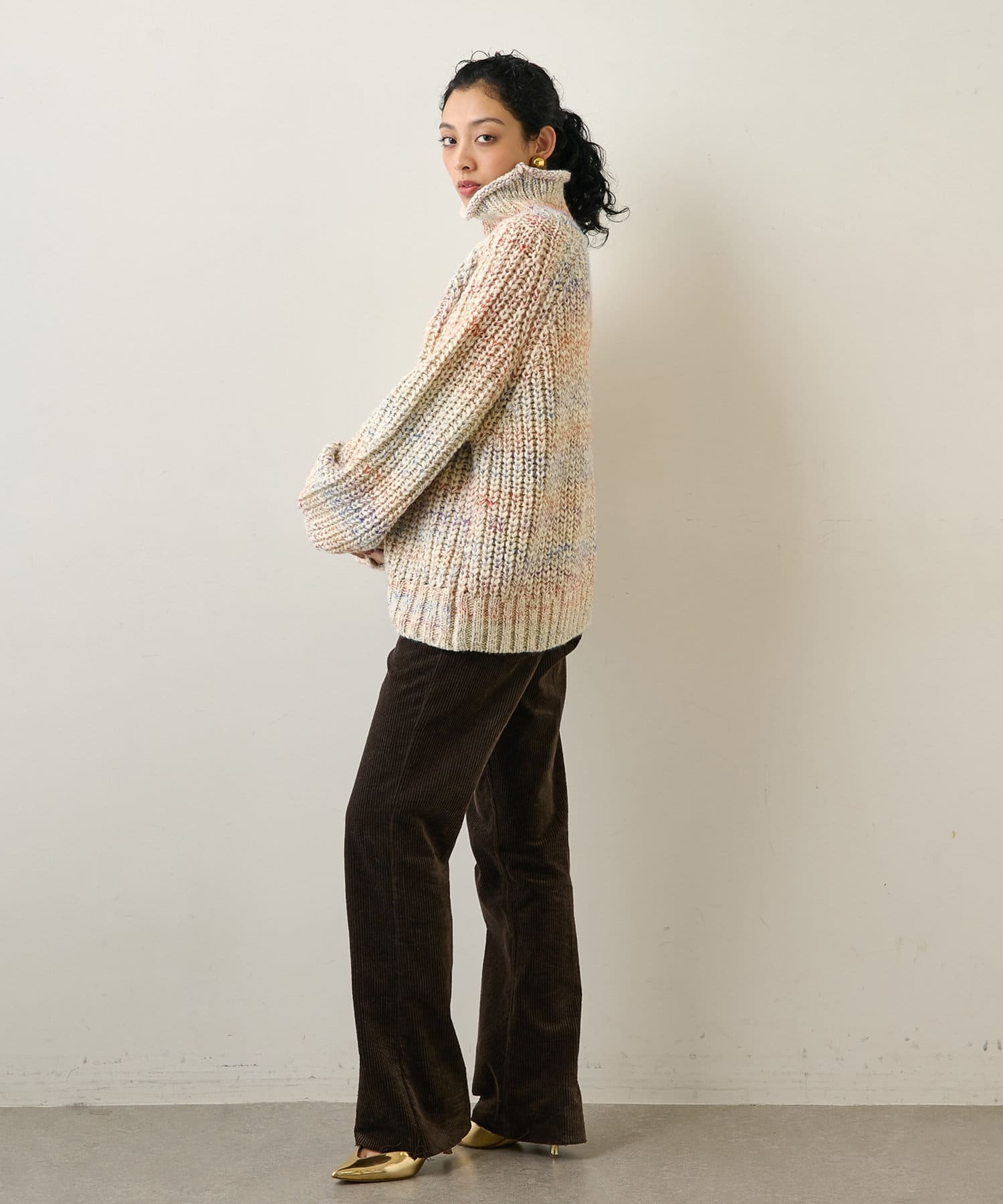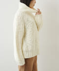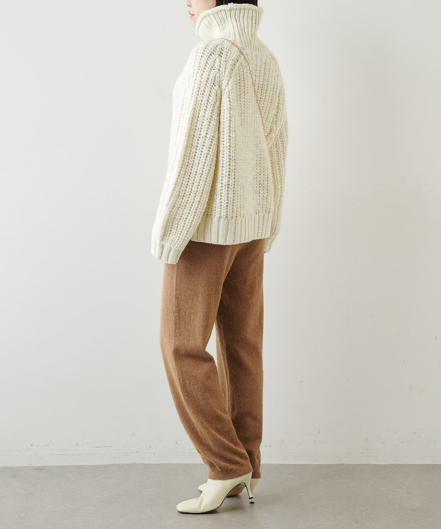 ざっくり編みのニットなので雰囲気を作りやすいです。首元もスタンドネックで折り返さなくても自立してくれます。