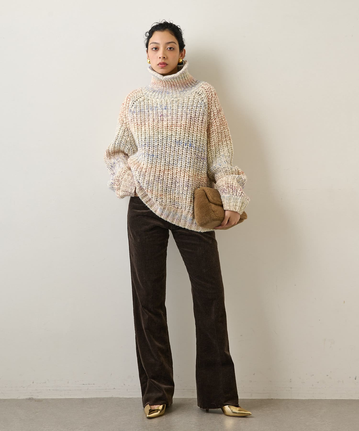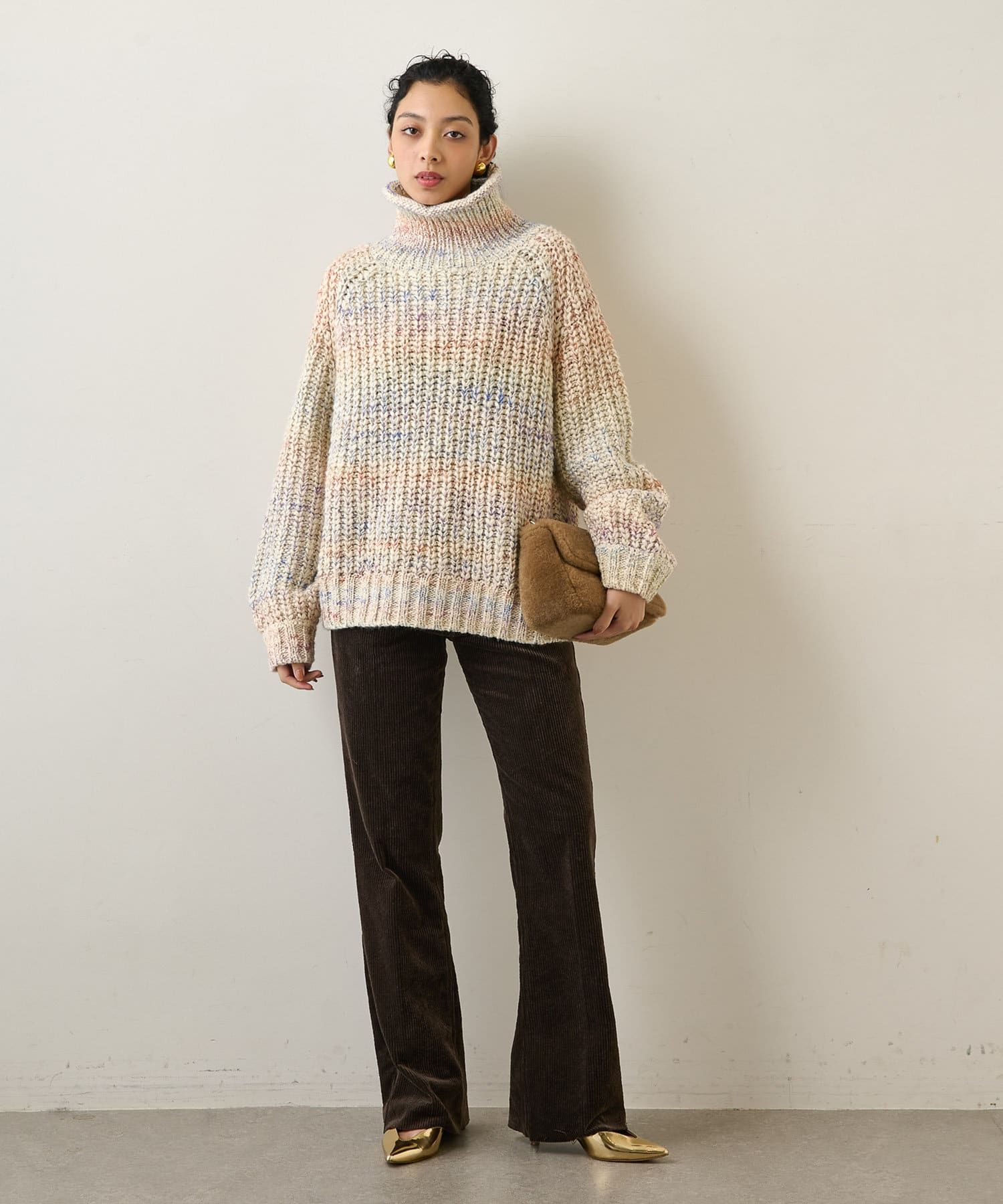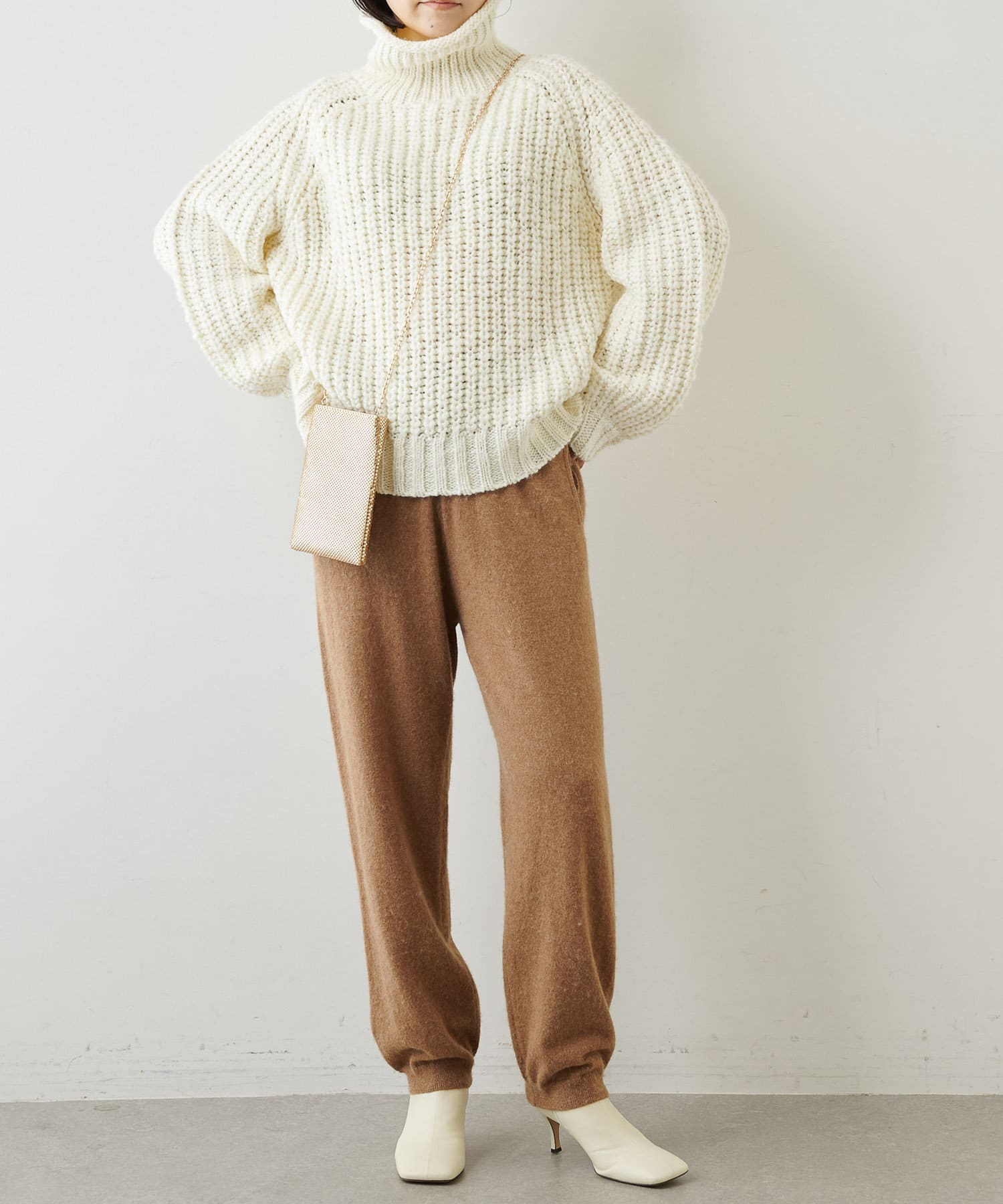表情豊かで着映え感のある、ローゲージタートルネックニット