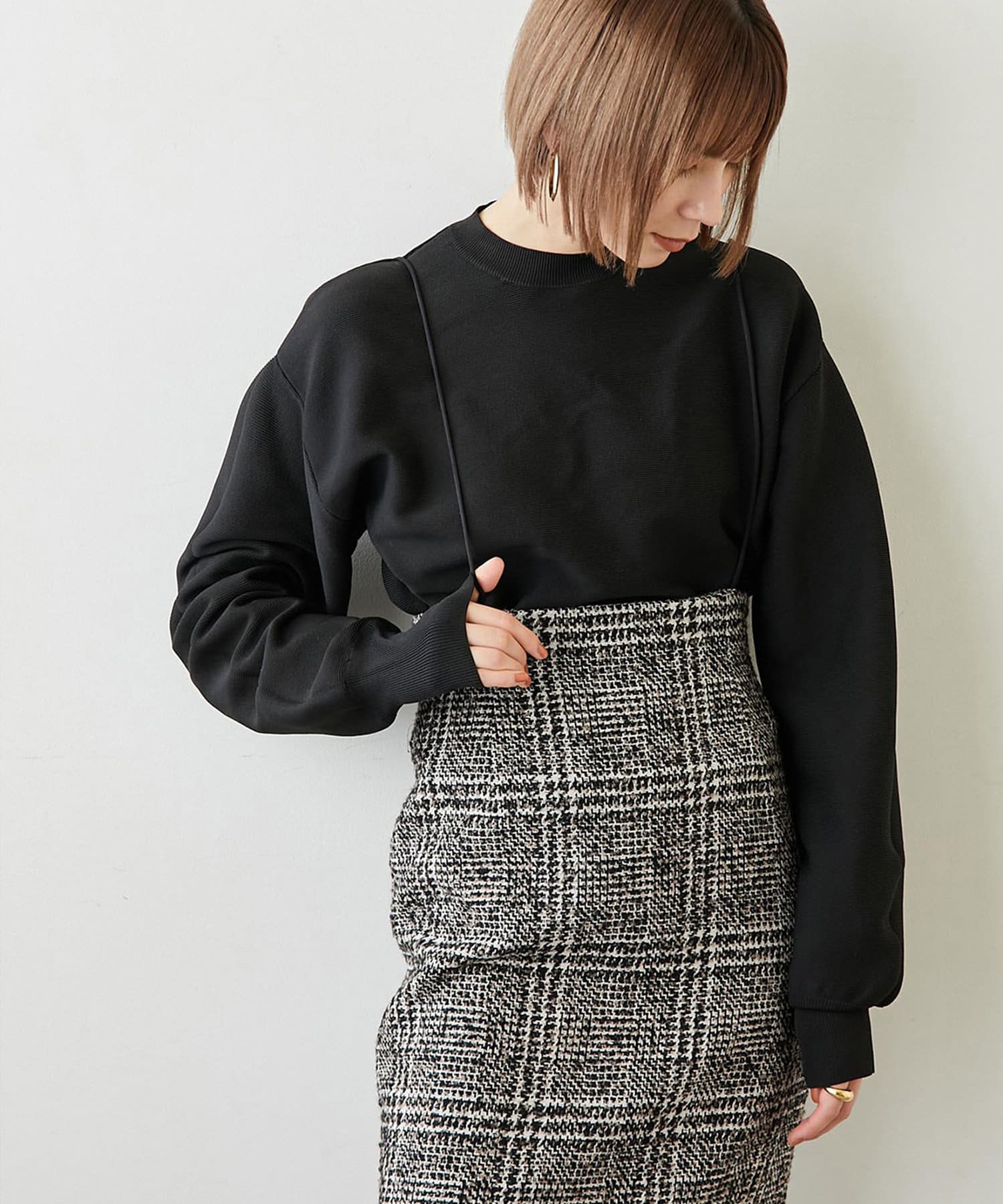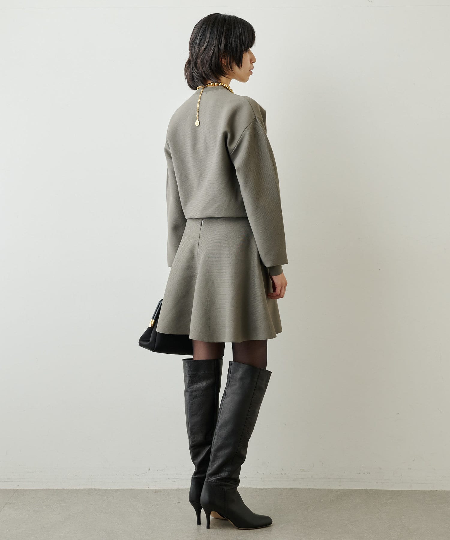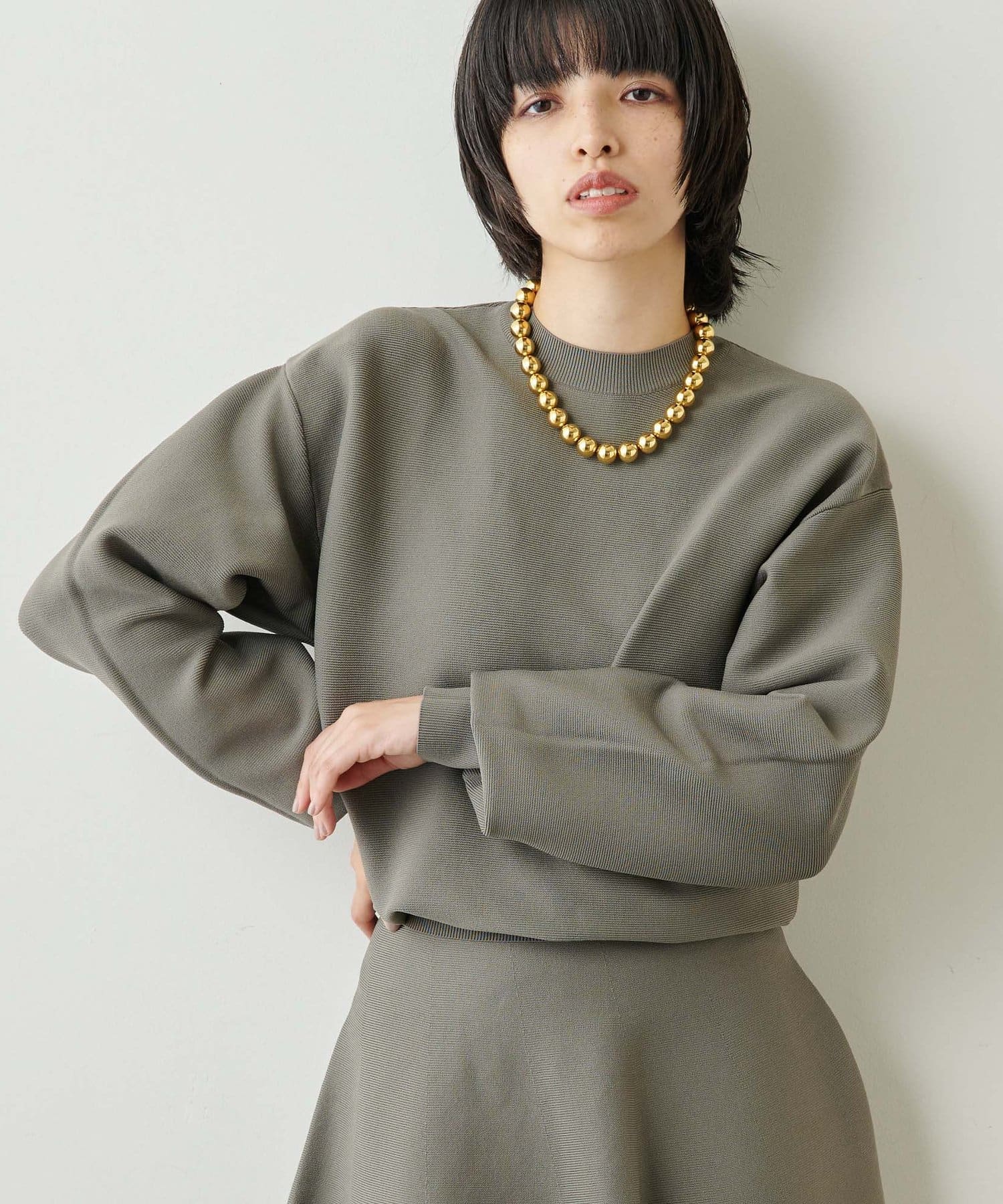 ■同素材のミラノリブフレアスカート(ブランド品番:WGZ1022401A0005)とセットアップで楽しむのもおすすめ。
