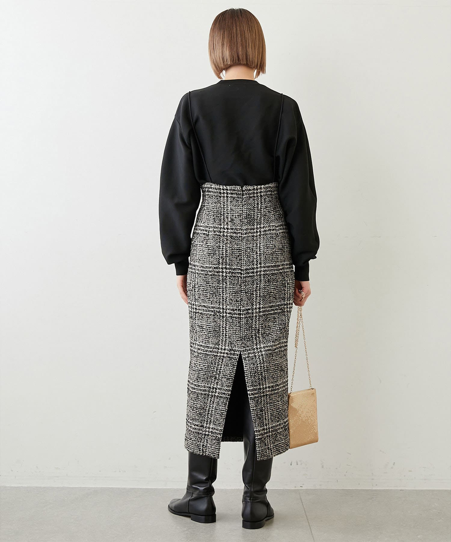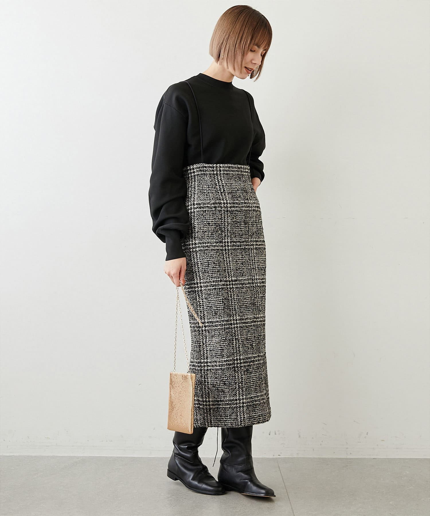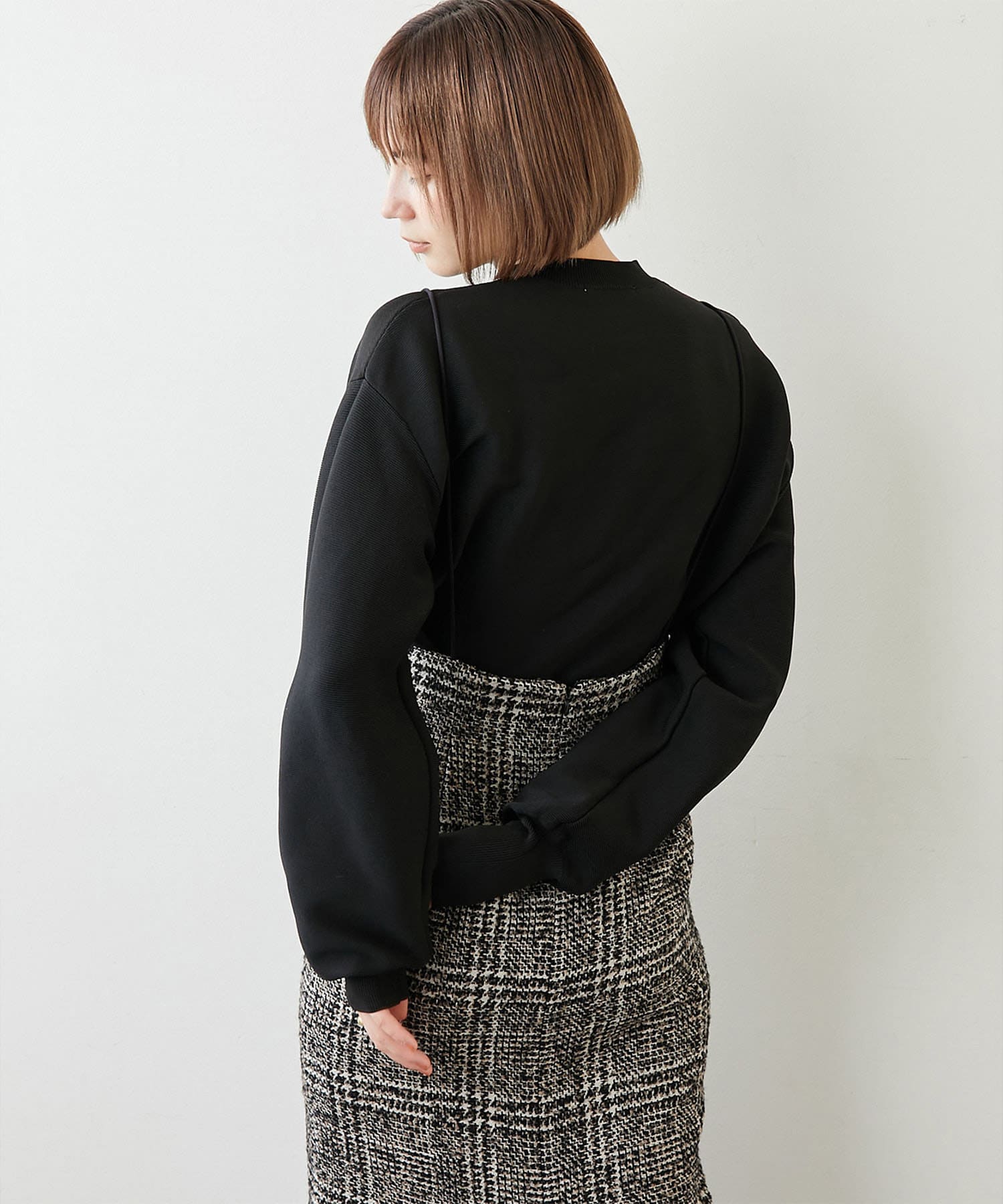 ■同素材のミラノリブフレアスカート(ブランド品番:WGZ1022401A0005)とセットアップで楽しむのもおすすめ。