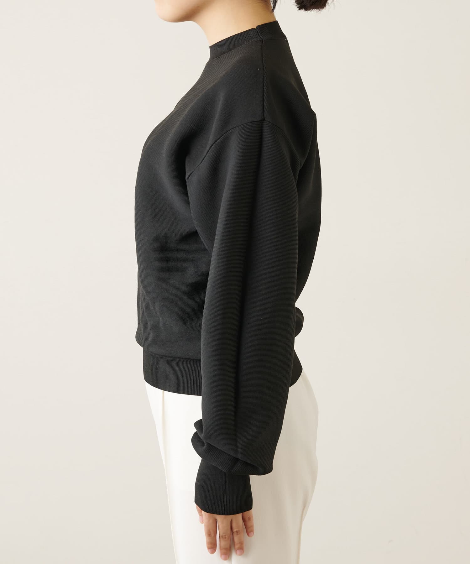 ■もっちりとした風合いのストレッチニットを使用したプルオーバー。