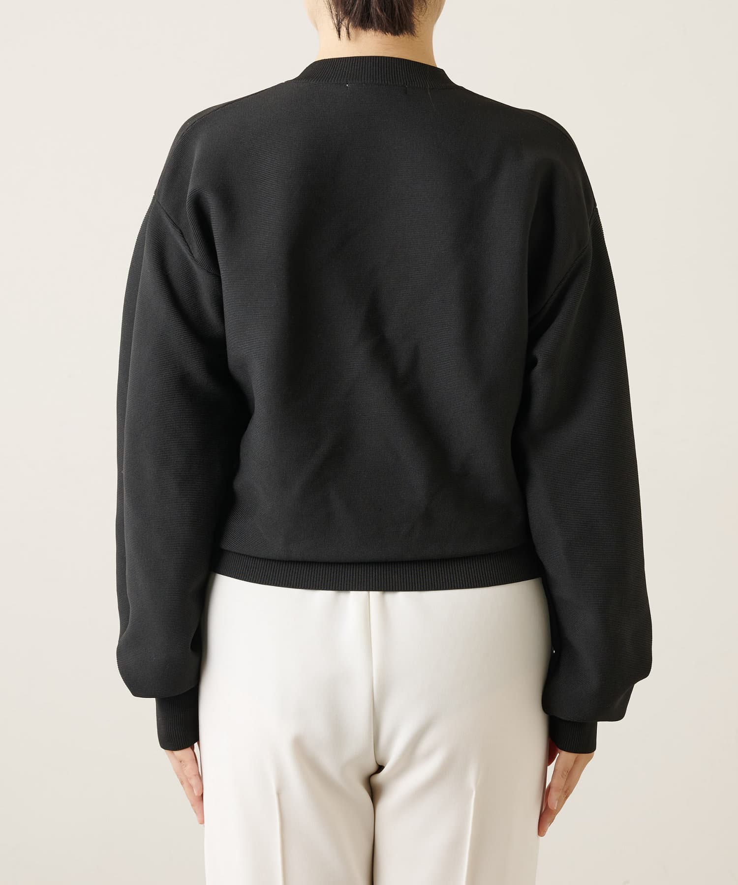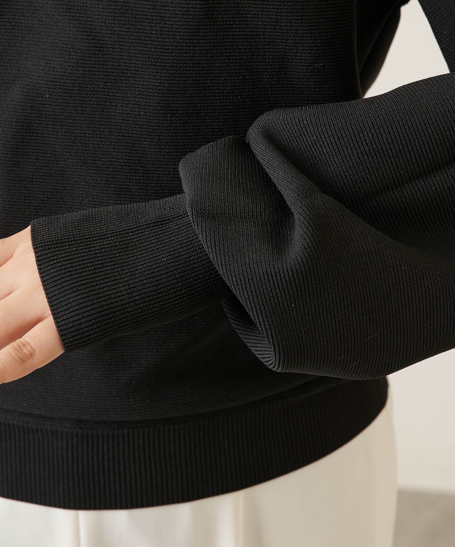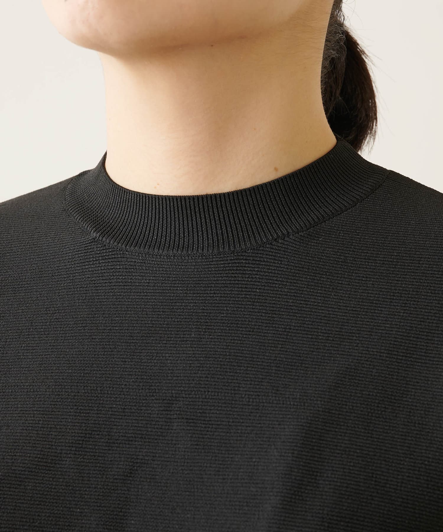 ■程よい厚みとハリのある生地感がきれいなシルエットをキープし、目の詰まったニット編地のきれいな表情が上品な印象をプラス。