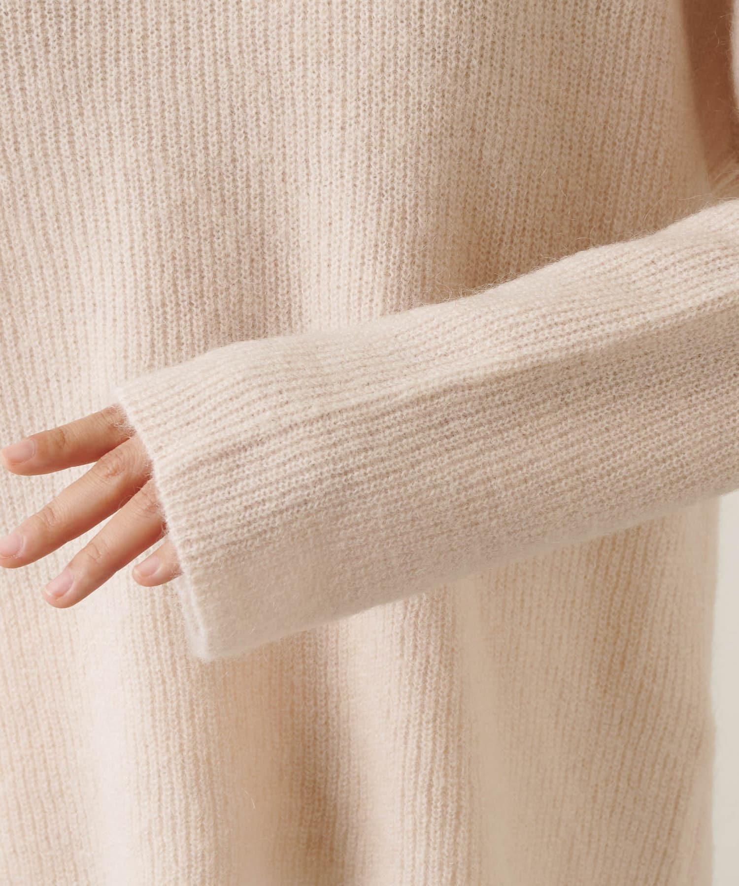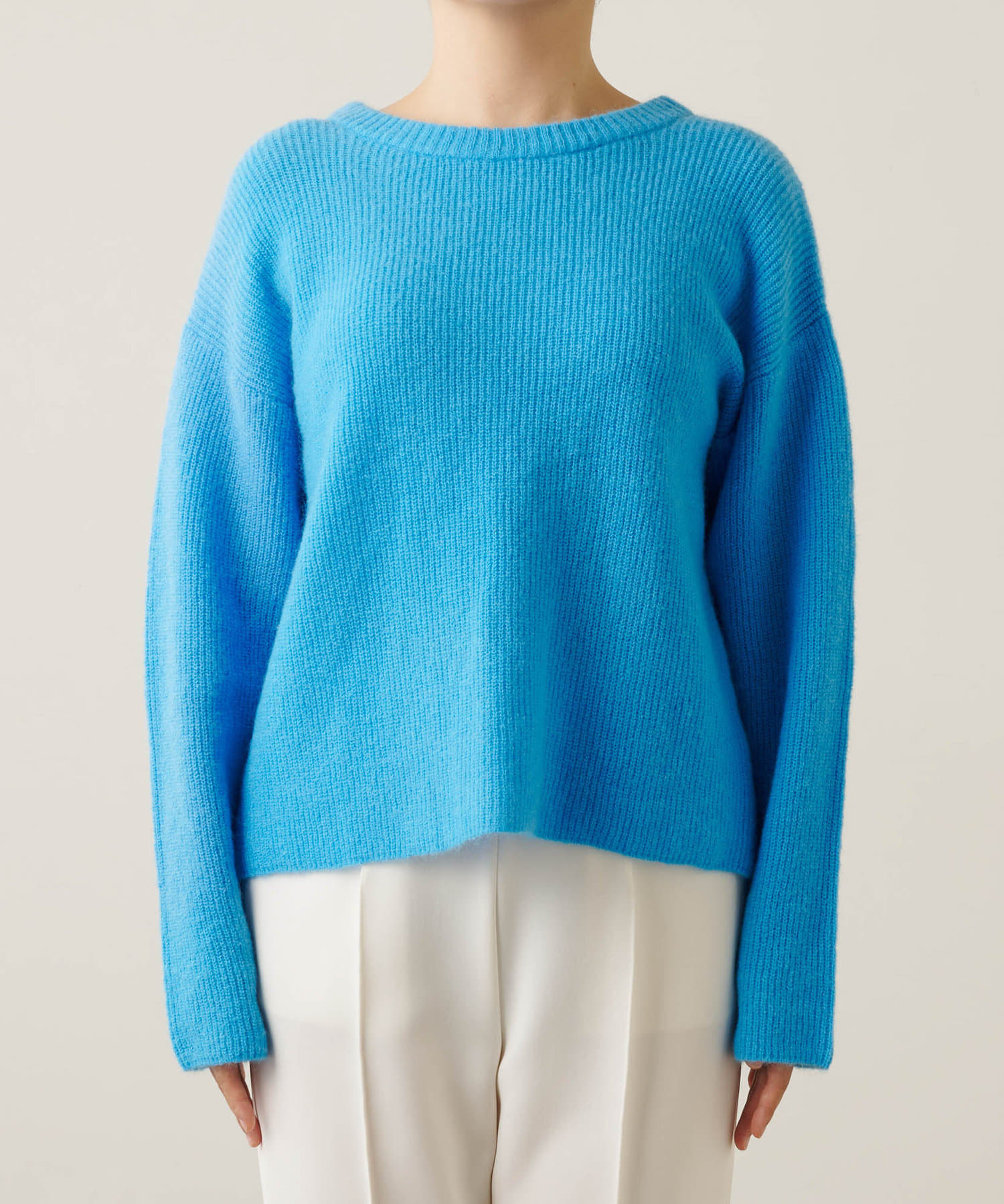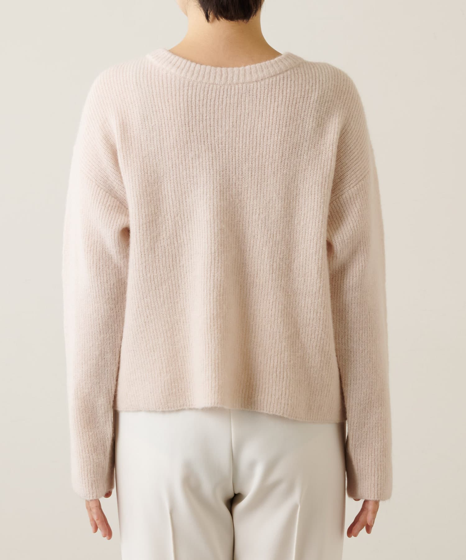 ■暖かみのあるモヘア混素材を使用したニットプルオーバー。