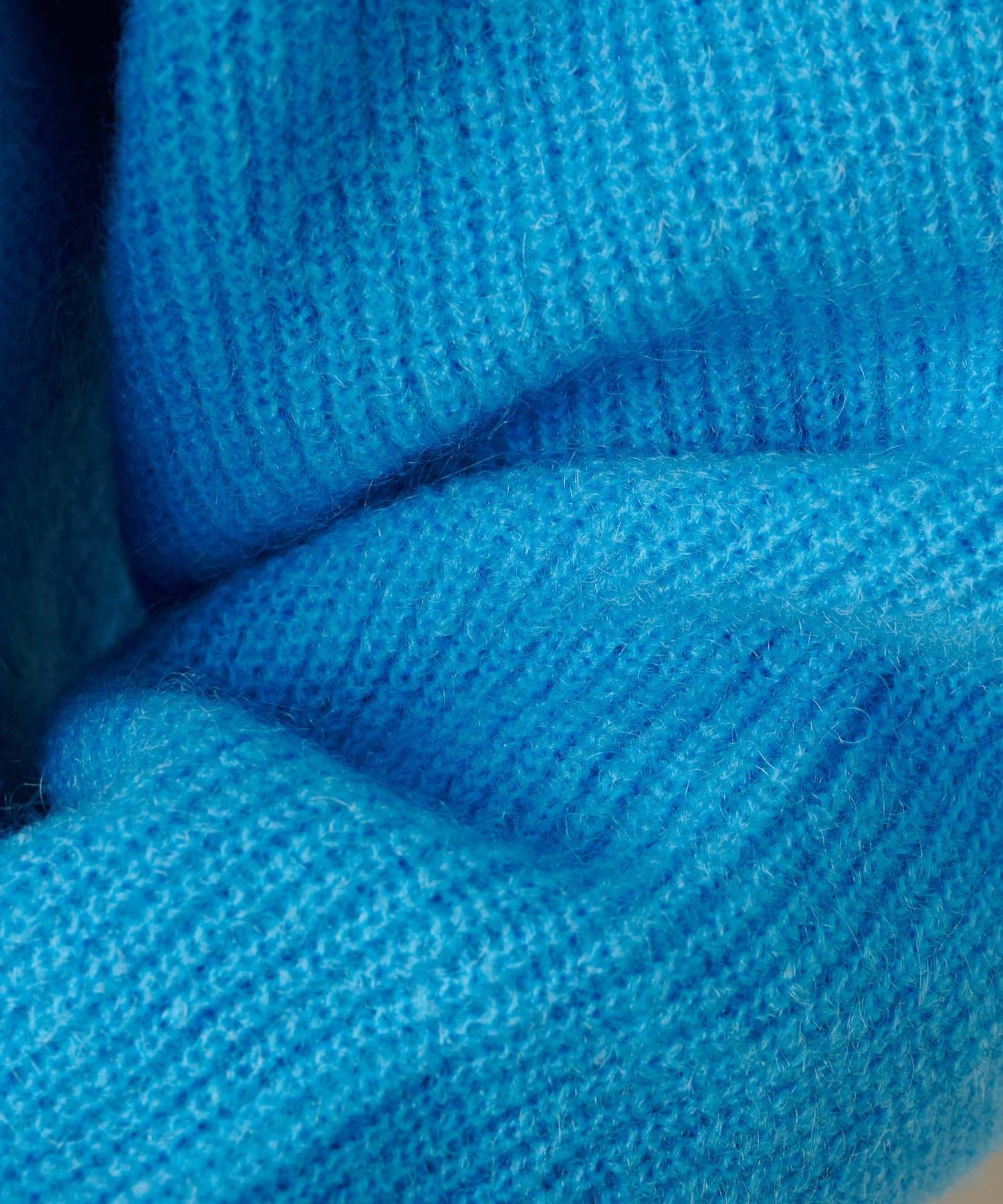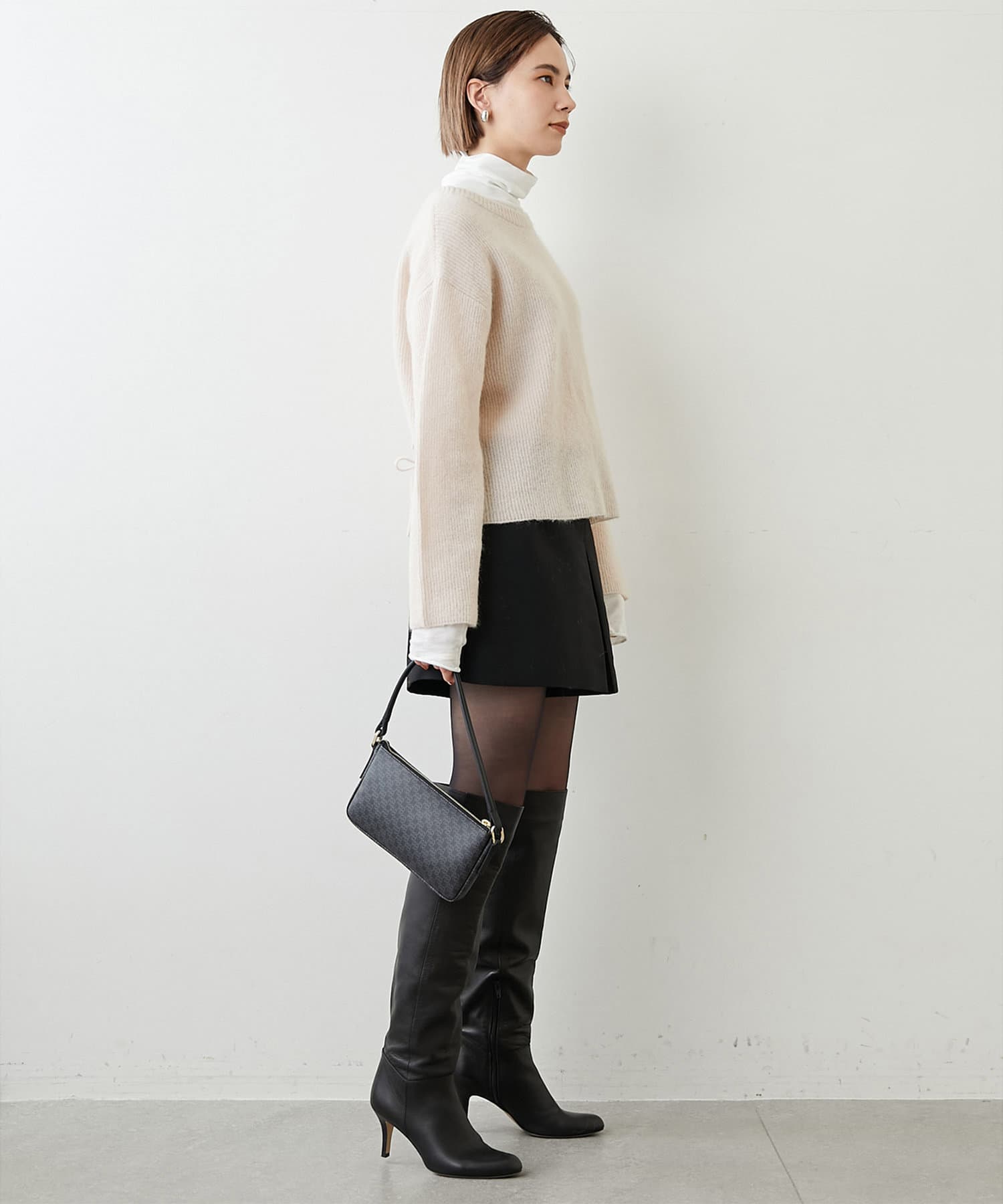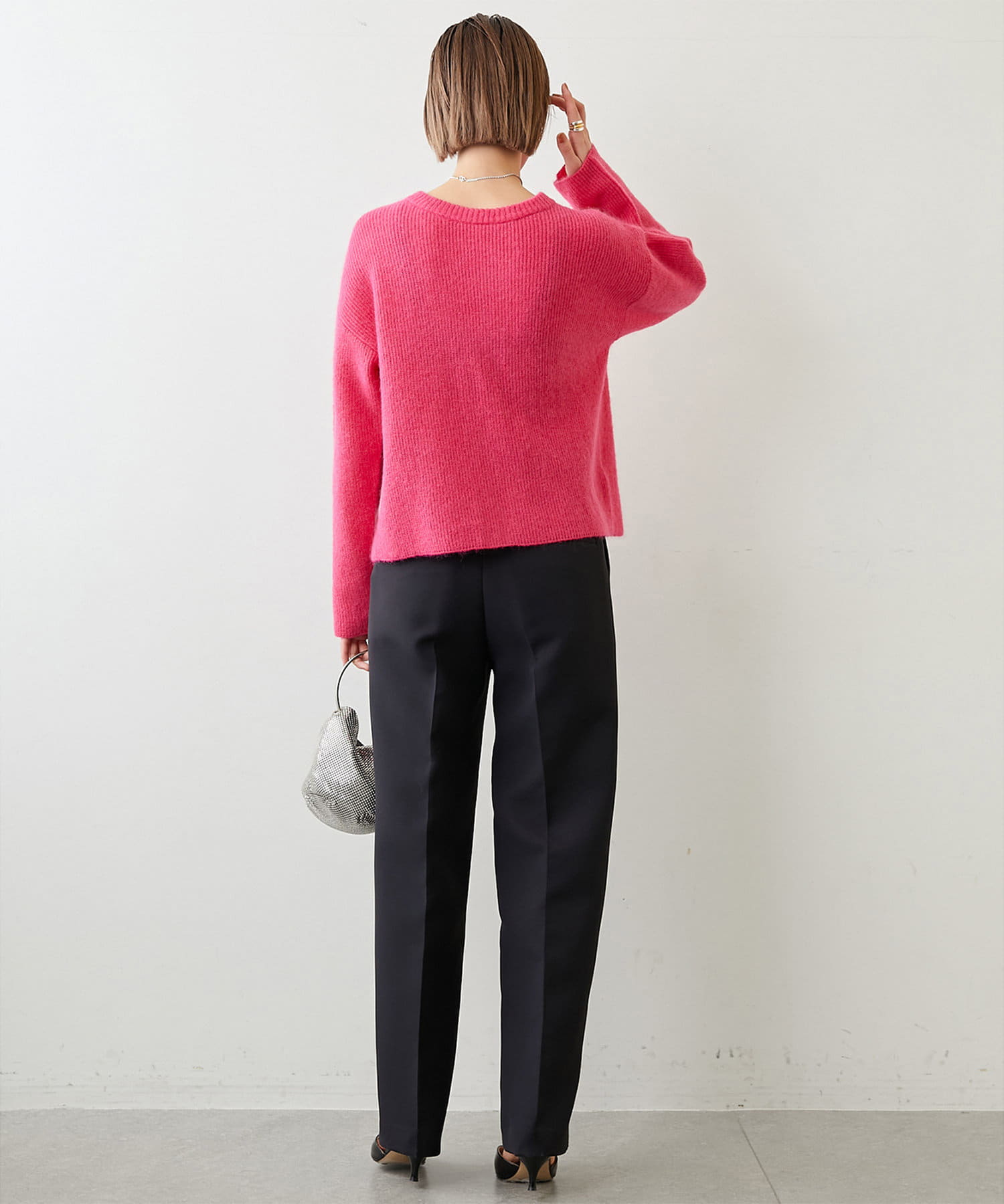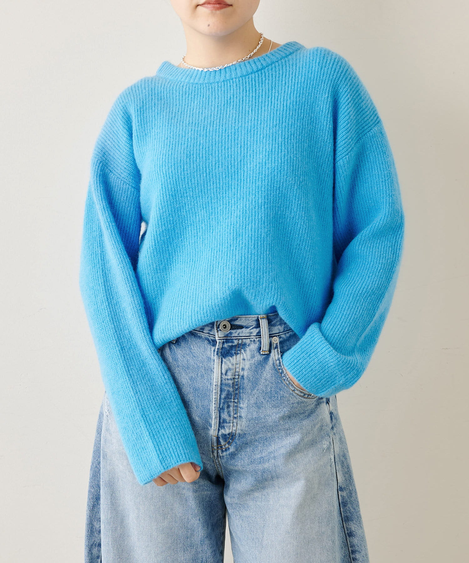 ■暖かみのあるモヘア混素材を使用したニットプルオーバー。