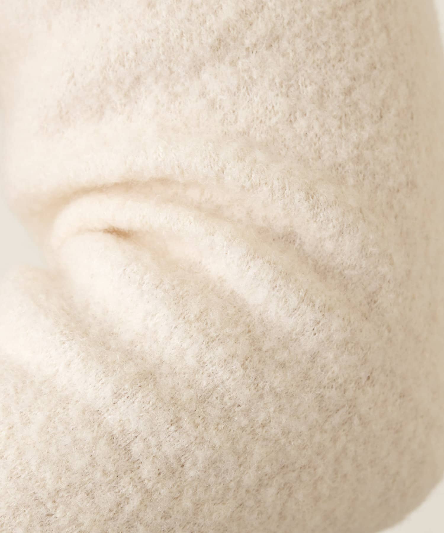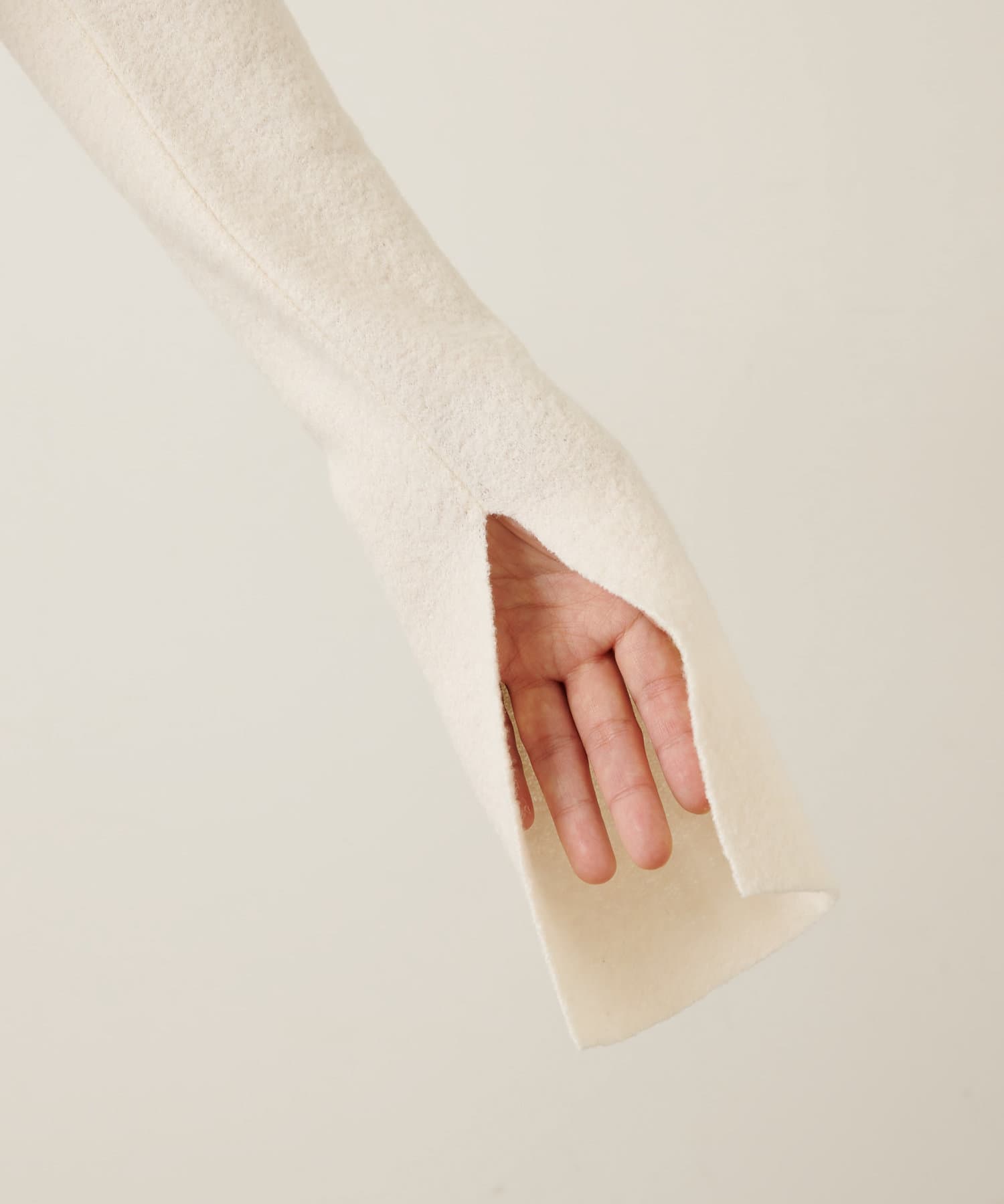 タテ糸にナイロンを使用することによって適度な張り感と軽量感を表現し、ヨコ糸にウールを打つことに寄ってウォーム感も表現した生地。