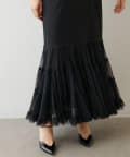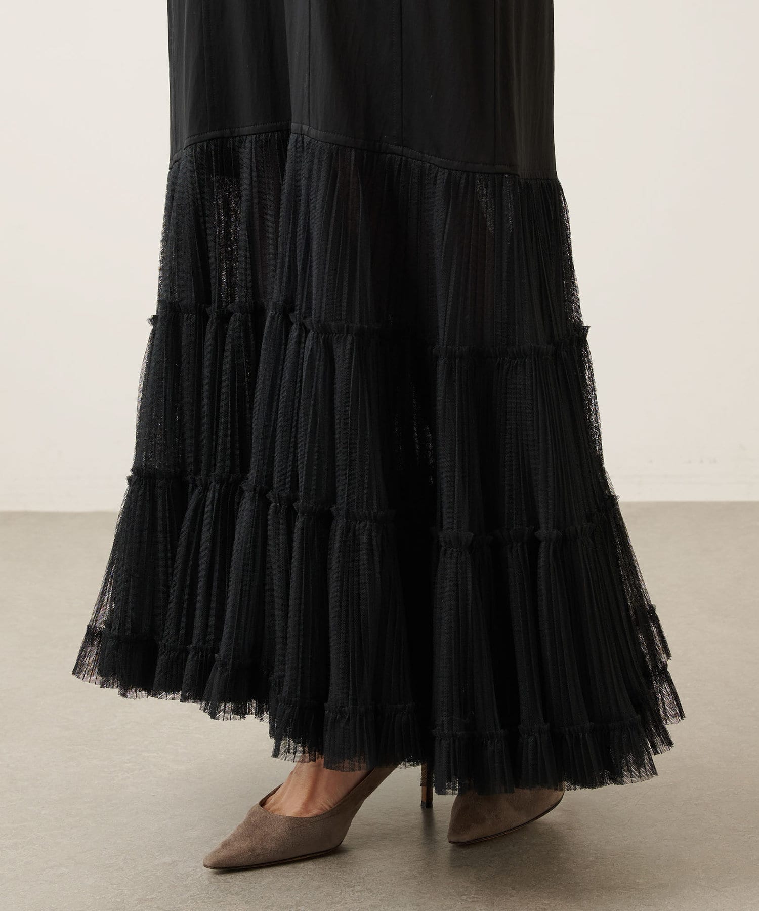 サテンの上品な光沢とチュールの透け感が華やかさを演出するブラック。
