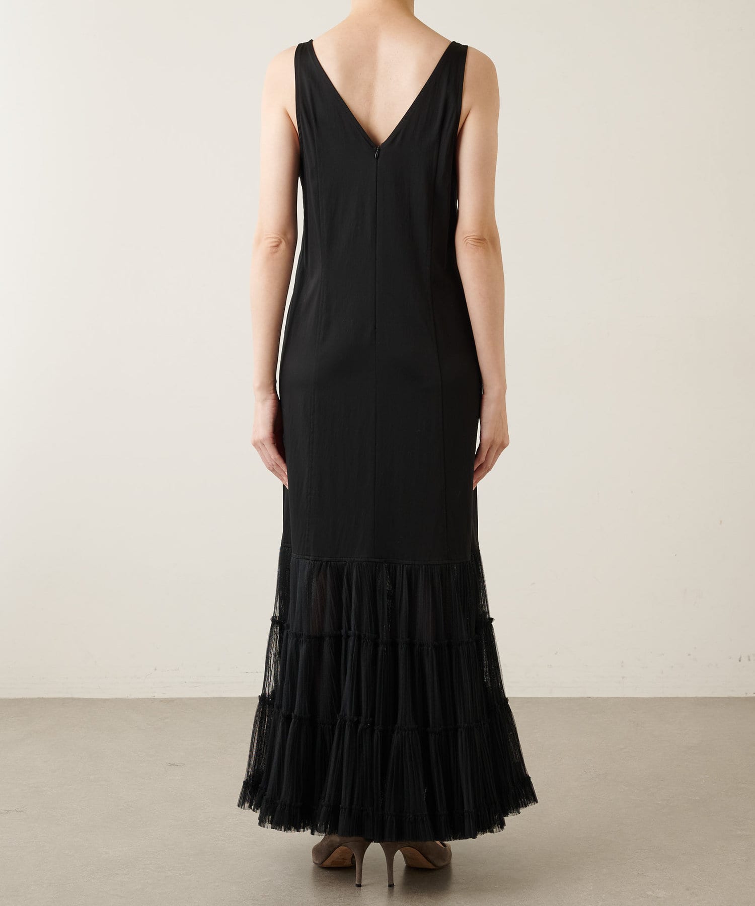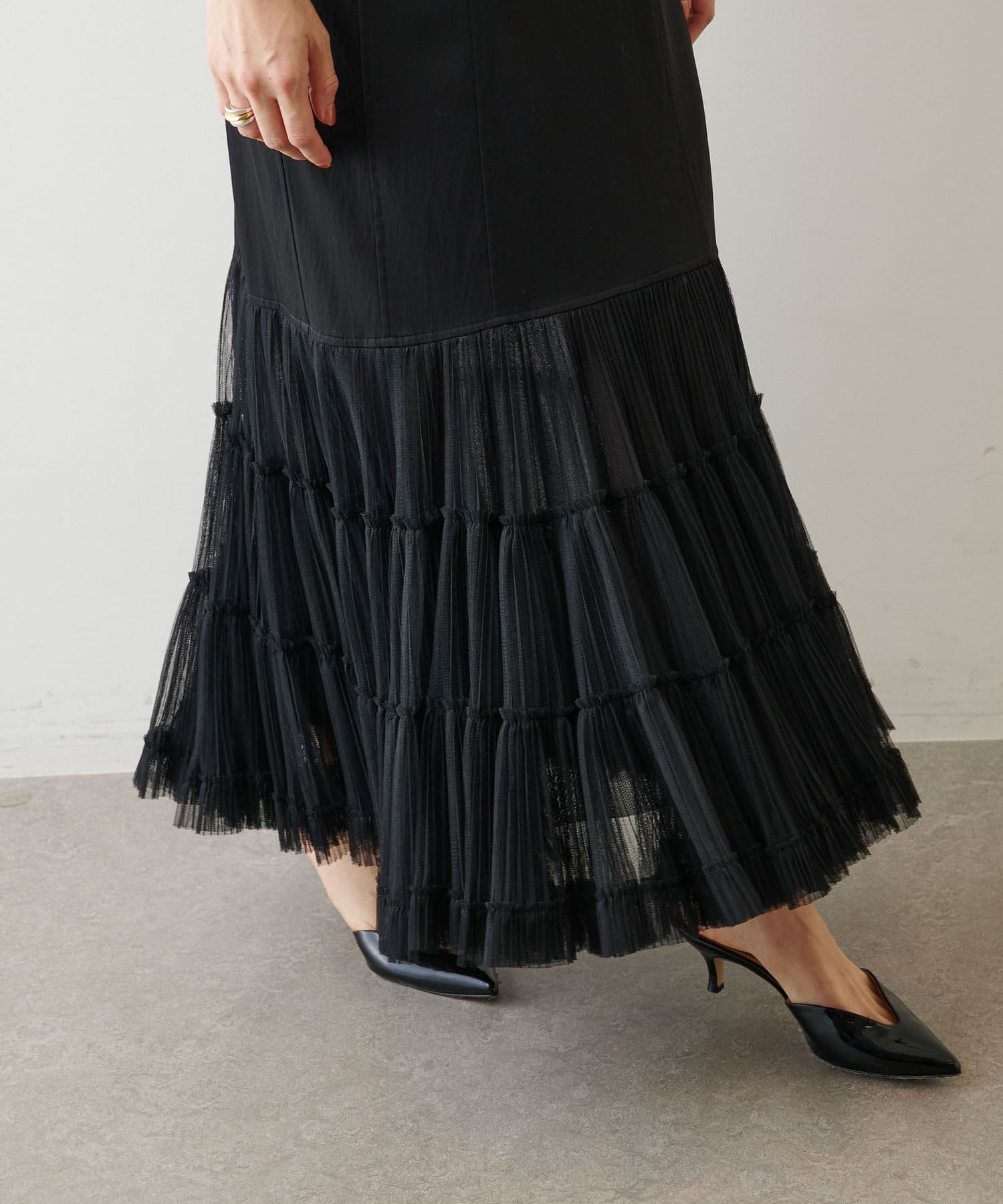 ■組み合わせたマットなサテン素材が、よりチュールの華やかさを引き立てるデザイン。