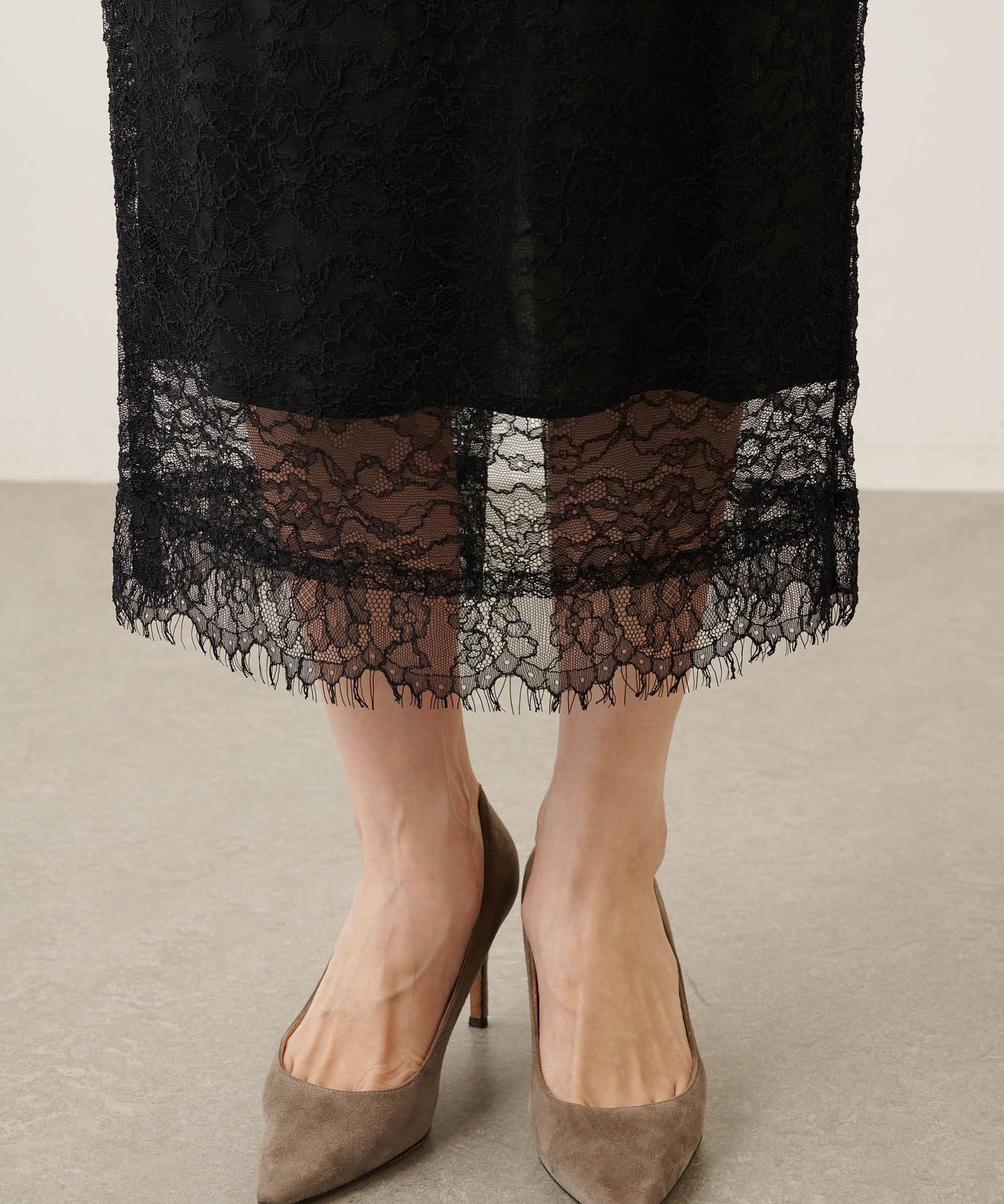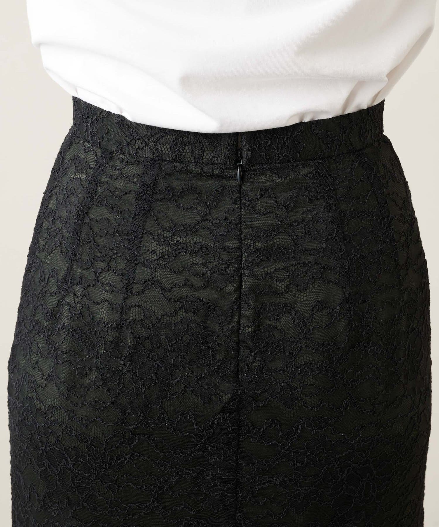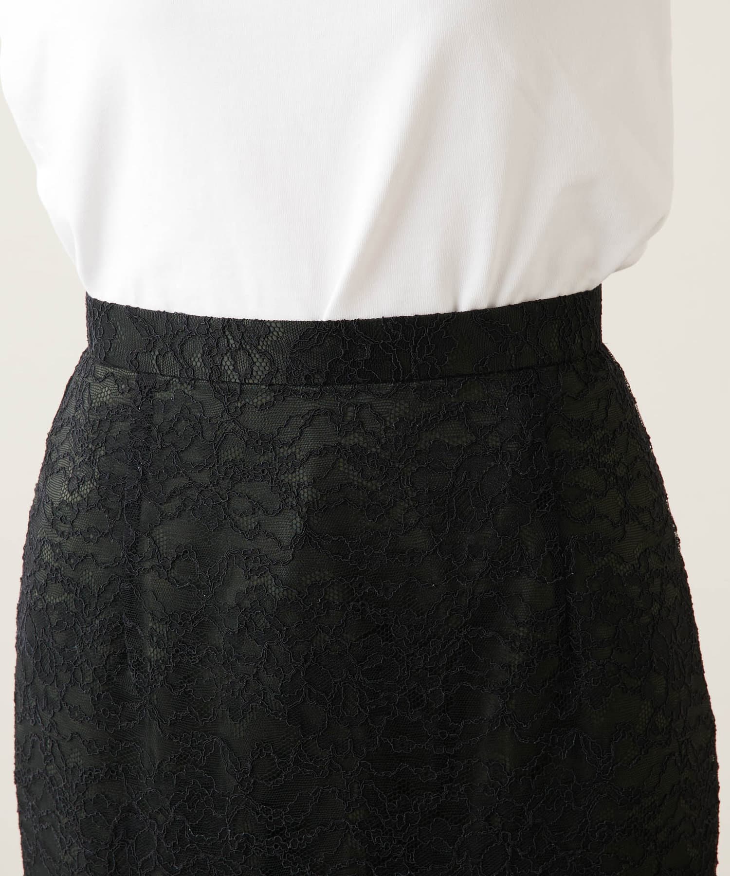 大人を上品な印象に導く、リュクスなレースタイトスカート