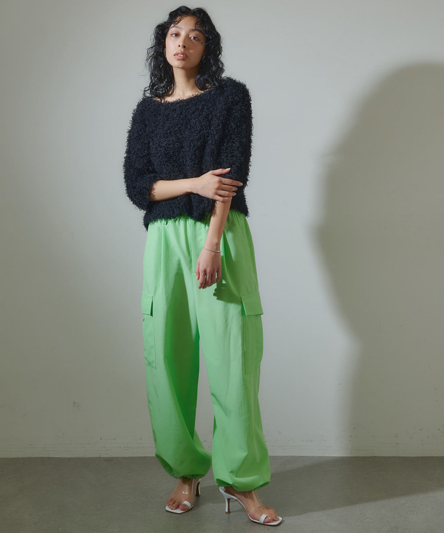 ハリのあるシャカシャカした素材で、オールシーズン履けそうです。