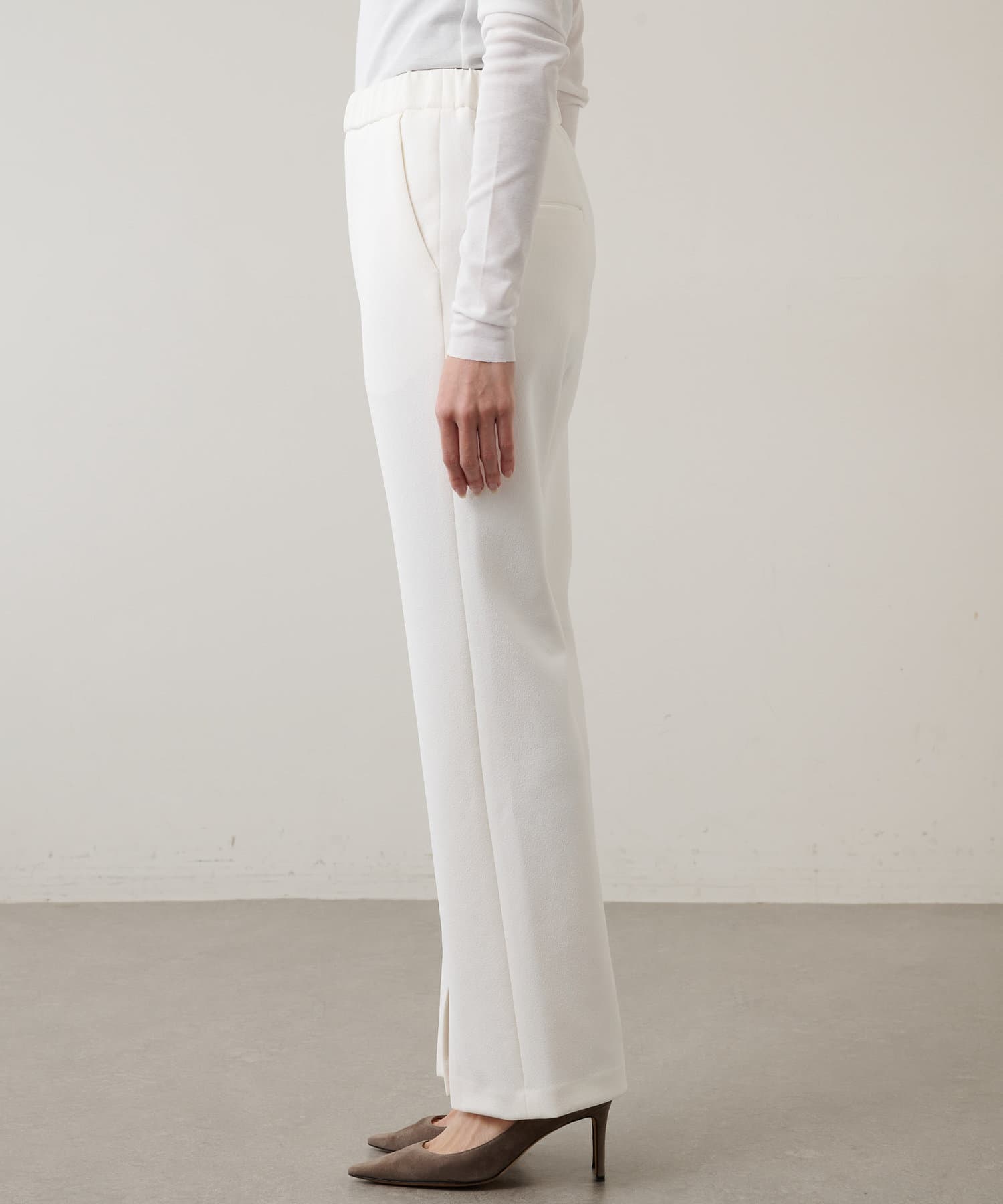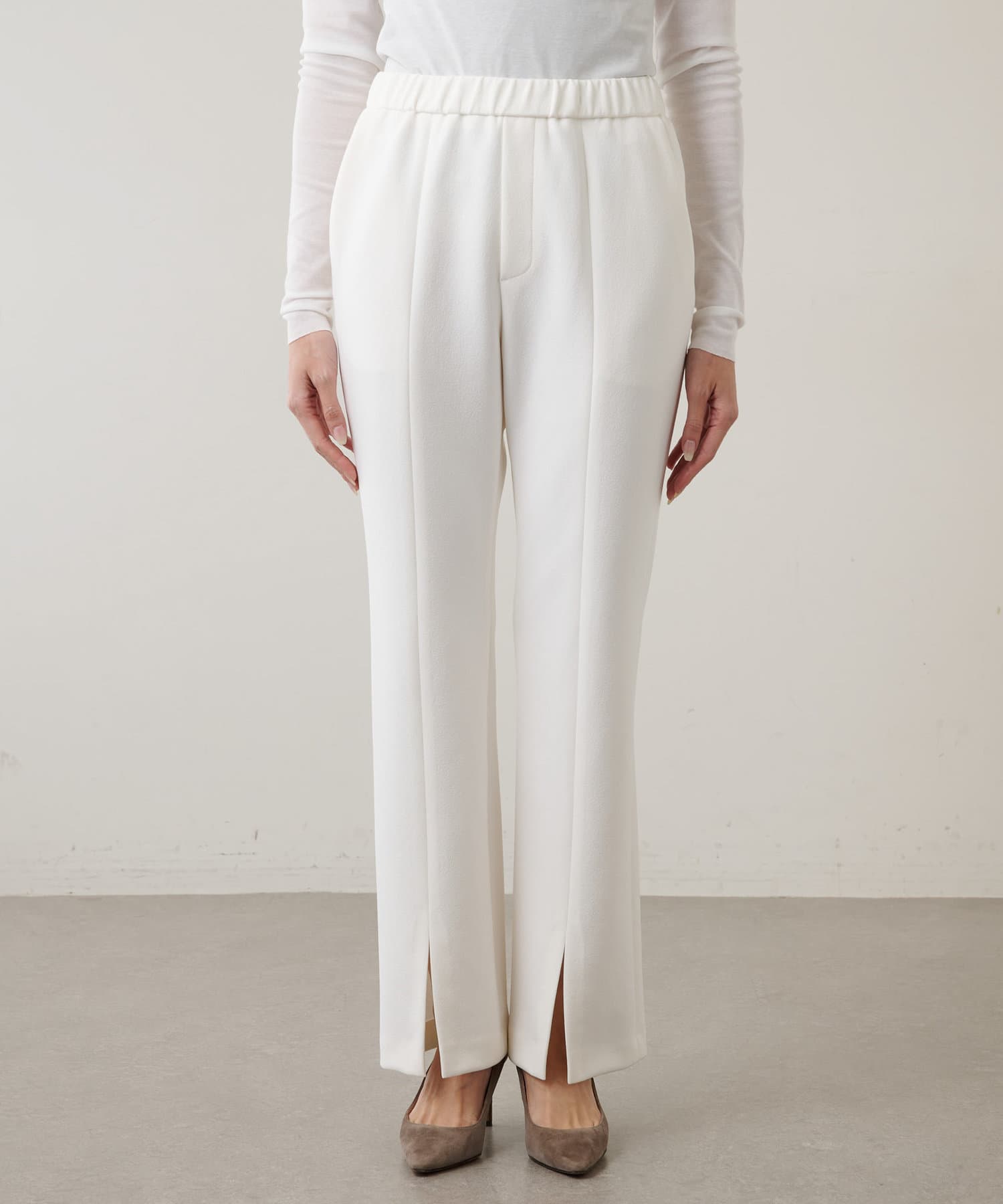 リラクシーな履き心地と美脚効果を兼ね備えたスリットパンツ