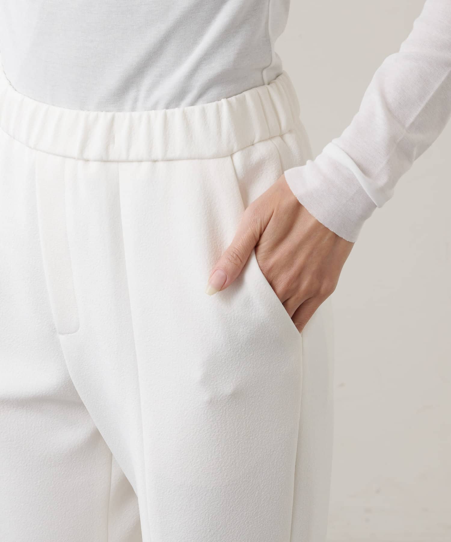 オフホワイト:装いが軽やかに仕上がるクリーンなオフホワイト。