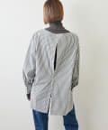 ■バックに大胆に入れたスリット開きのディテールや、前後差を付けた裾のデザインもポイントに。