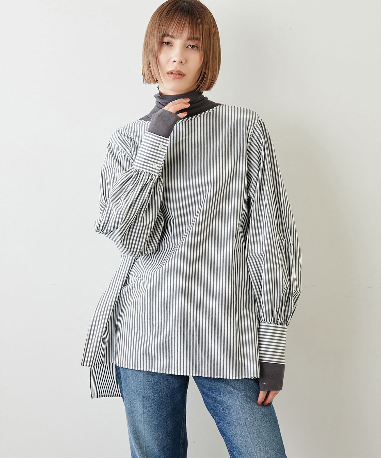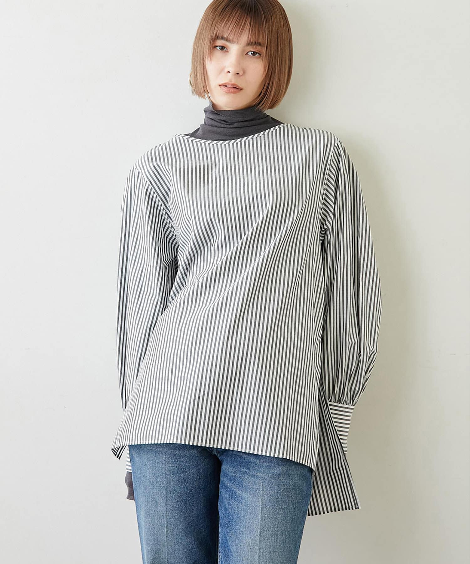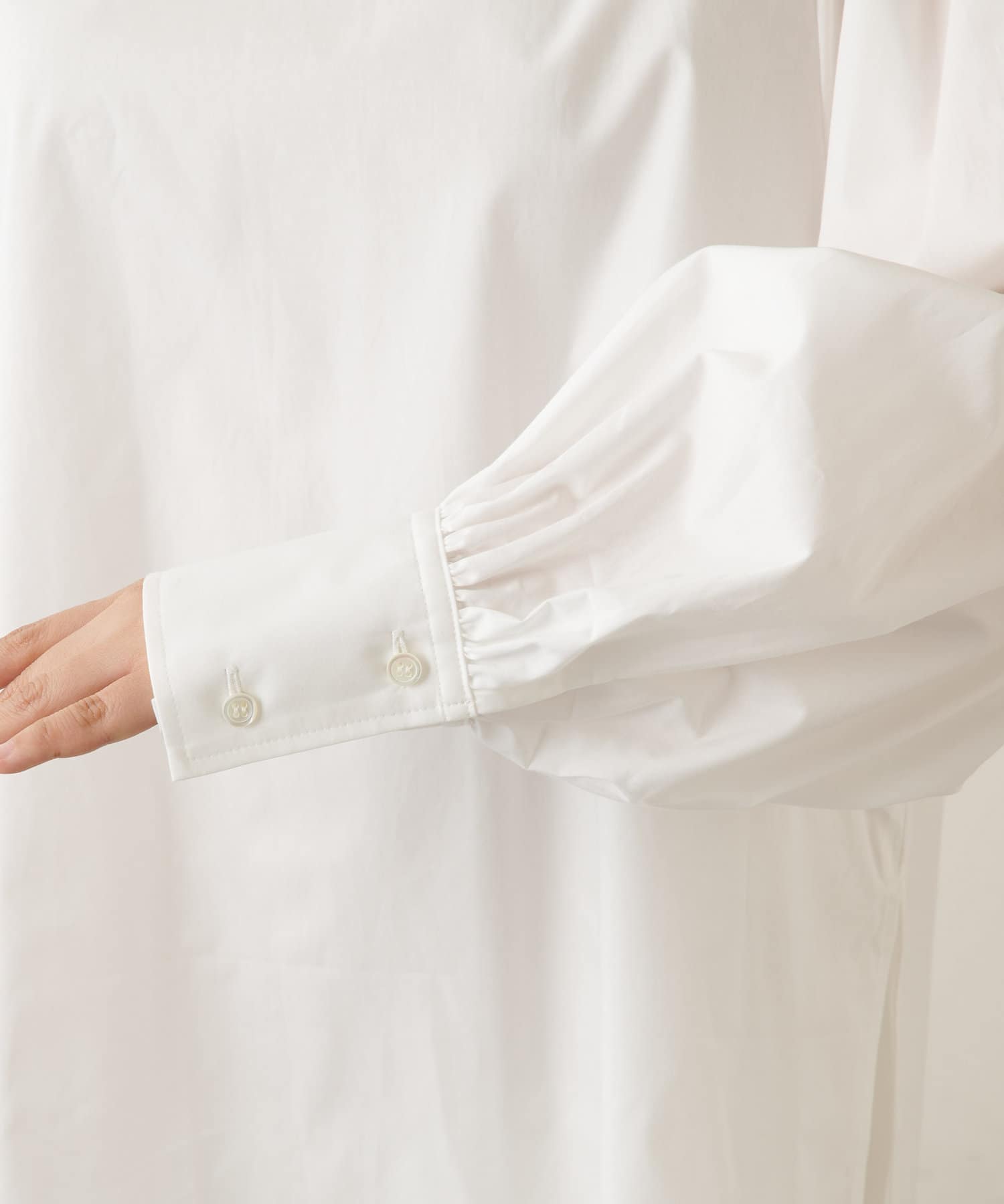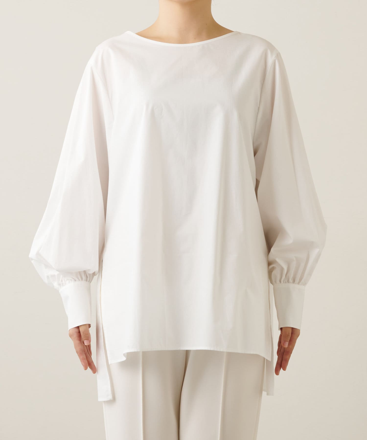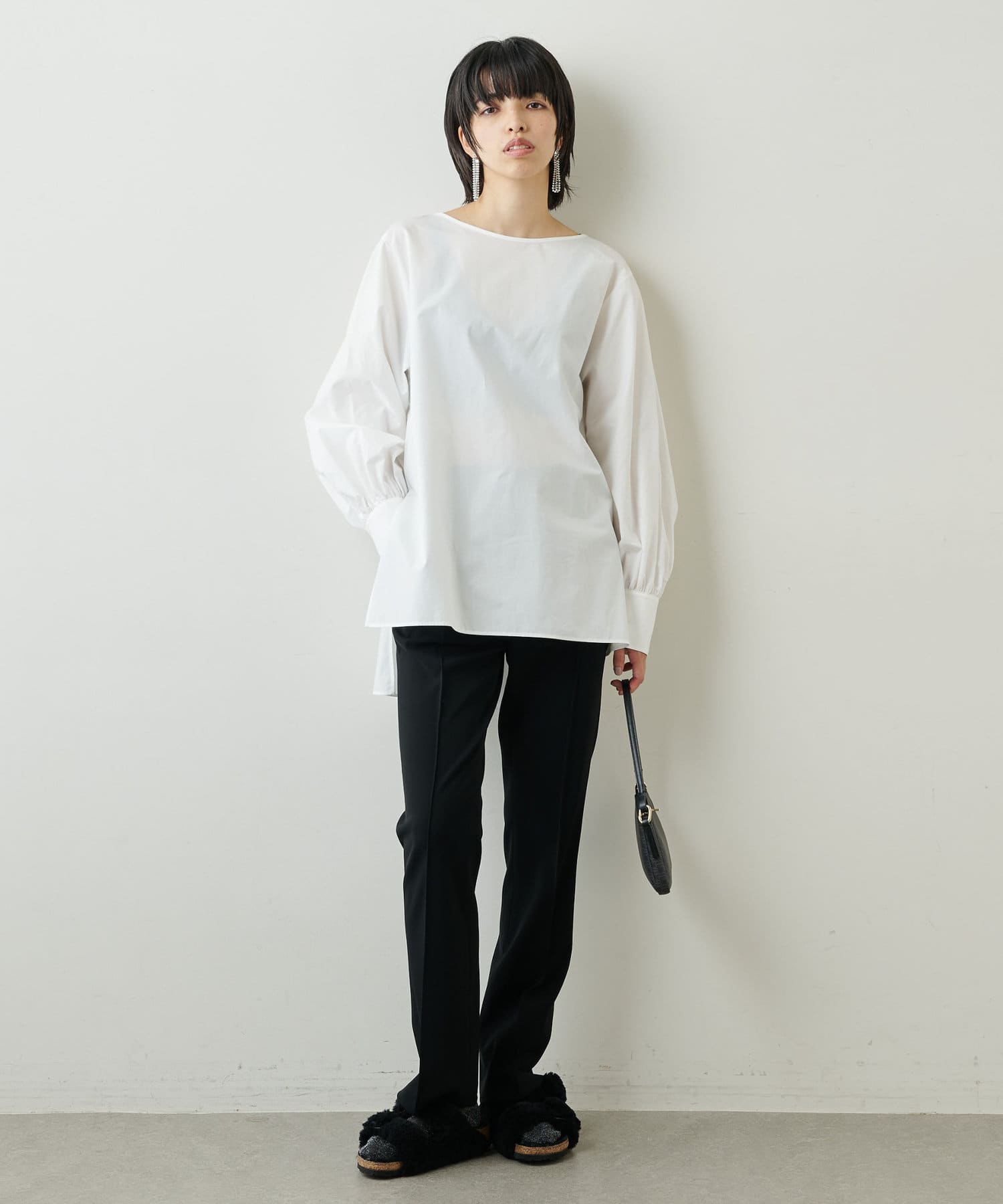 ■シンプルな身頃のシルエットに、袖口にたっぷり施したギャザーのふんわりとしたボリューム感が女性らしい印象。