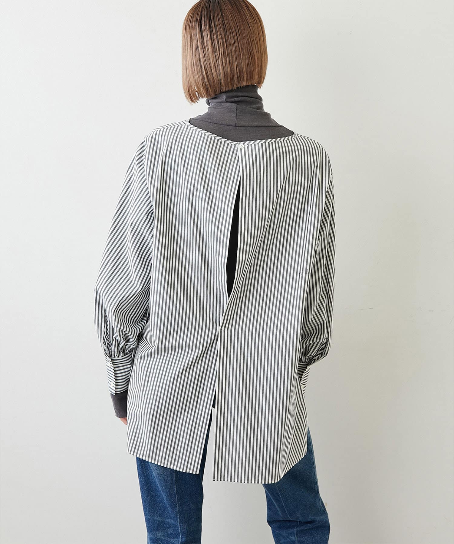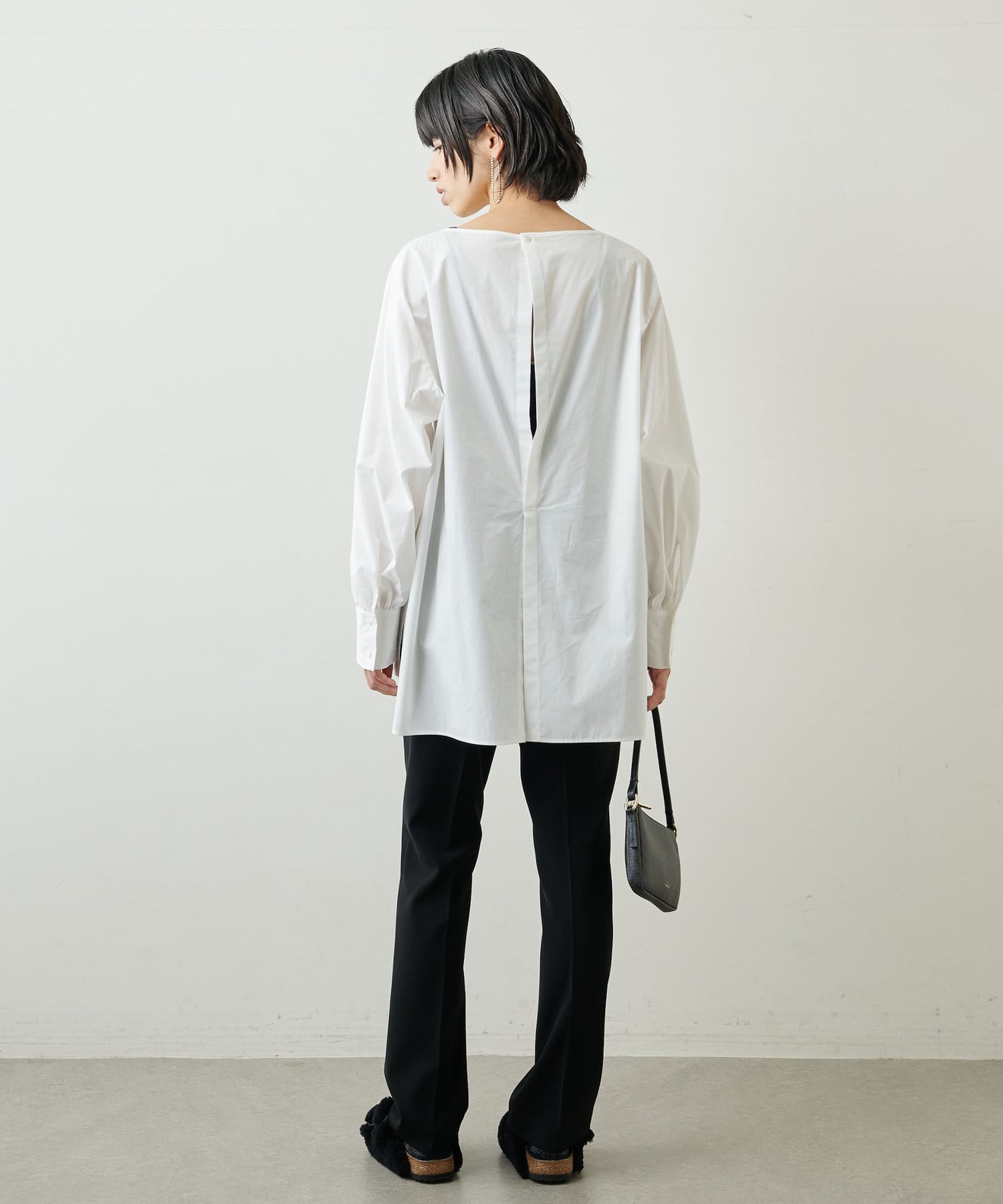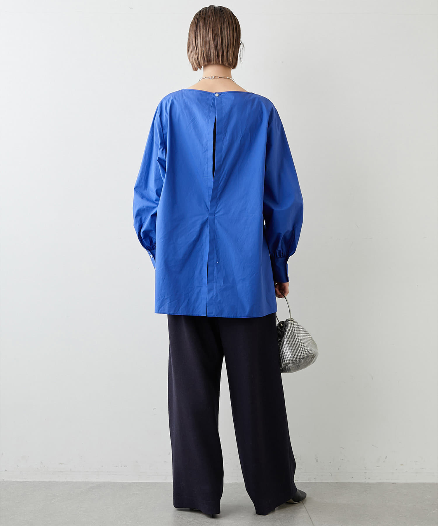 ■バッグスリットデザインがポイントになったクルーネックブラウス。