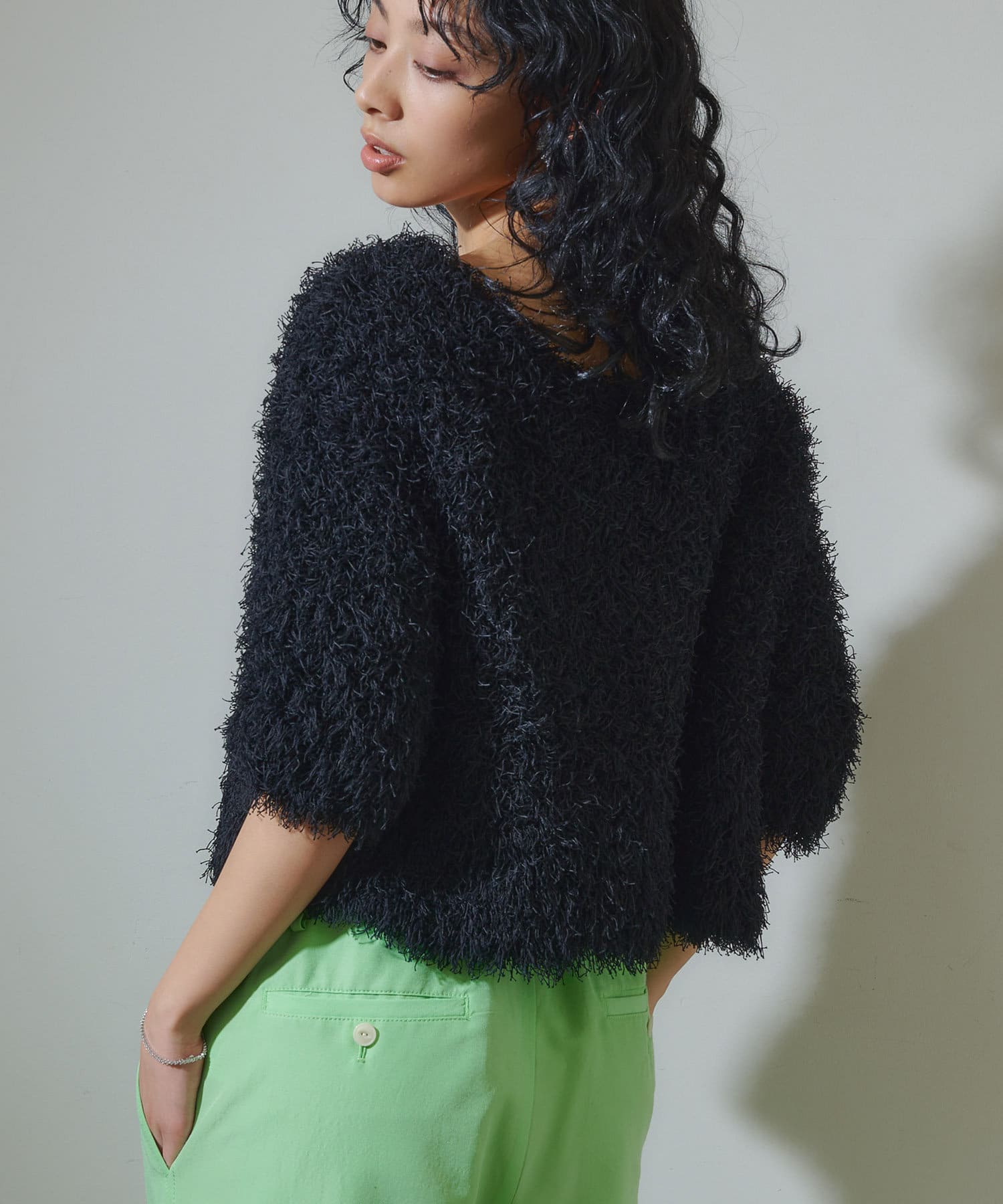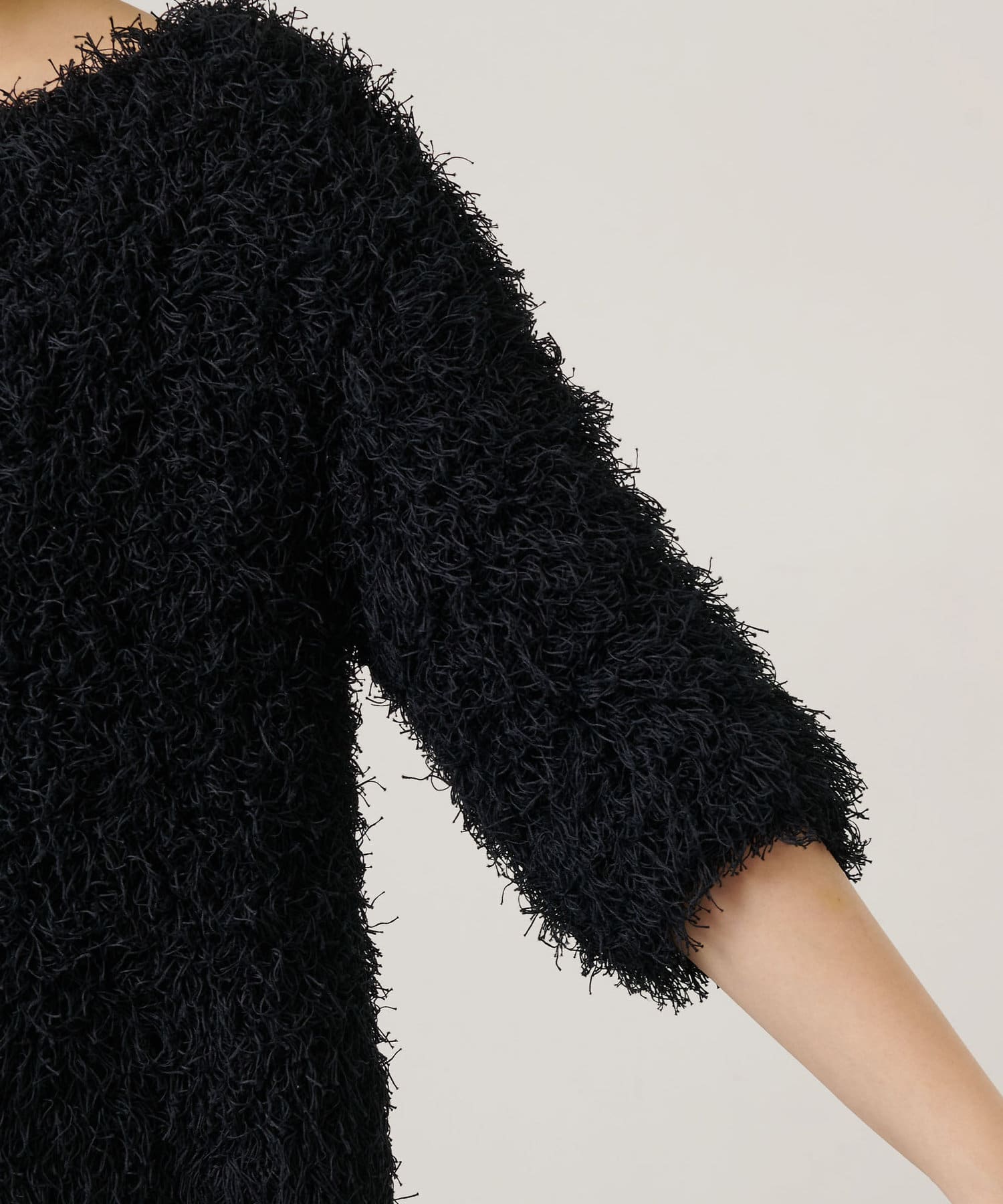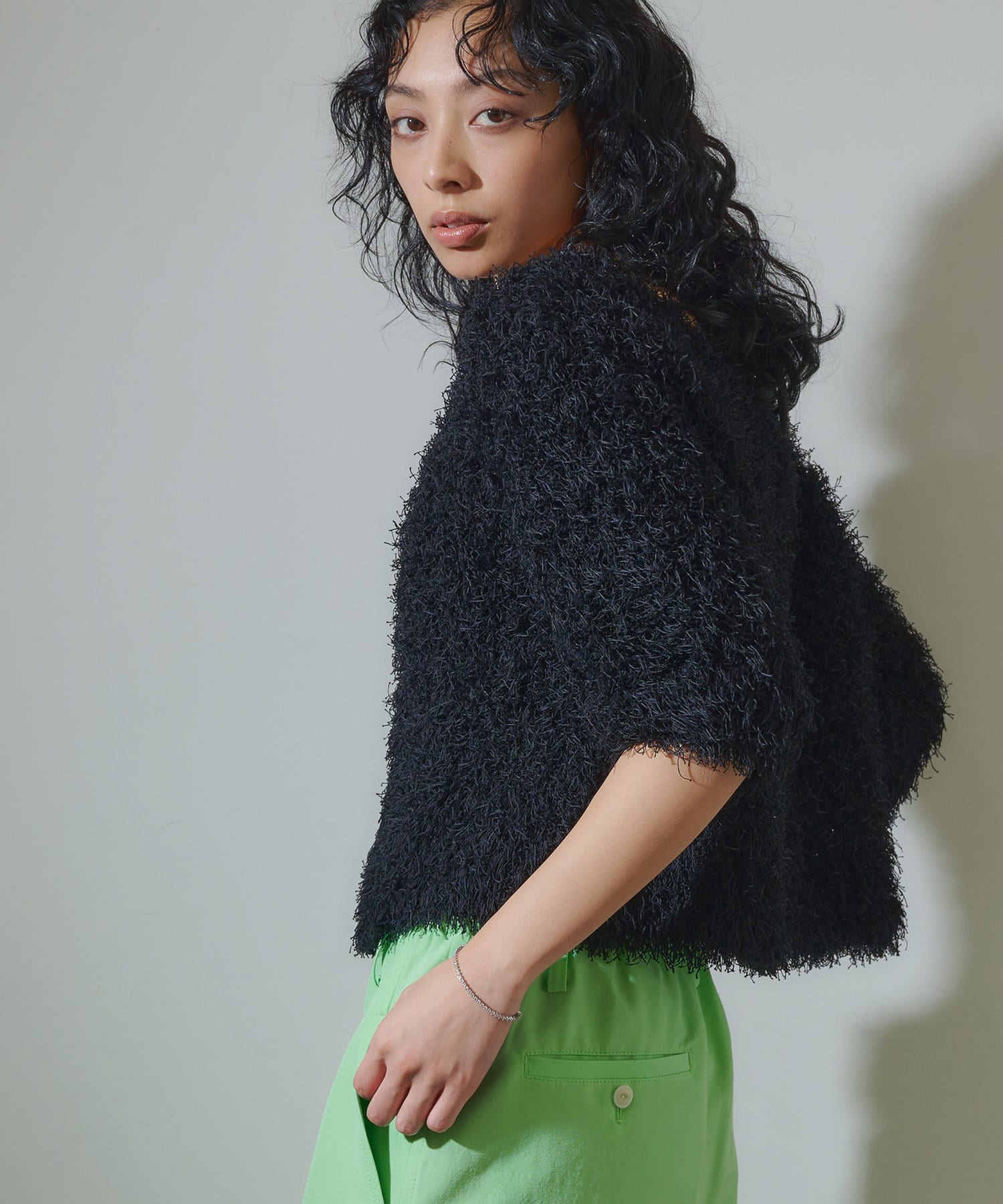 ギマ加工したコットン糸を使ってモール状にブランドオリジナルで1から作ったファンシーヤーンを使用。