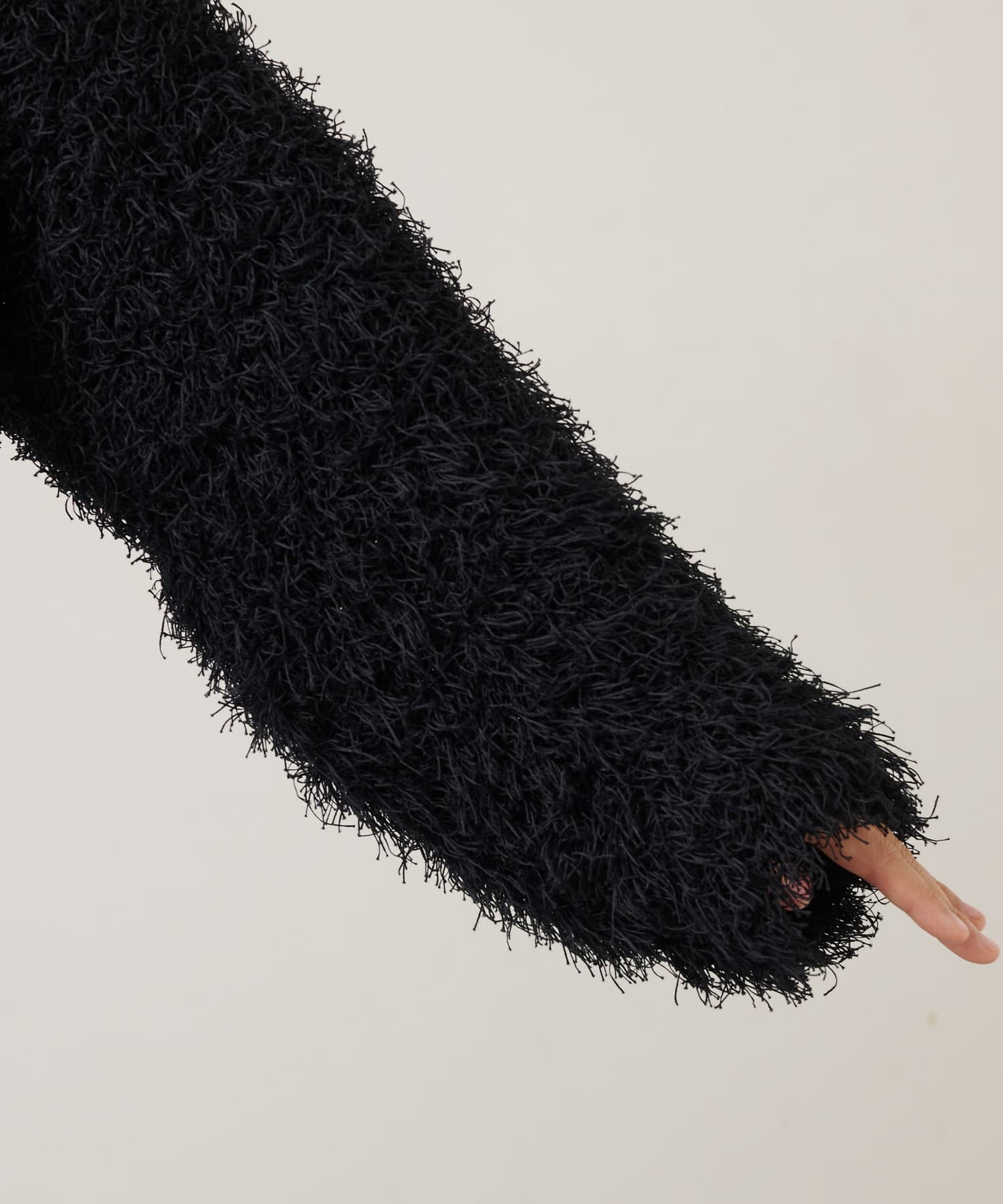 ギマ加工したコットン糸を使ってモール状にブランドオリジナルで1から作ったファンシーヤーンを使用。