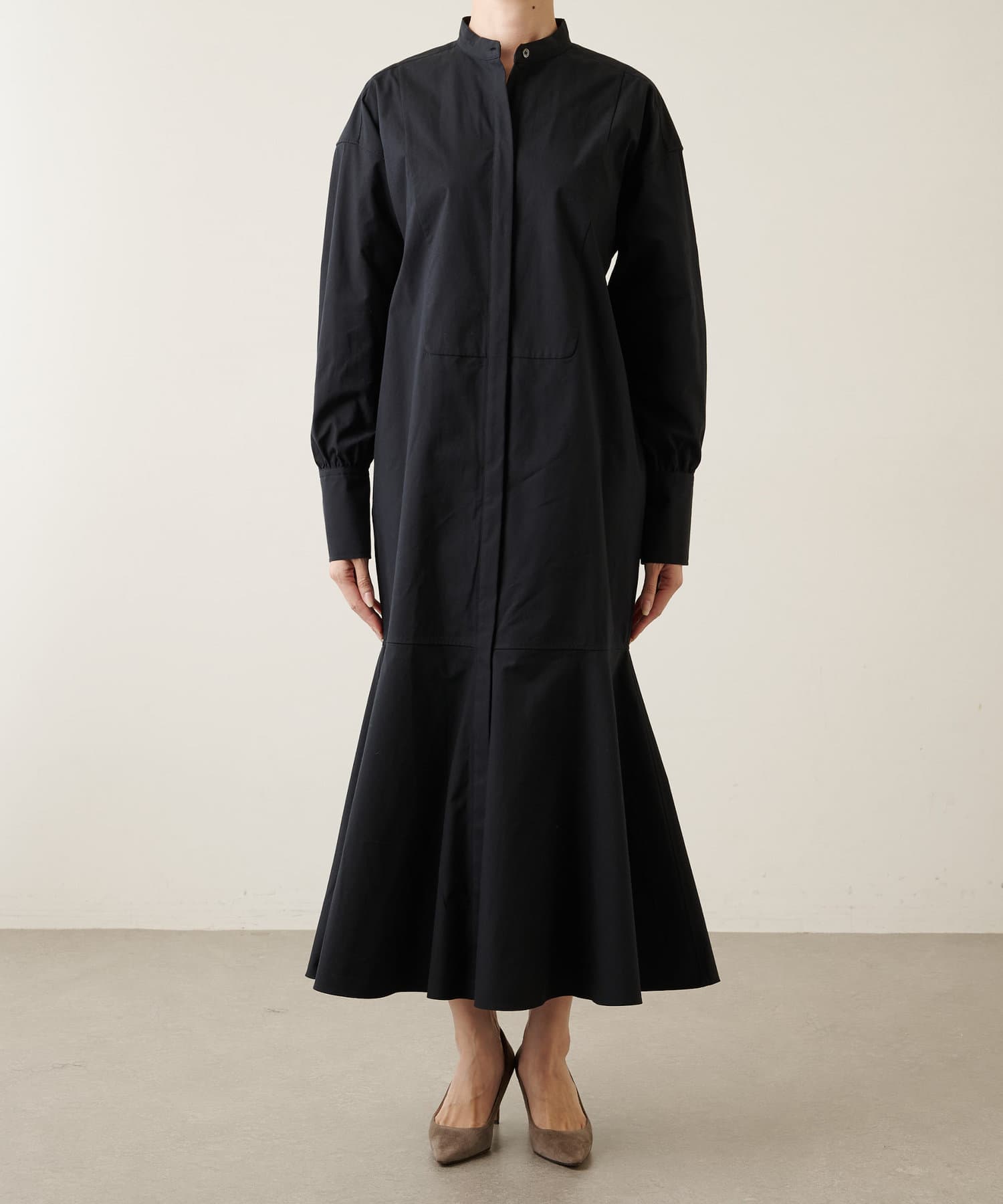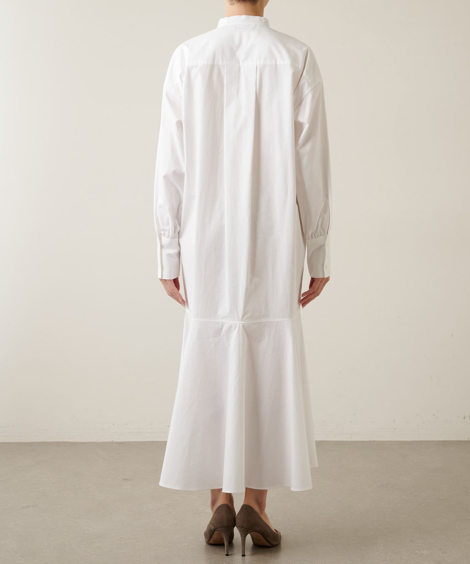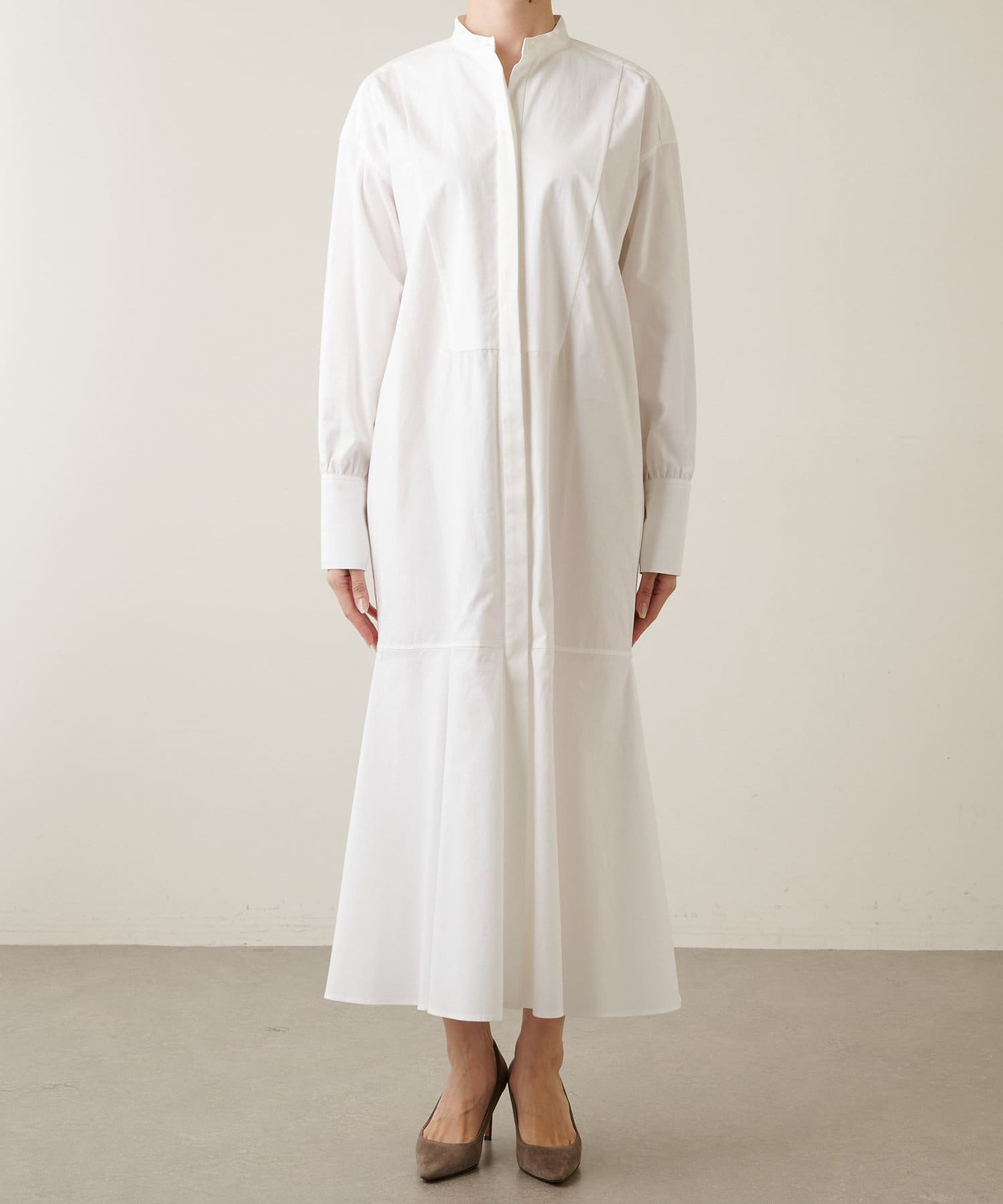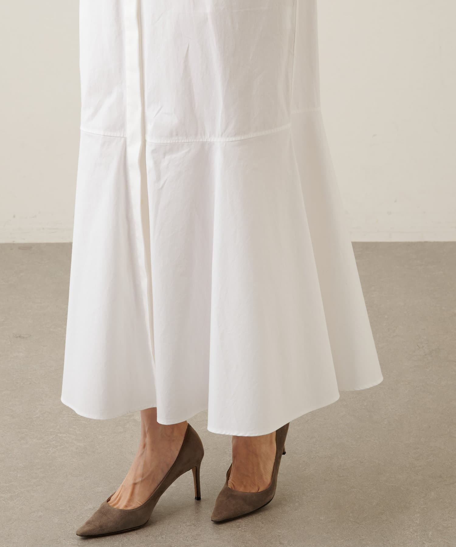 ■端正なバンドカラーのシャツディテールと、マーメイドの女性らしいムードが好バランスな一着。