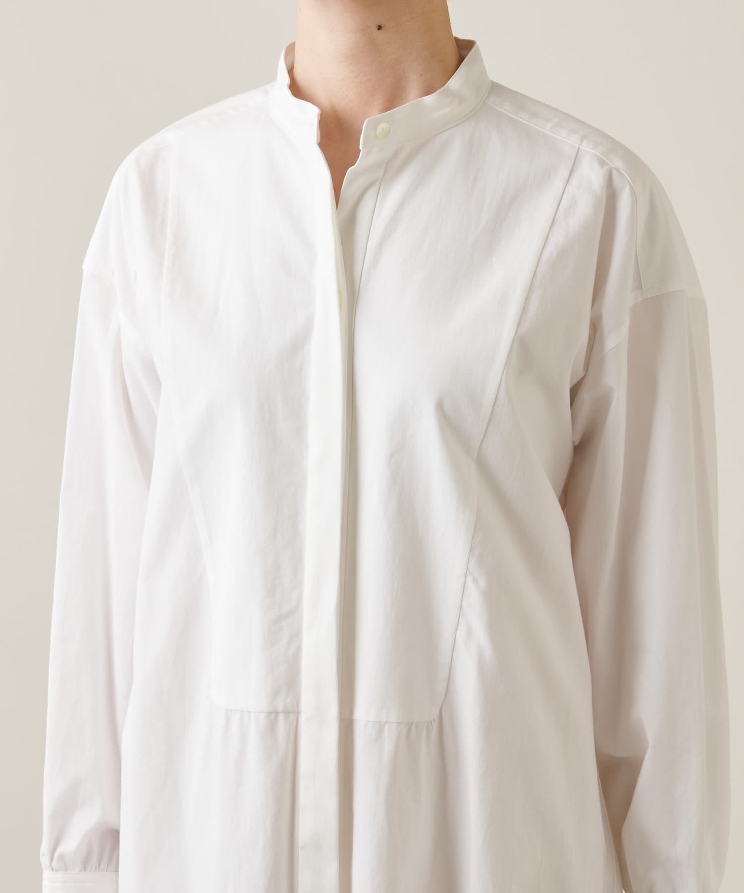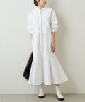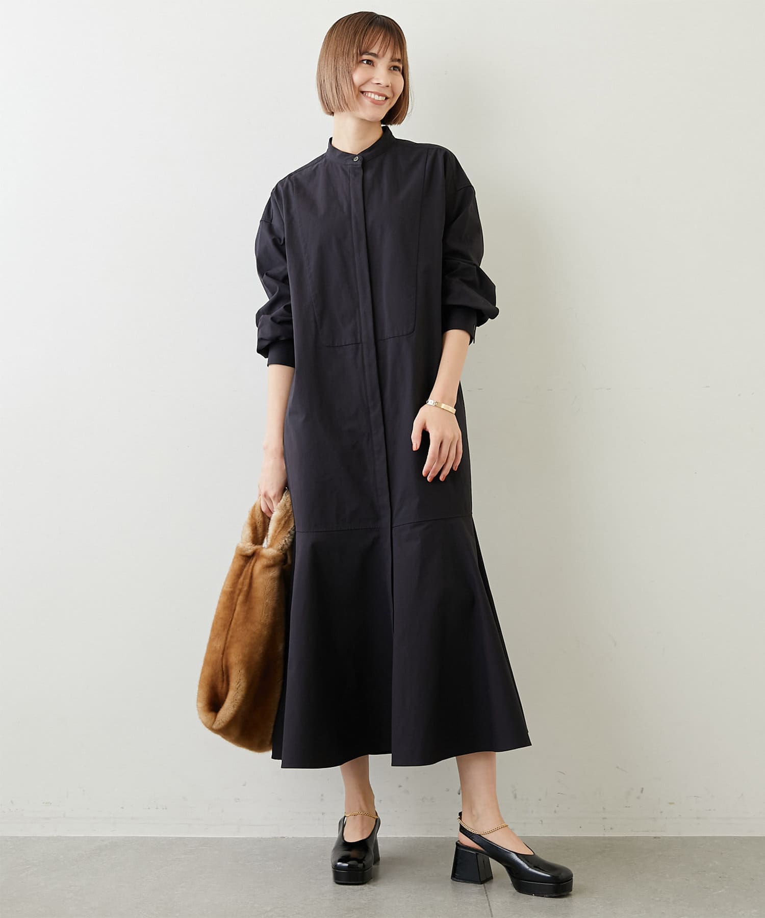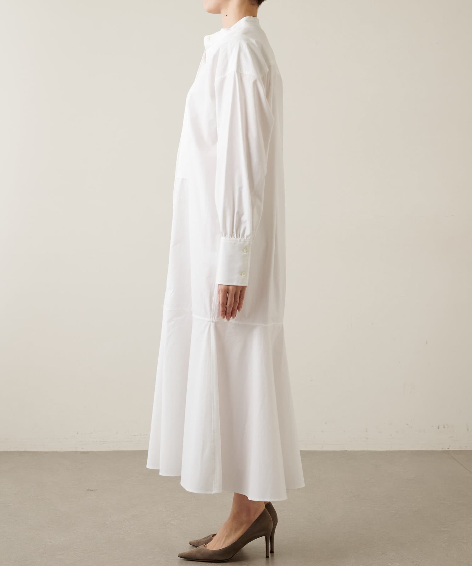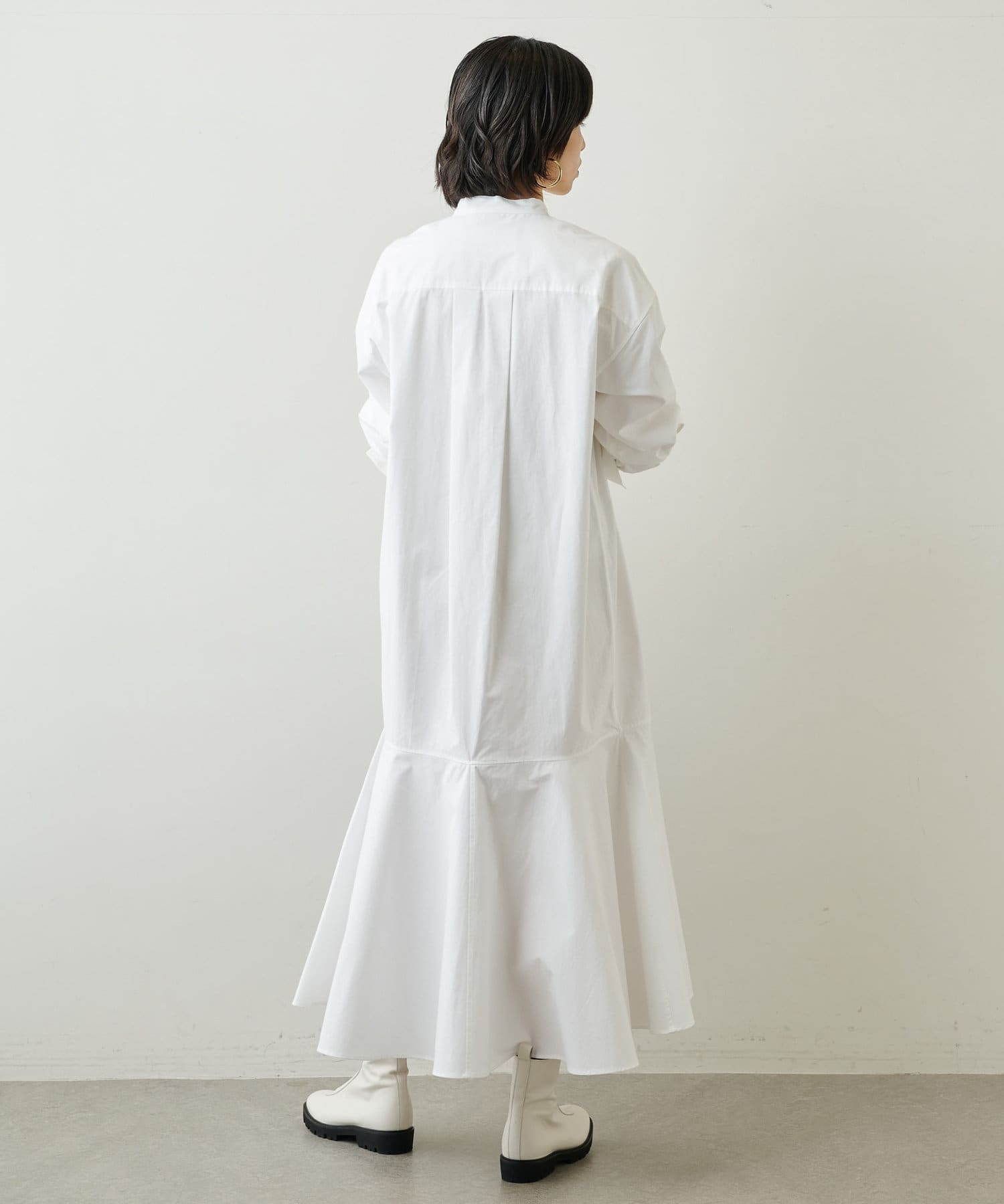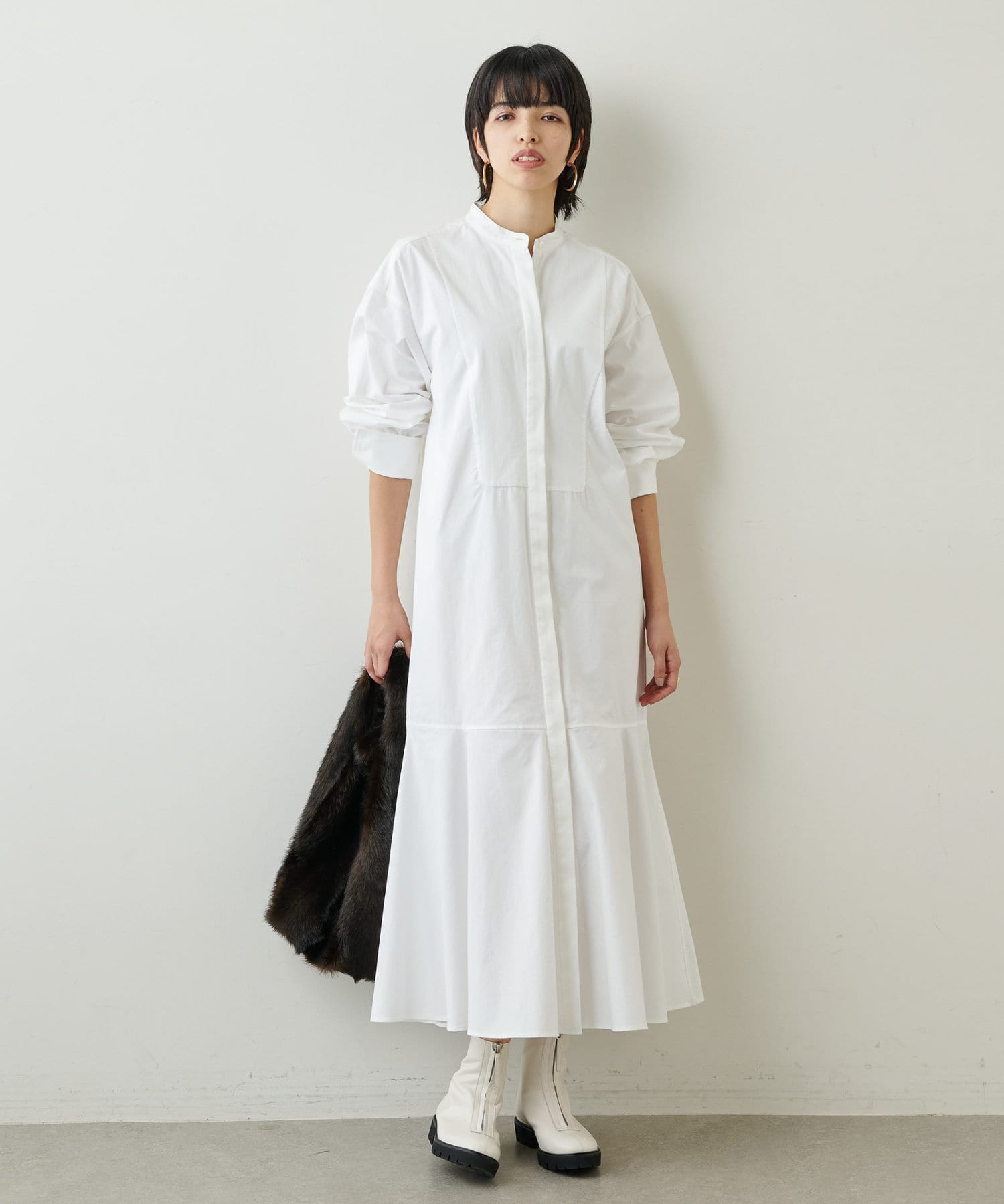 ■端正なバンドカラーのシャツディテールと、マーメイドの女性らしいムードが好バランスな一着。