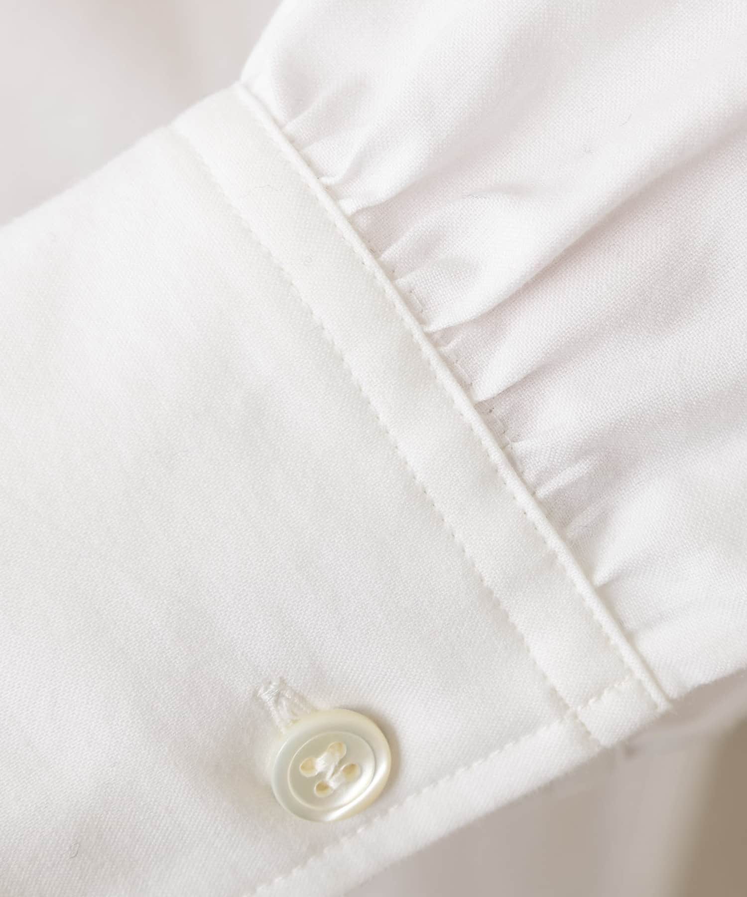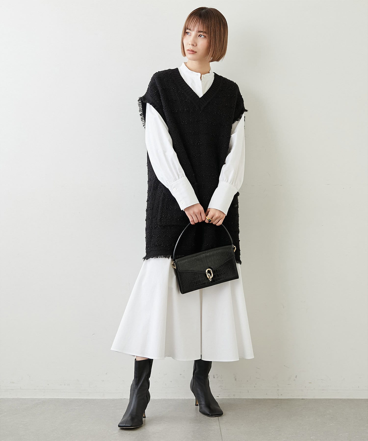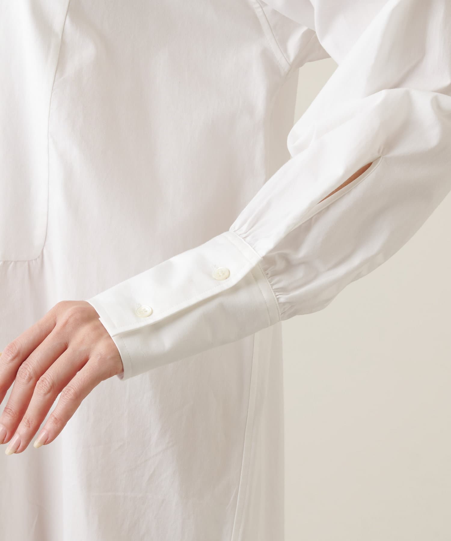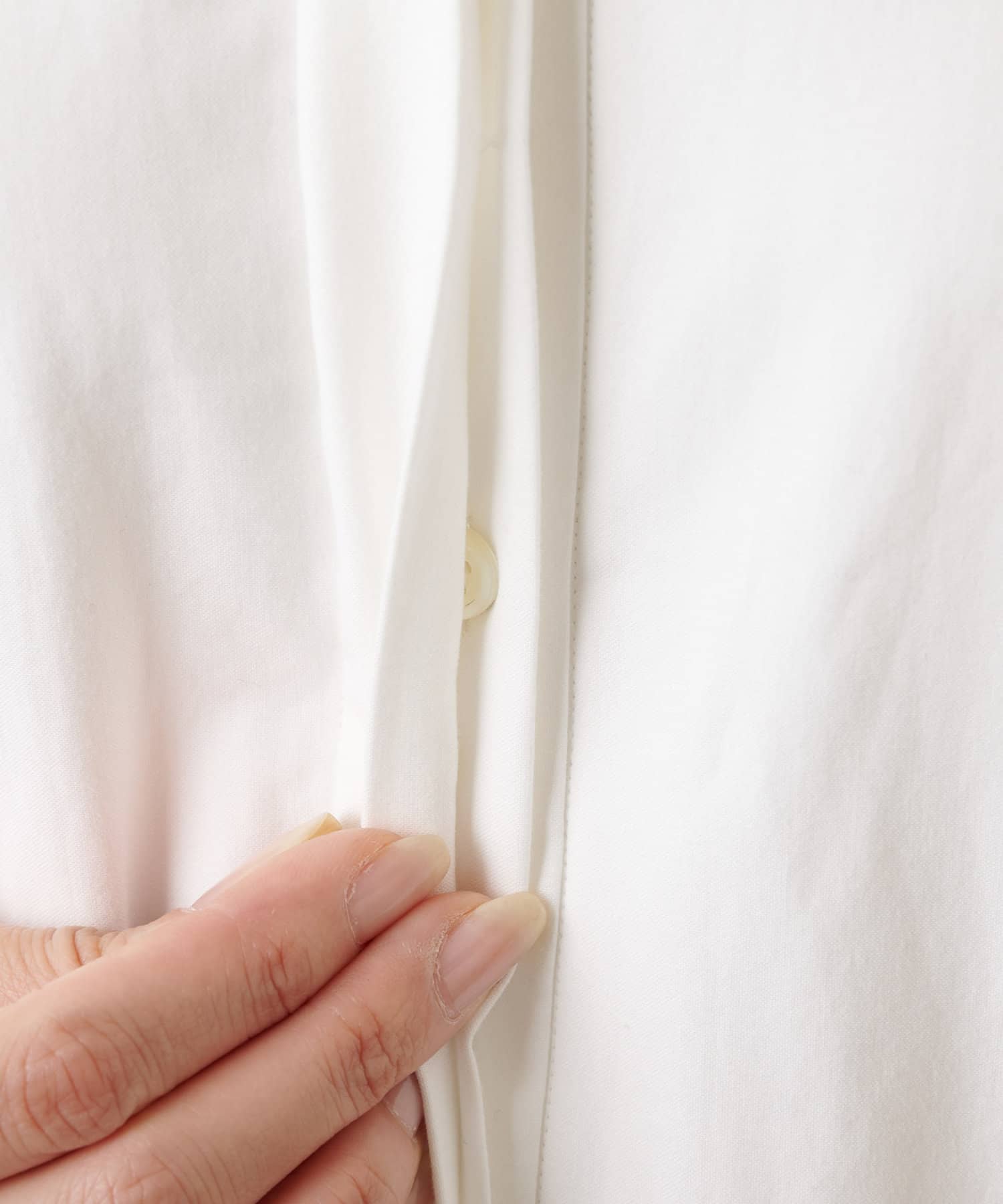 ■端正なバンドカラーのシャツディテールと、マーメイドの女性らしいムードが好バランスな一着。