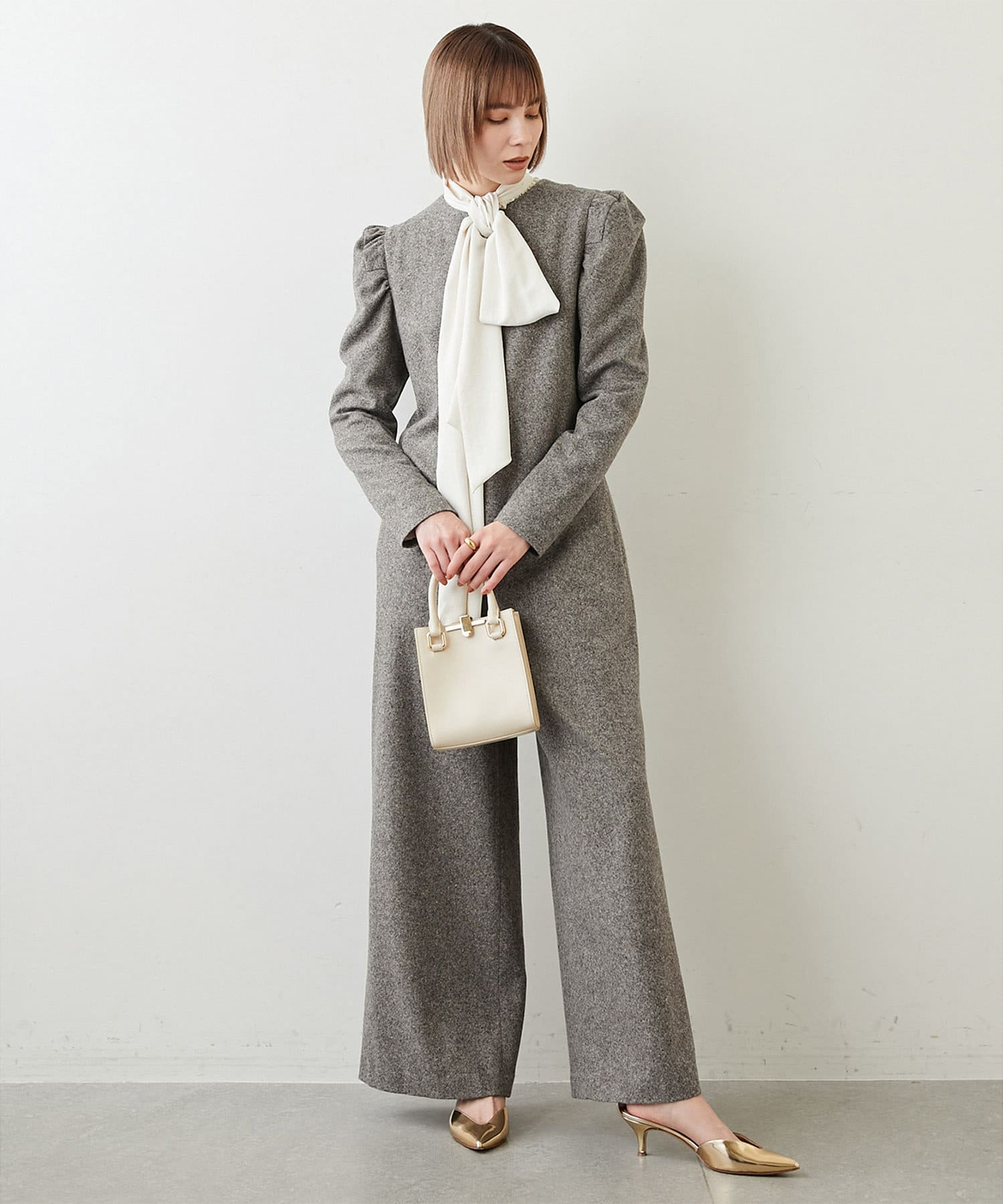 ■一枚で楽しむのはもちろん、ボウタイブラウスやコンパクトなタートルネックトップスとのレイヤードスタイルも◎。