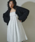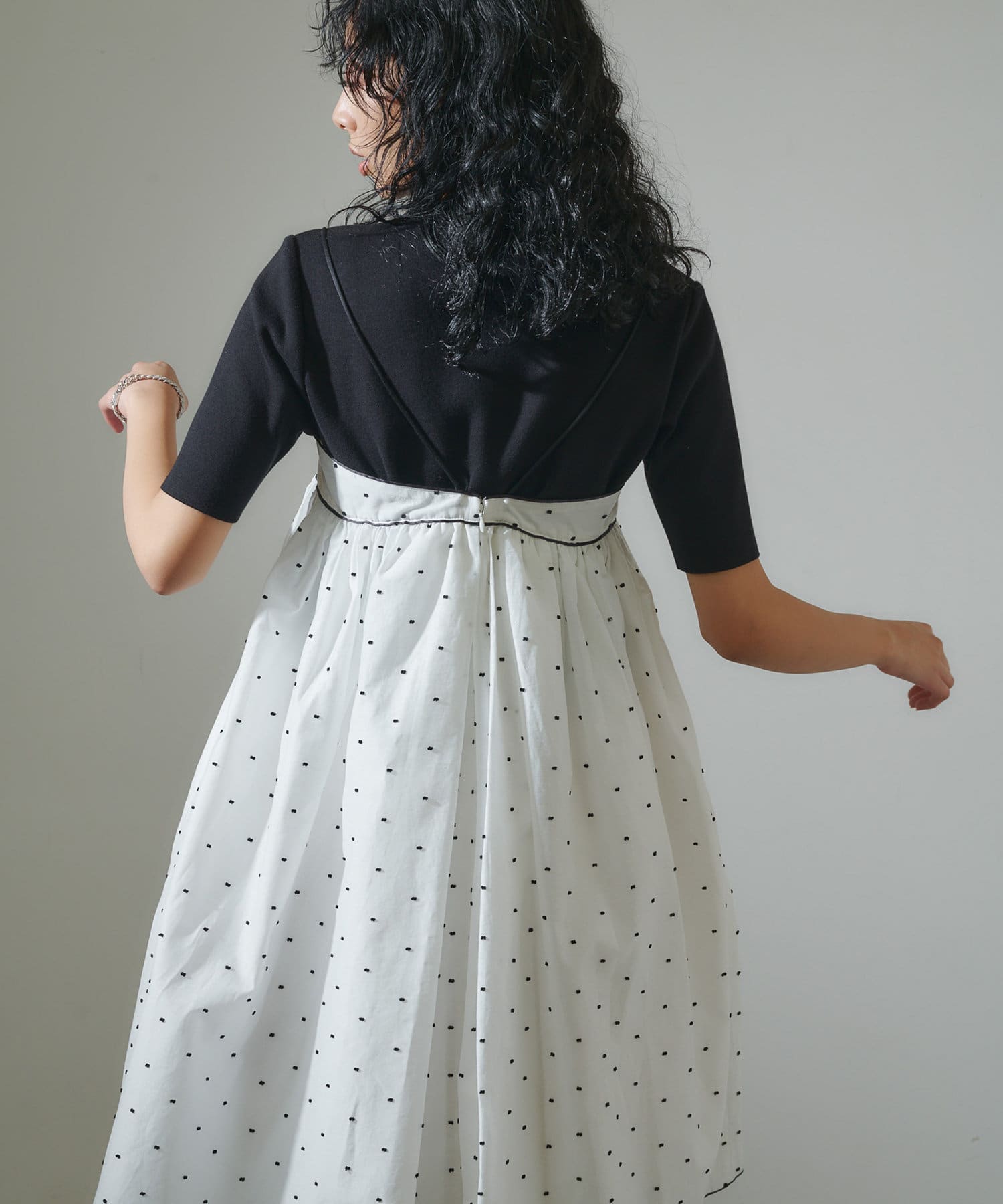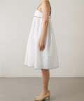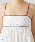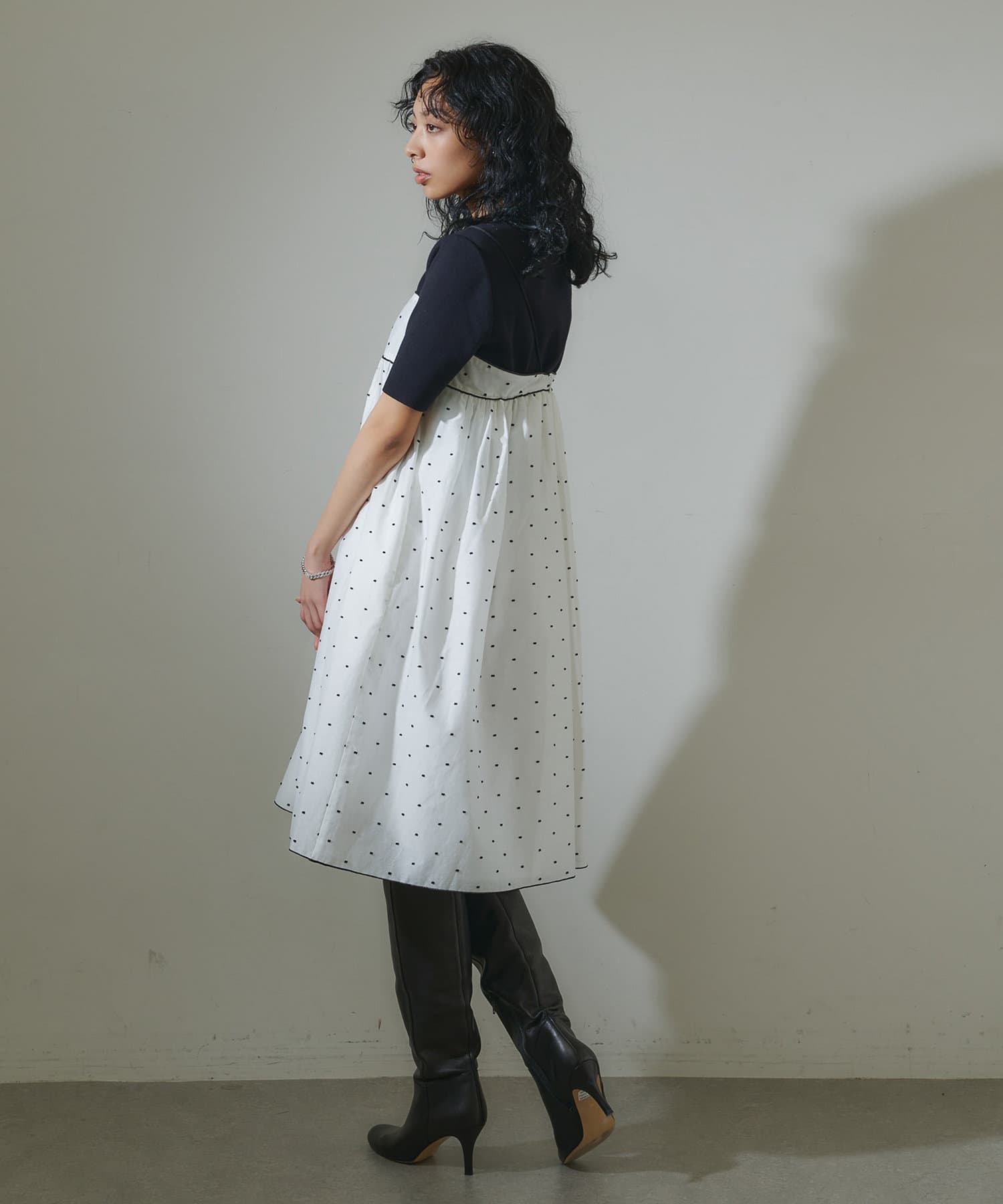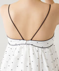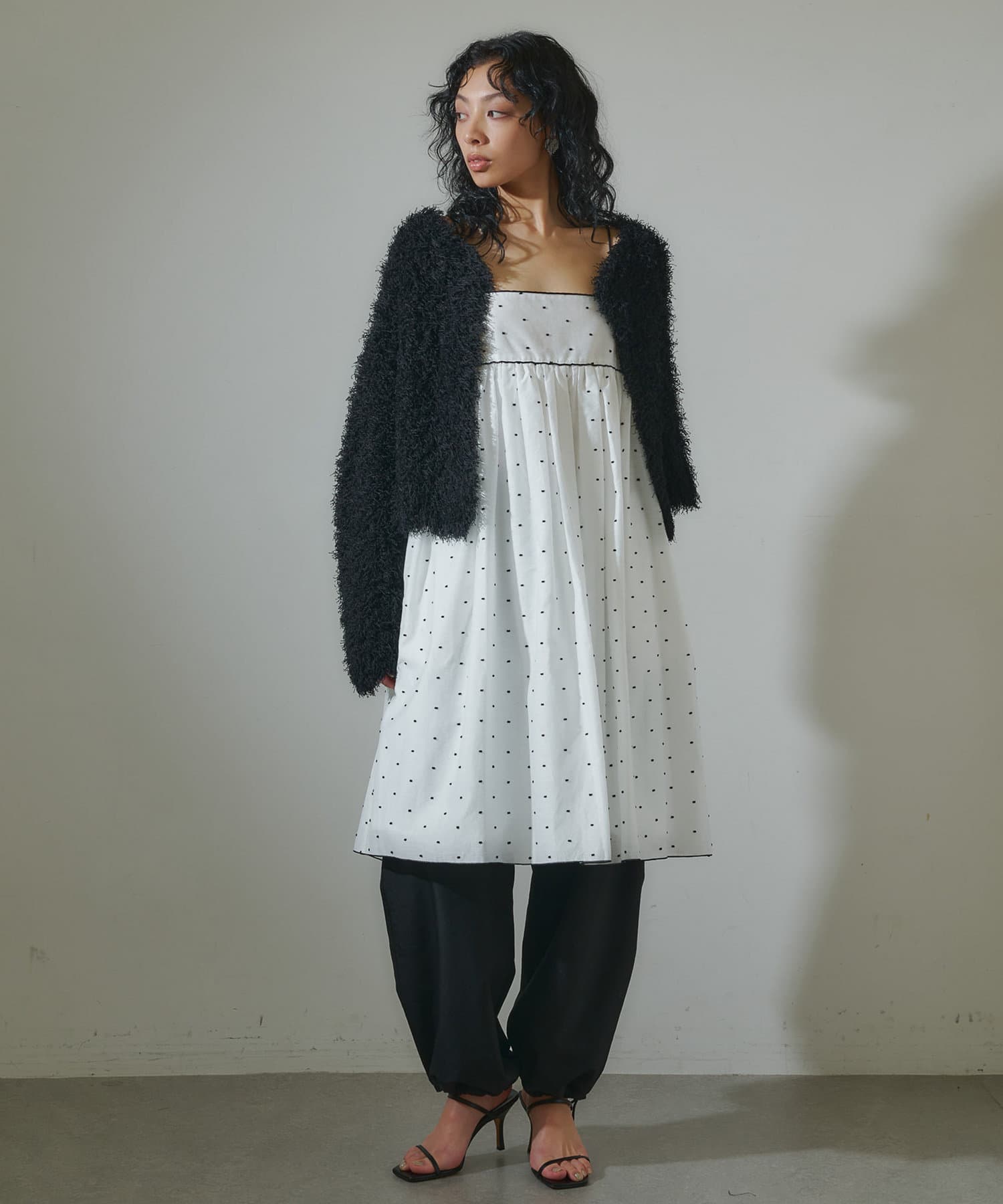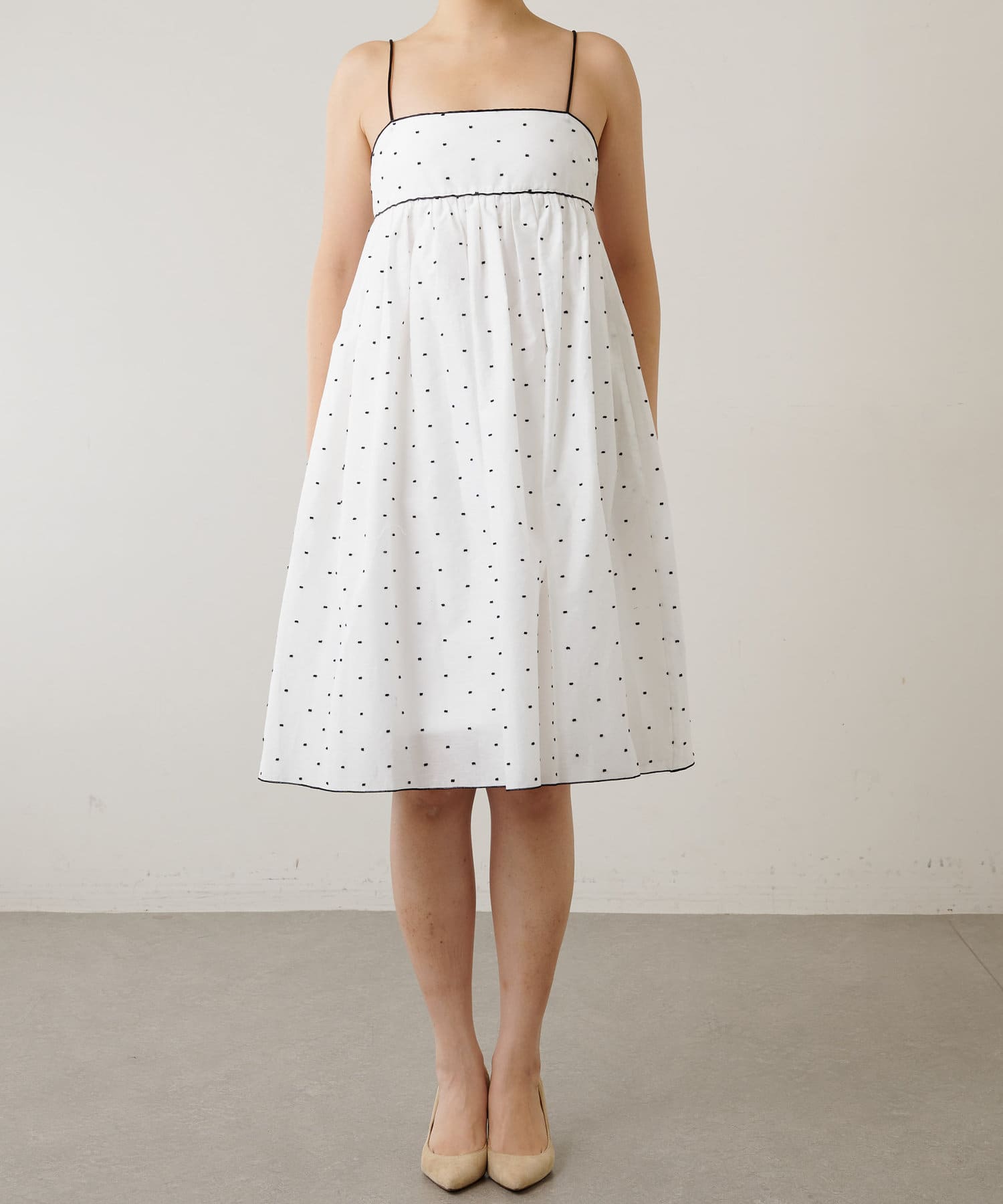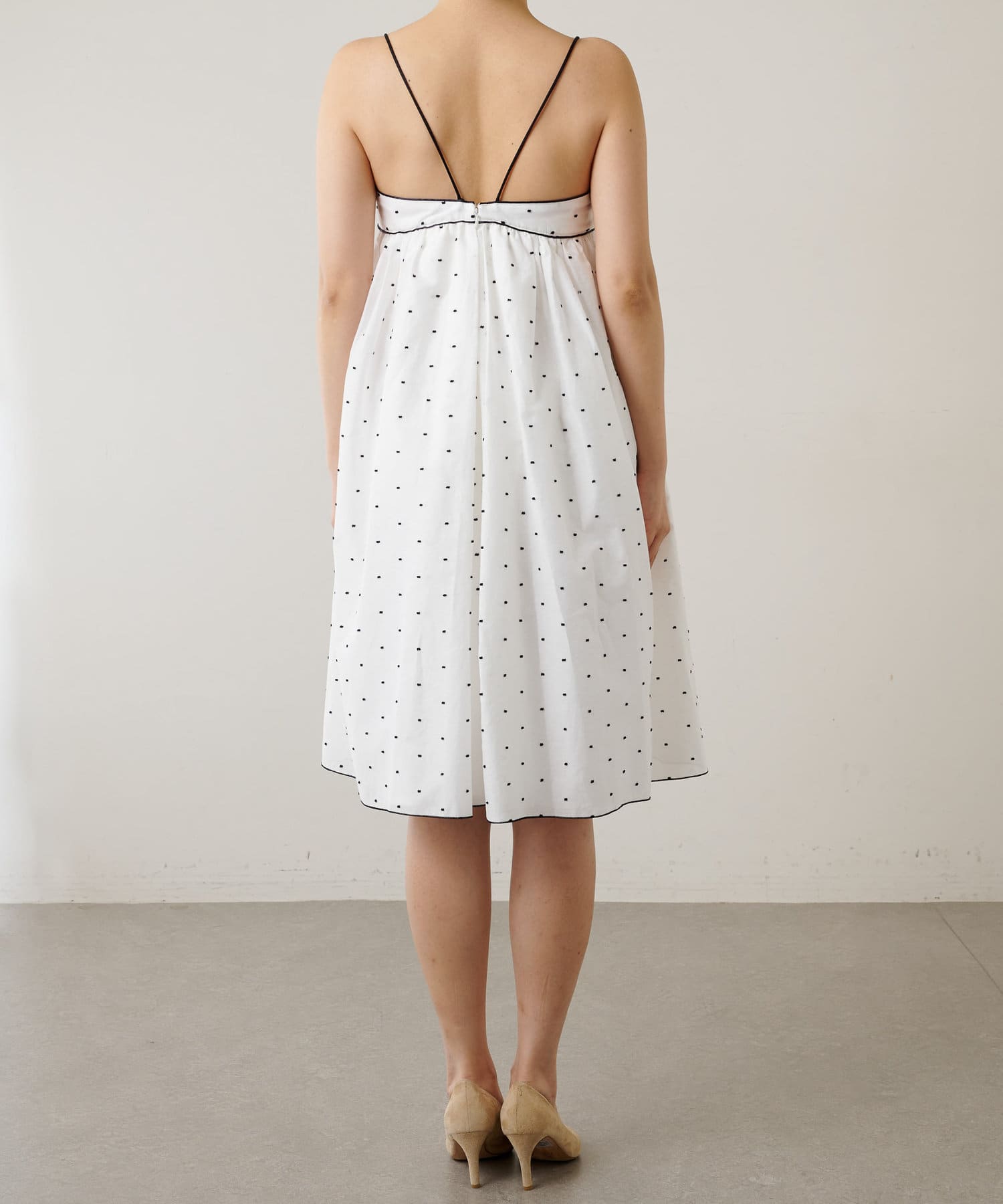 ■ドット柄を表現したオリジナル素材で仕立てたキャミソールワンピース。