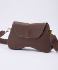 ■ユニークなフォルムが印象的なレザーショルダーバッグ。