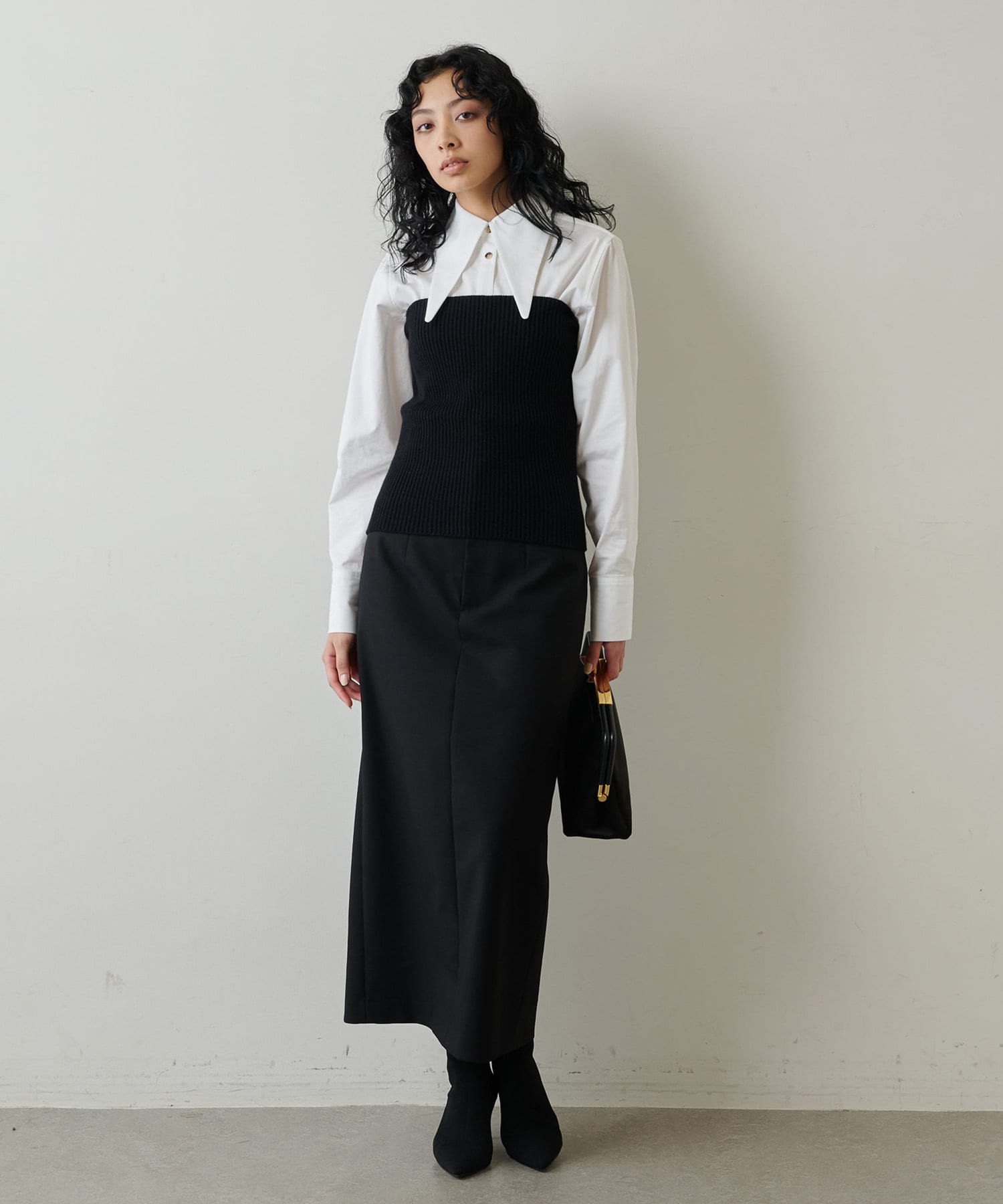 ■かなり高めのウエスト位置が脚長効果抜群のモードなロングスカート。