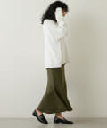 ■膝上あたりまでフィットする女性らしいシルエットは、トップスインでもアウトでもバランス良く着用可能。