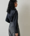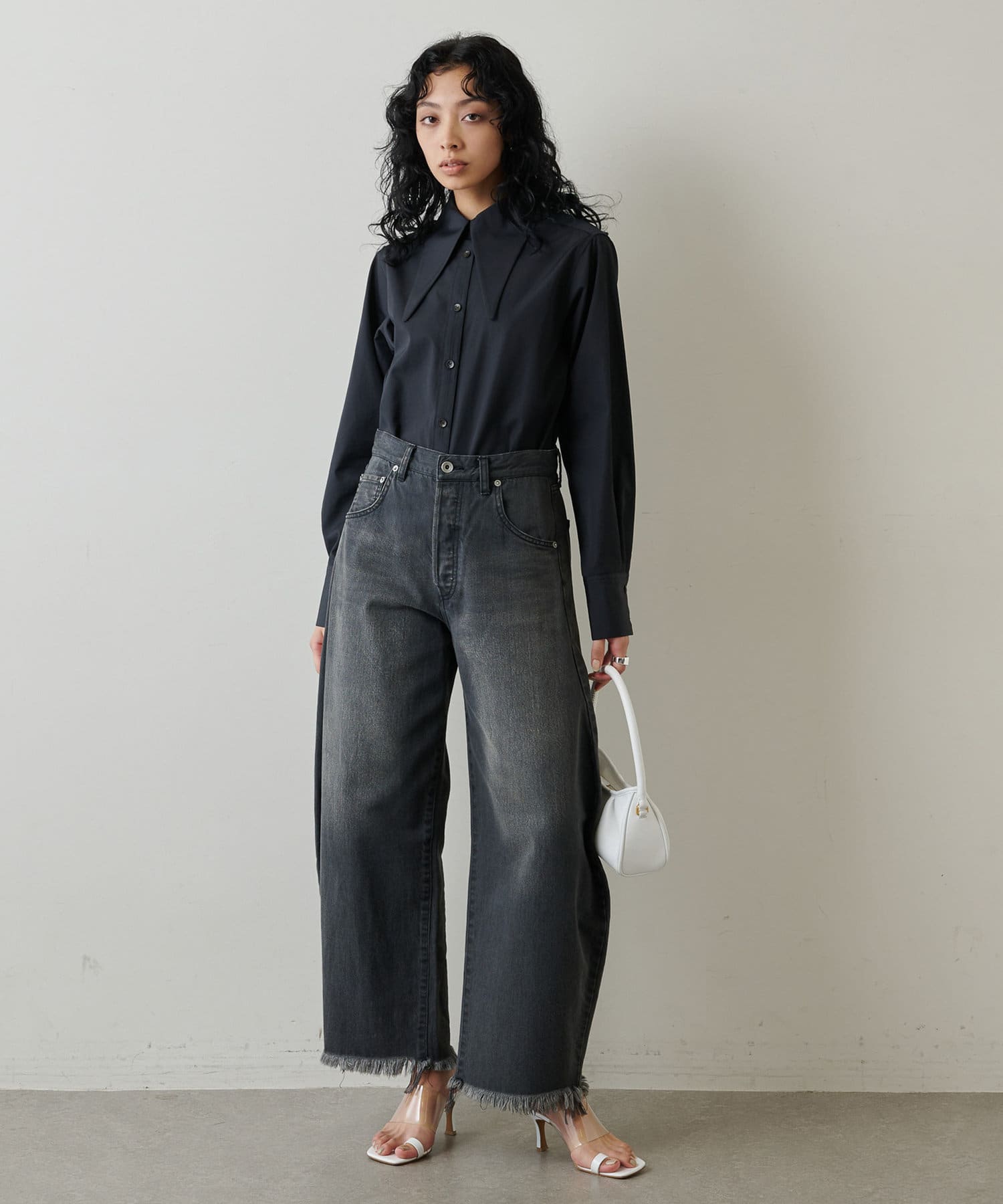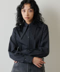 ■シンプルなシルエットに長めの襟が映えるエッジの効いたデザイン。