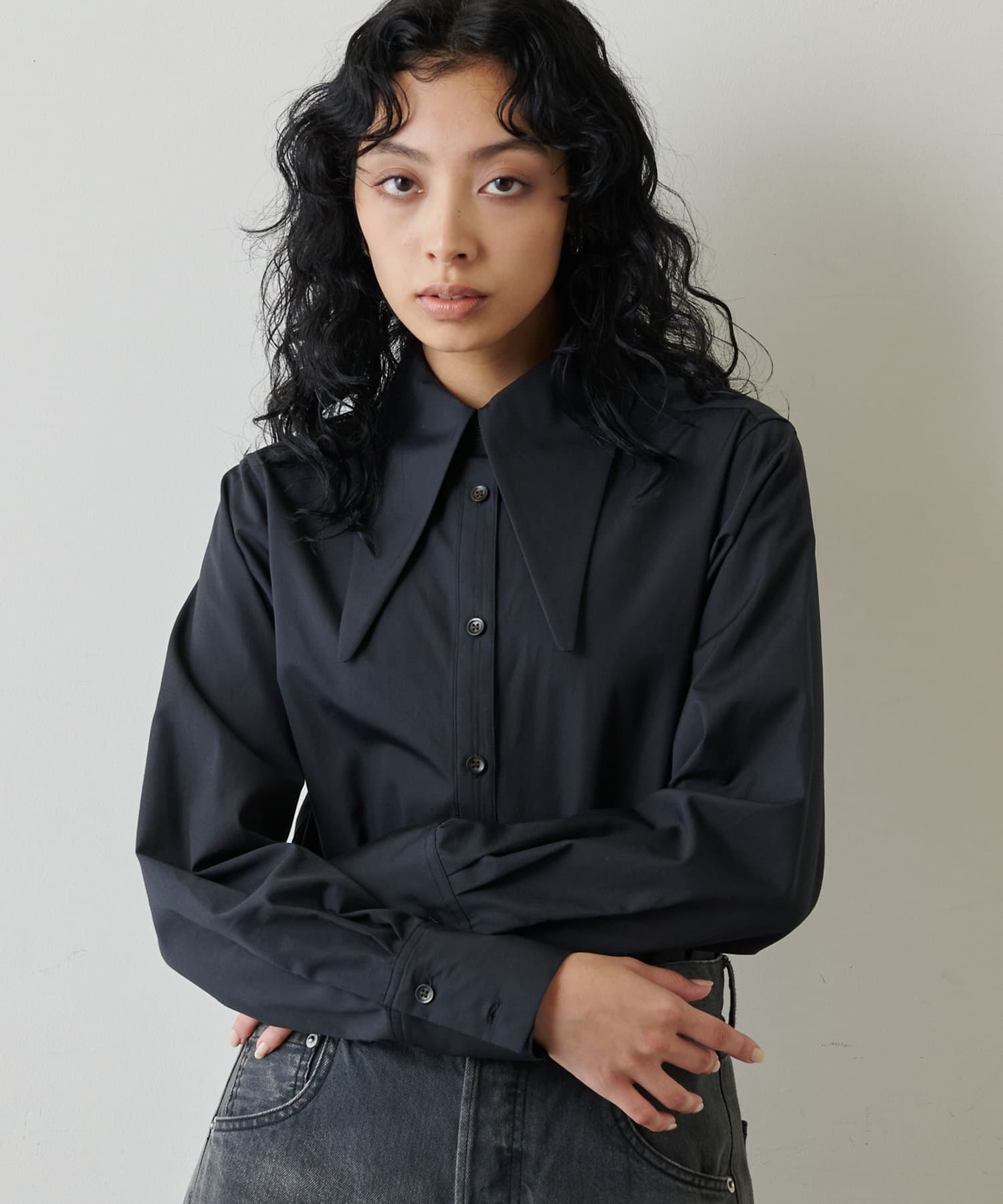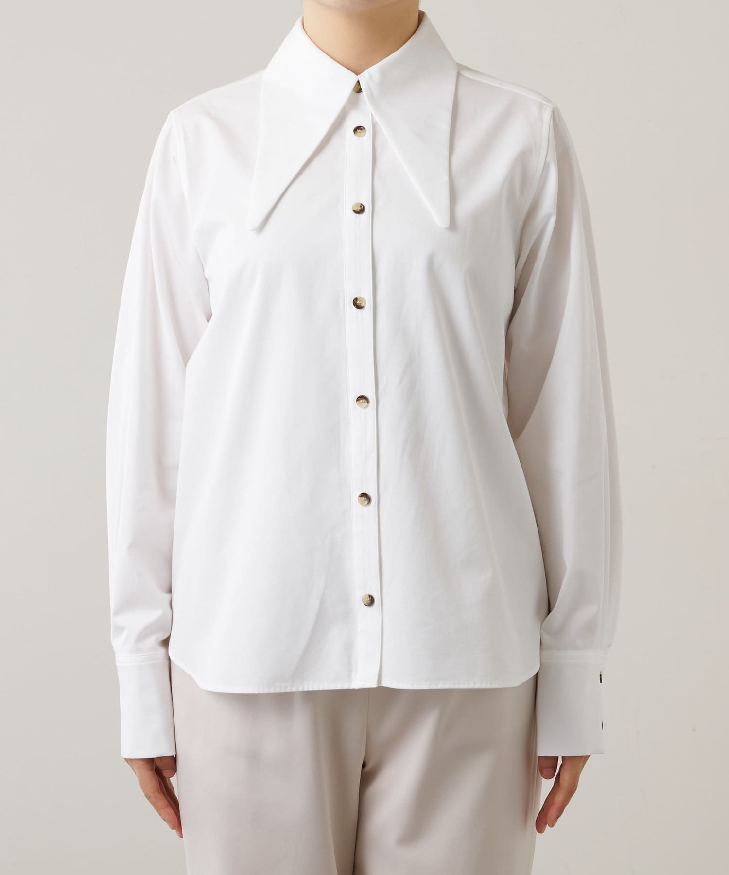 ■個性的な長さを持つ襟先が目を惹くロングポイントカラーシャツ。