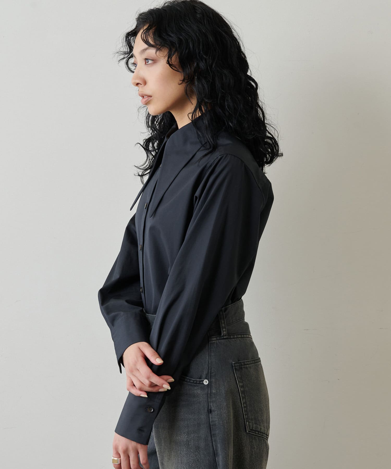 着こなしにシャープな印象をプラスするロングカラーシャツ
