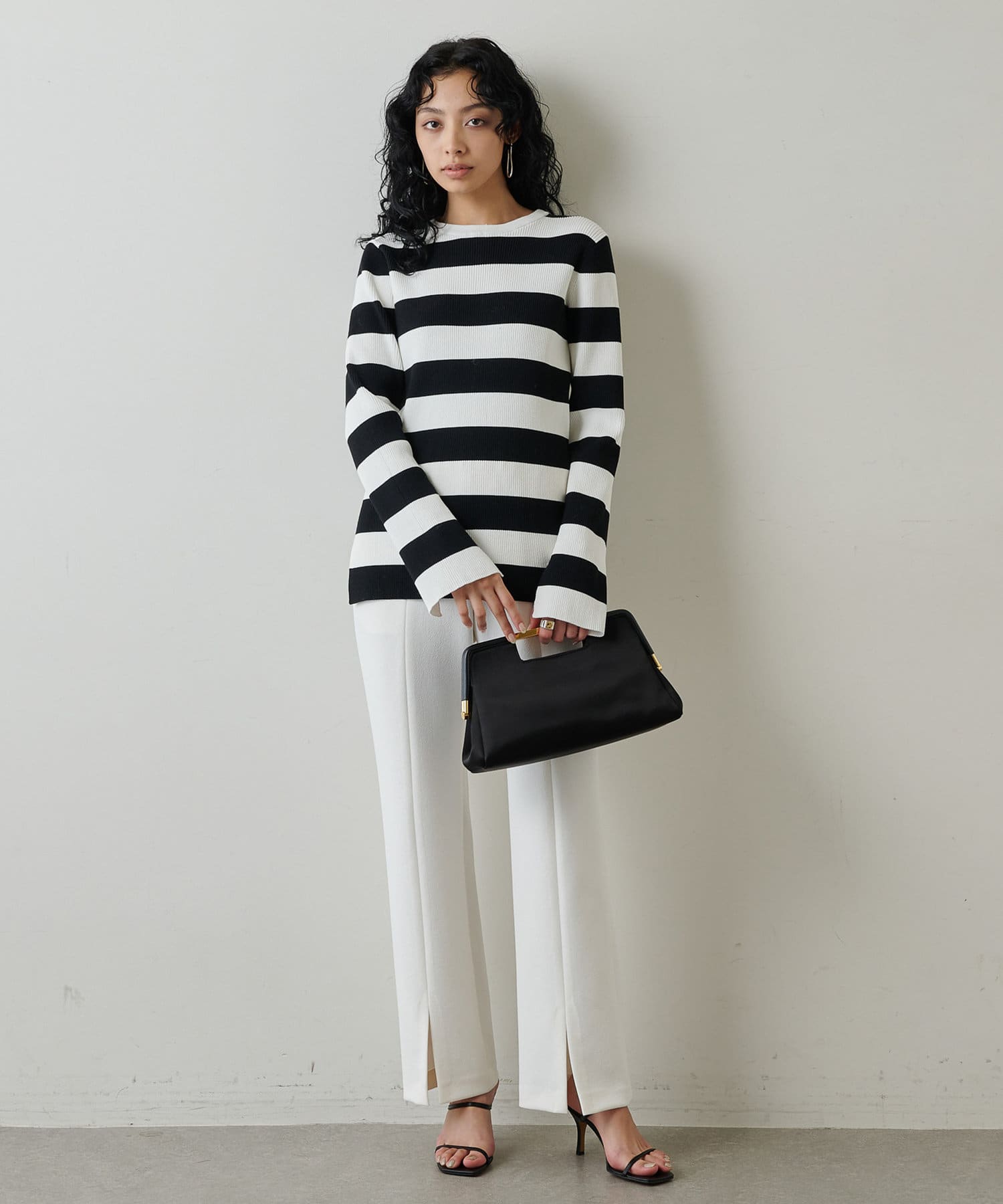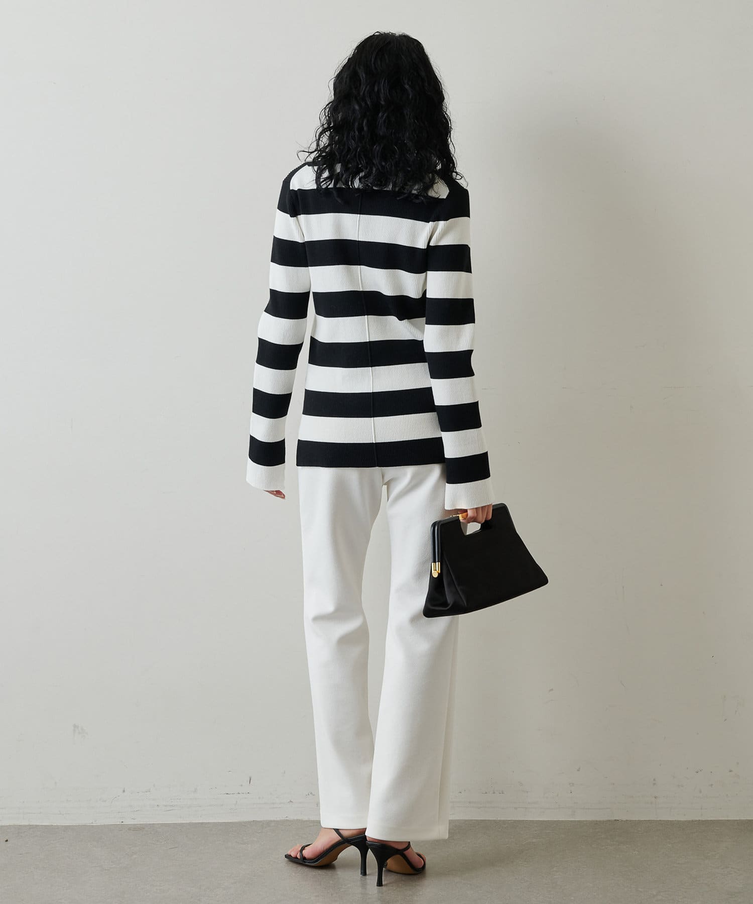 ブラック:ホワイト×ブラックの太ピッチボーダーが存在感のあるカラー。