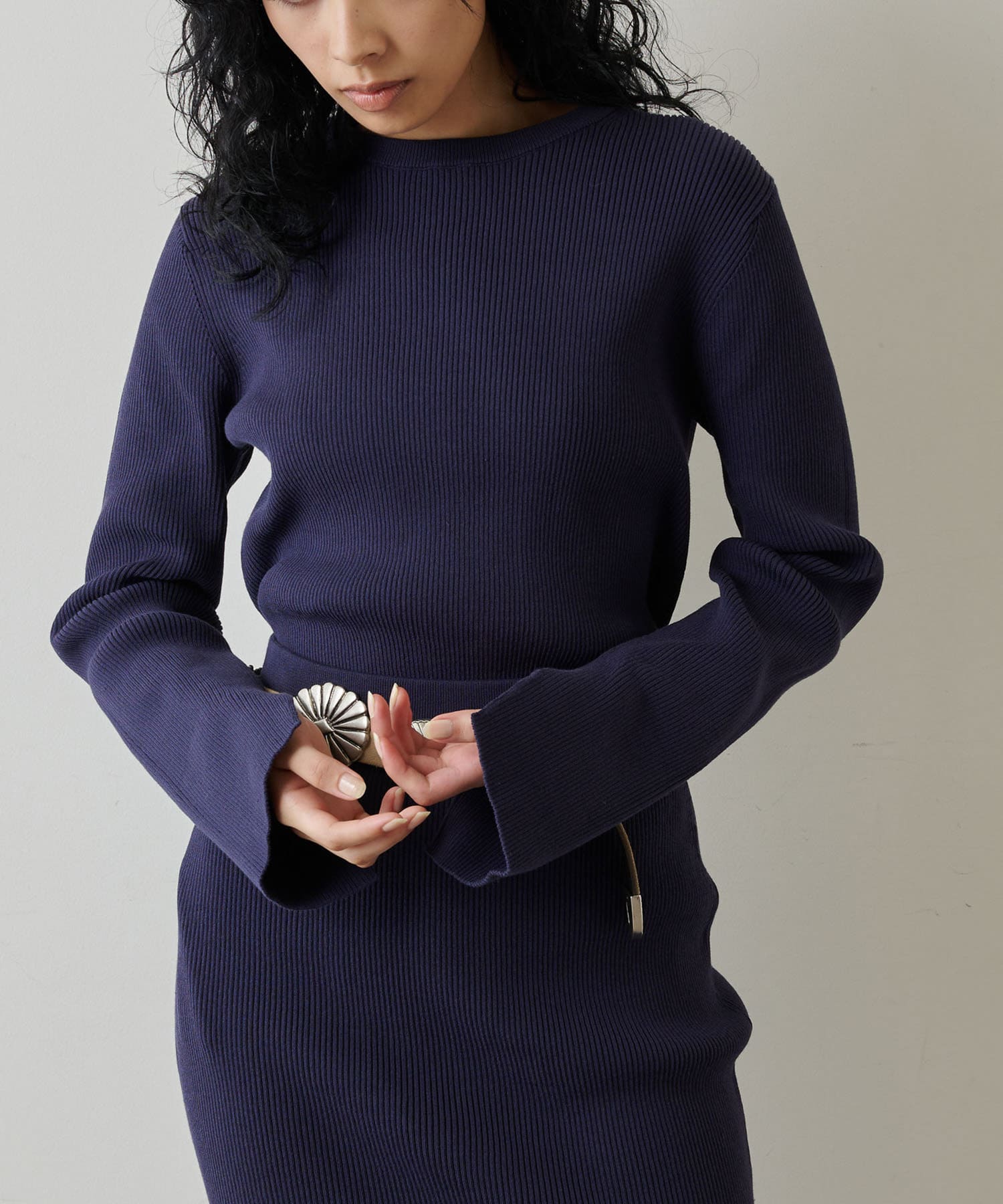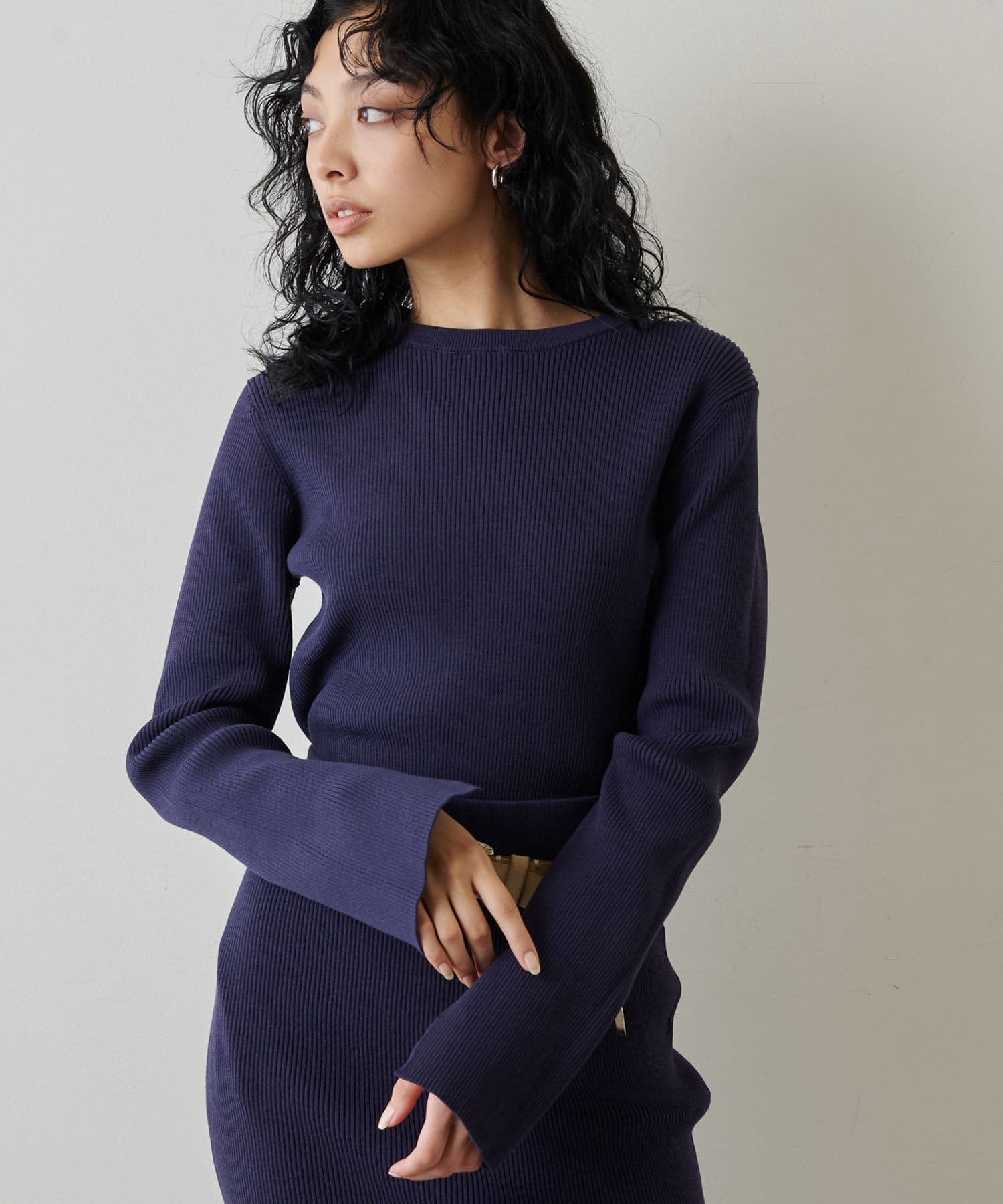 ■ニットでももたつき感のない程よい肉感で、ジャケットなどのインナーとしても活躍。