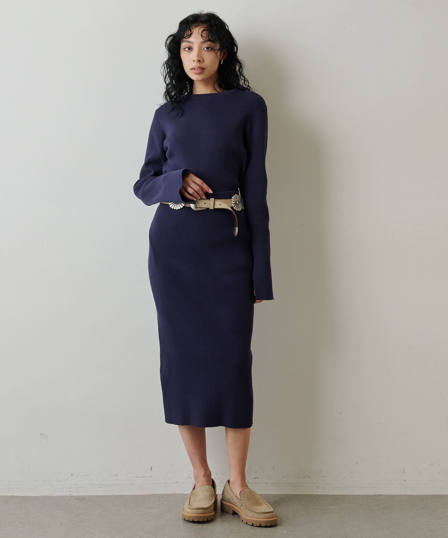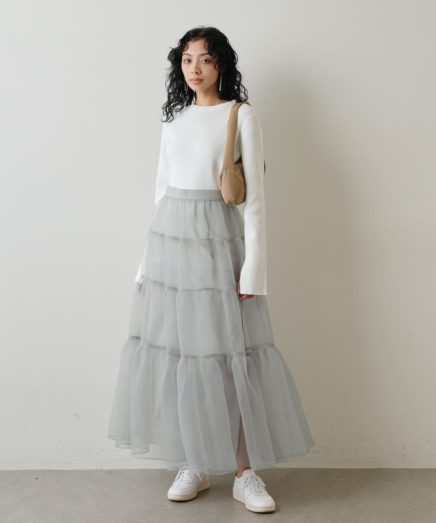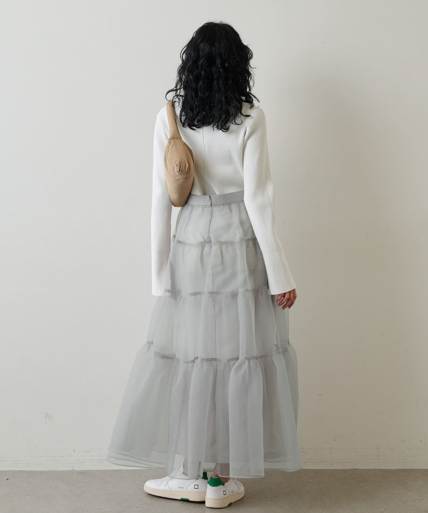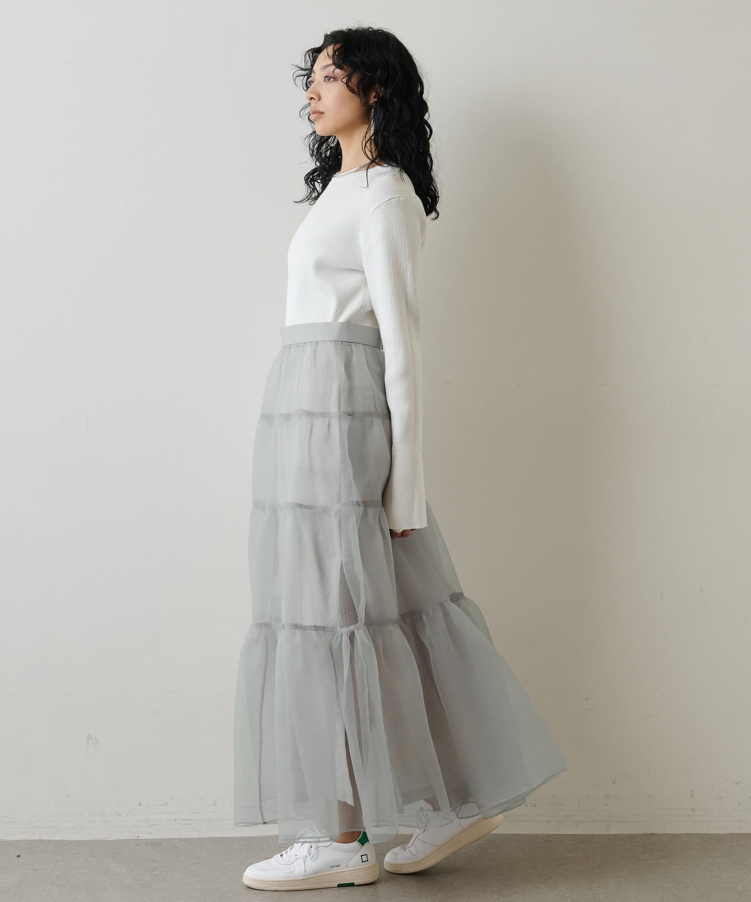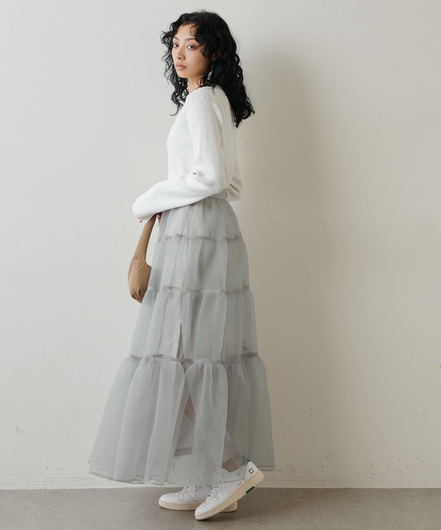 ■同素材のニットスカート(ブランド品番:WGZ1022601A0001)とのセットアップを楽しむのもおすすめ。
