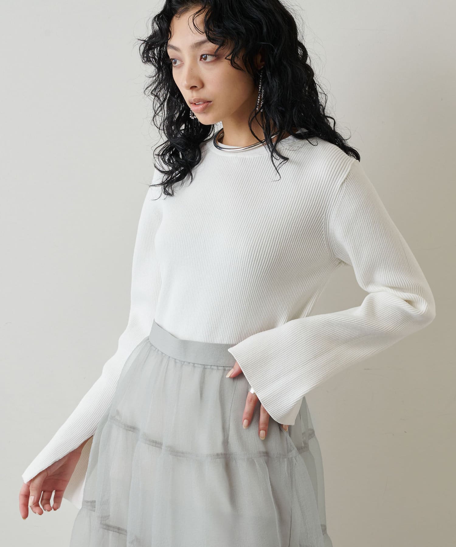 ■袖口にあしらったスリットが女性らしさと程よい抜け感を演出。