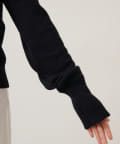 ■シンプルながらも、やや肩を落とした長めのスリーブデザインがこなれた雰囲気を演出。