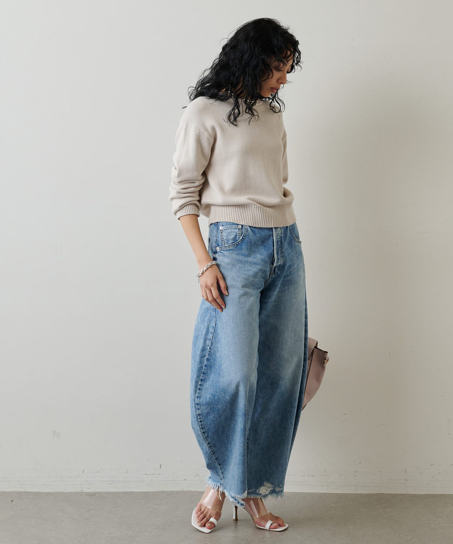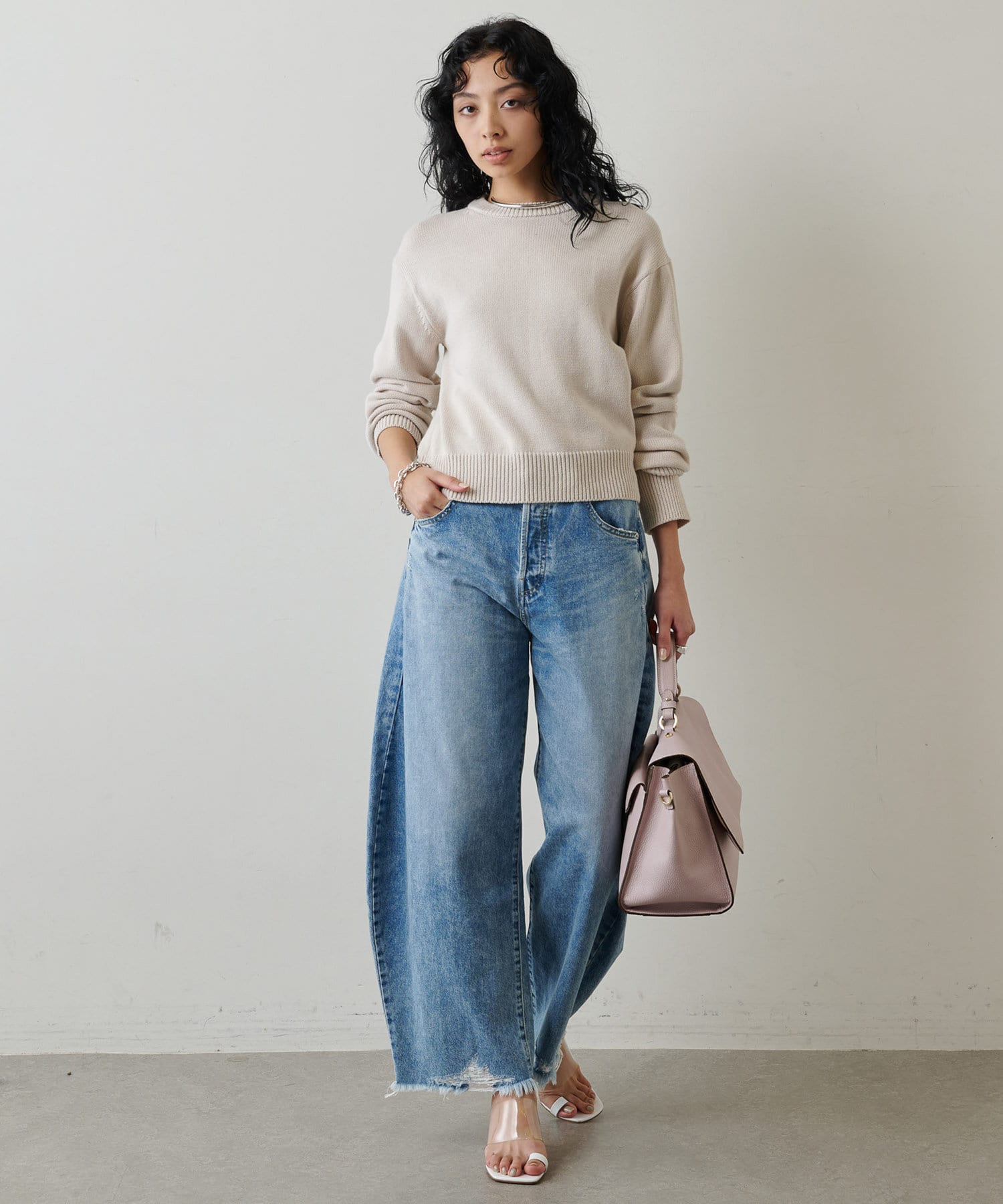 ■フェミニンなスカートからカジュアルなデニムまで、様々なテイストのボトムと好相性。
